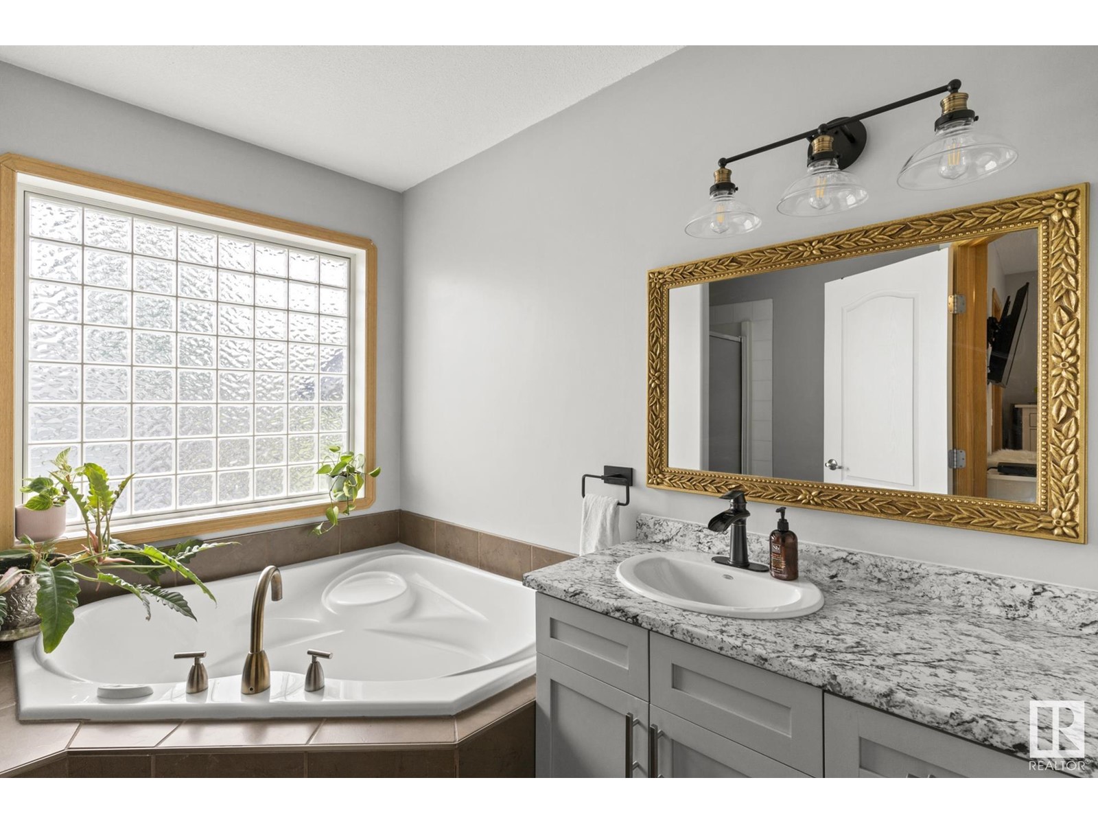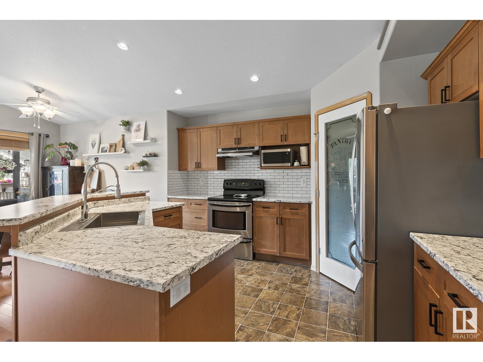 Welcome to this stunning, modified bi-level, located near Aspenview pond, featuring 5 bedrooms and 3 full baths! As soon as you enter the home, you'll immediately feel welcomed by the vaulted ceilings and large atrium area. The open floor plan allows for uninterrupted family time in the massive living,with a gas fireplace as the focal point. The kitchen comes with stainless steel appliances,a breakfast bar,walk in pantry and lots of kitchen cabinetry and counter space. Head outside to your partially covered west facing deck to catch a sunset or work on the garden in your new backyard! The primary bedroom is large, with an ensuite that includes a jetted air tub,and a walk-in closet. The basement level has a family room,bathroom, utility/laundry room,plumbed for in floor heating, as well as hosts the fourth and fifth bedrooms. The property backs a utility right of way, creating additional privacy. The heated, oversized double garage fits two large trucks, welding receptical,also plumbed for in floor heating (id:22211)