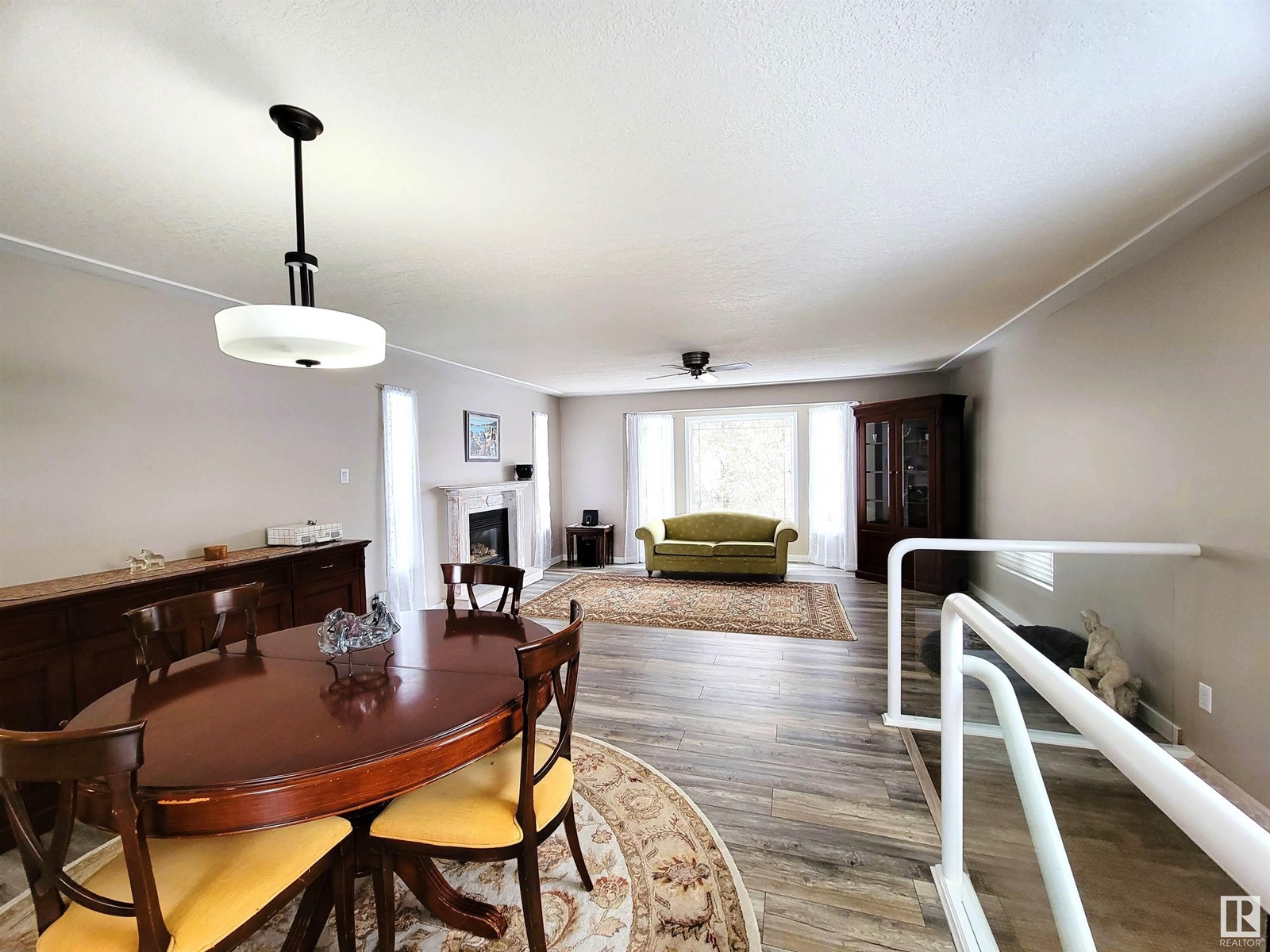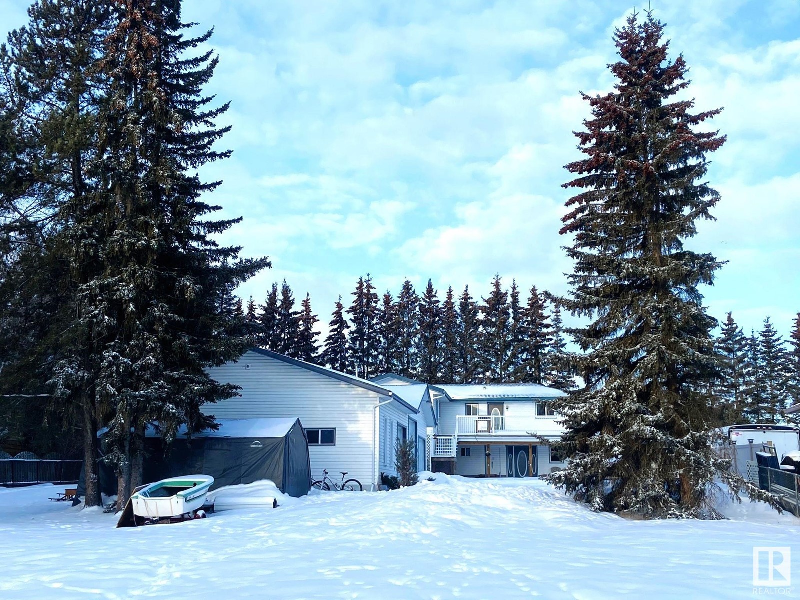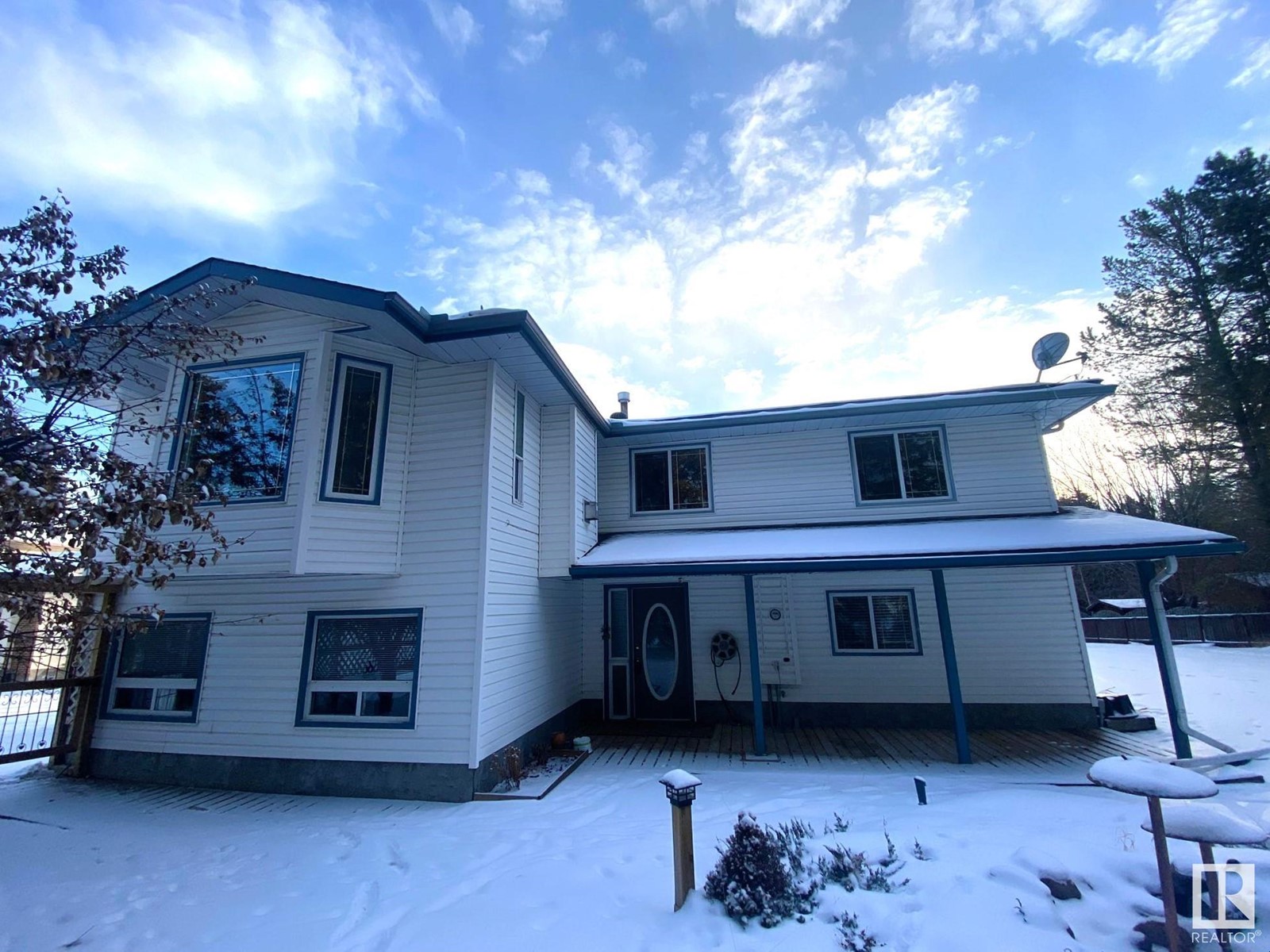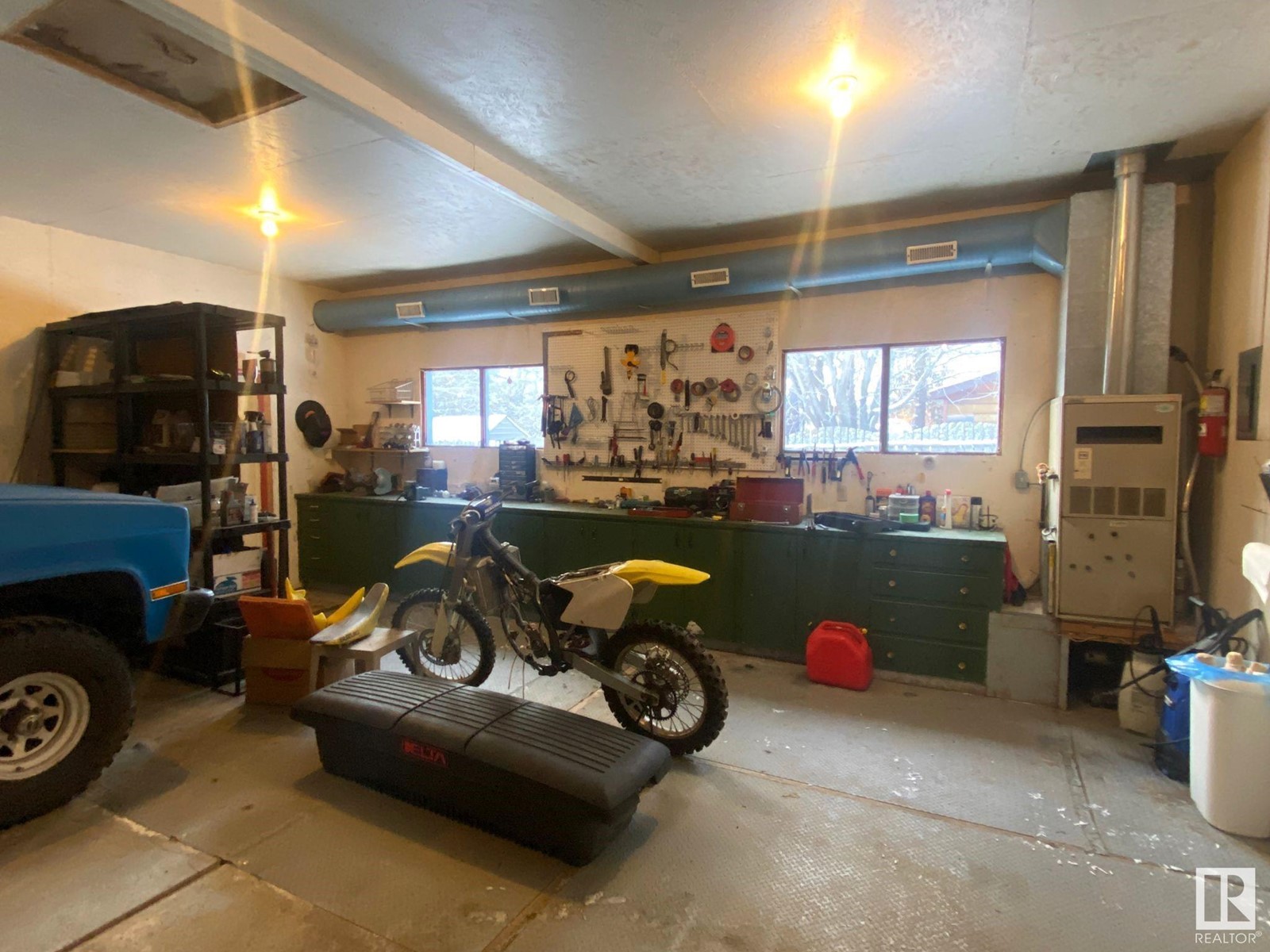 This property offers acreage living in Drayton Valley! The 0.97 acre parcel is truly unique in that it offers an acreage sized parcel on municipal services in town. With over 2,800 sqft above grade the entire home (all vinyl windows) benefits from lots of natural daylight. The kitchen upstairs features lots of cabinetry & counter space and overlooks the massive lot. The living room upstairs is spacious w/ a great window package and fireplace serving as the focal point. The master bedroom is fantastic both in terms of its size & features including a fully remodeled ensuite, desk area, & flex room complete w/ a fireplace! The main bathroom upstairs has also been fully remodeled. The lower level features in-floorheat, a large recreation room, 3rd bedroom and walks out to a patio. The shop is enormous and offers 3 bays, currently configured for both parking and recreation. The yard is fenced with optionality that only a 0.97 acre parel allows for (lots of RV parking, potential for hockey rink, etc.). (id:22211)