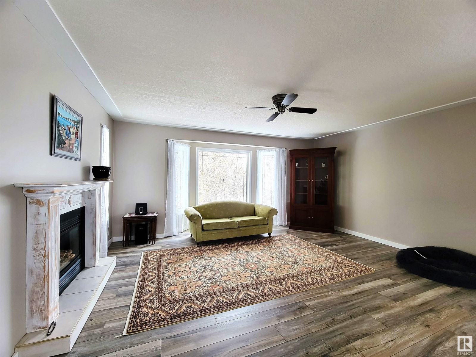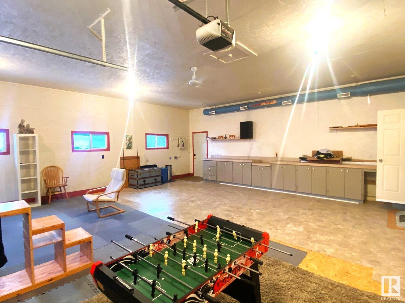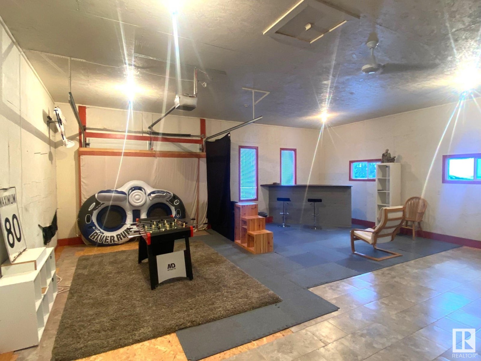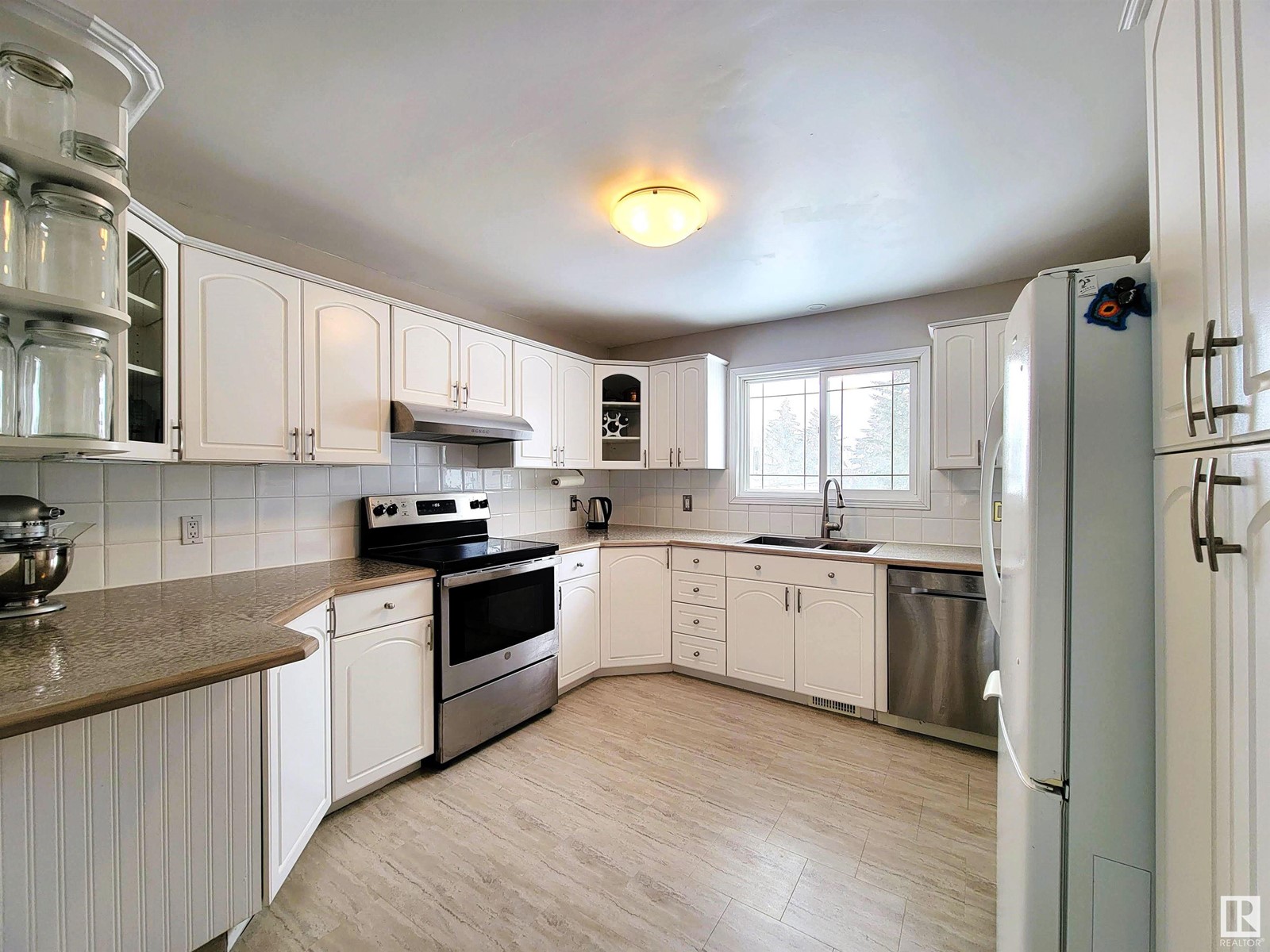 This property offers acreage living in Drayton Valley! The 0.97 acre parcel is truly unique in that it offers an acreage sized parcel on municipal services in town. With over 2,800 sqft above grade the entire home (all vinyl windows) benefits from lots of natural daylight. The kitchen upstairs features lots of cabinetry & counter space and overlooks the massive lot. The living room upstairs is spacious w/ a great window package and fireplace serving as the focal point. The master bedroom is fantastic both in terms of its size & features including a fully remodeled ensuite, desk area, & flex room complete w/ a fireplace! The main bathroom upstairs has also been fully remodeled. The lower level features in-floorheat, a large recreation room, 3rd bedroom and walks out to a patio. The shop is enormous and offers 3 bays, currently configured for both parking and recreation. The yard is fenced with optionality that only a 0.97 acre parel allows for (lots of RV parking, potential for hockey rink, etc.). (id:22211)