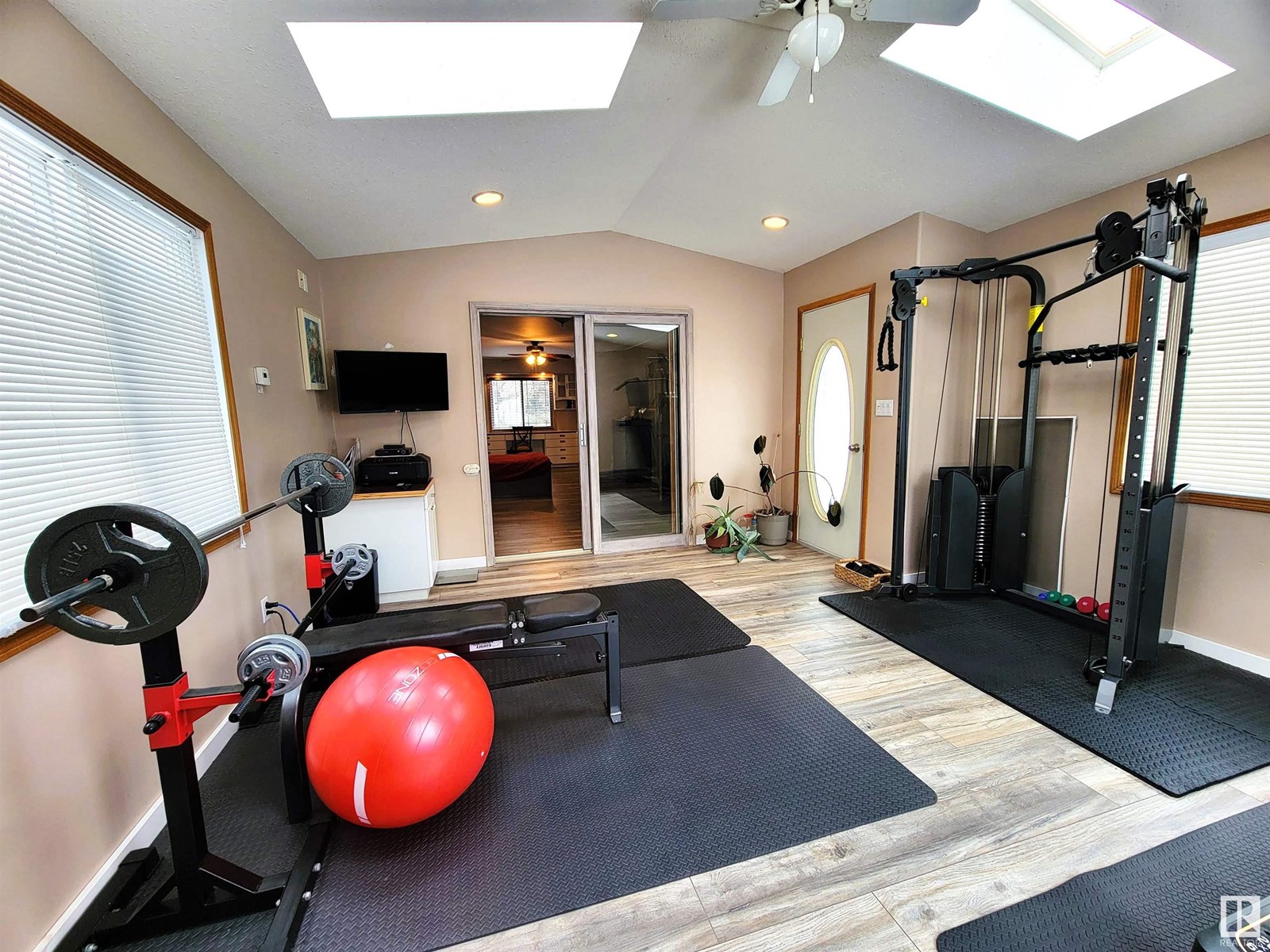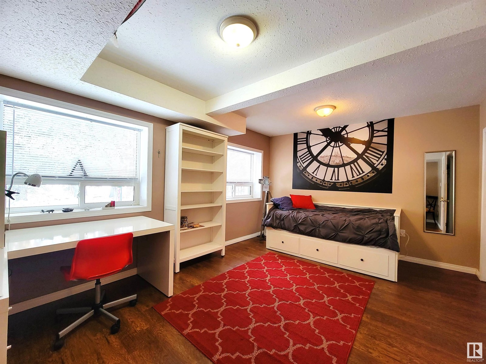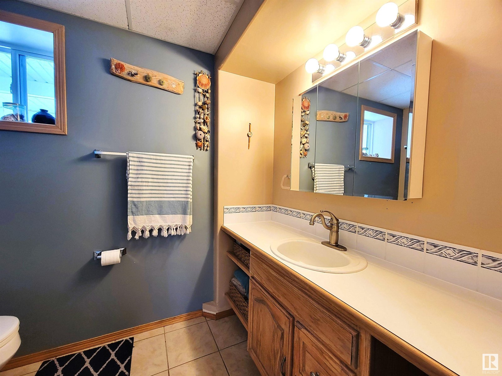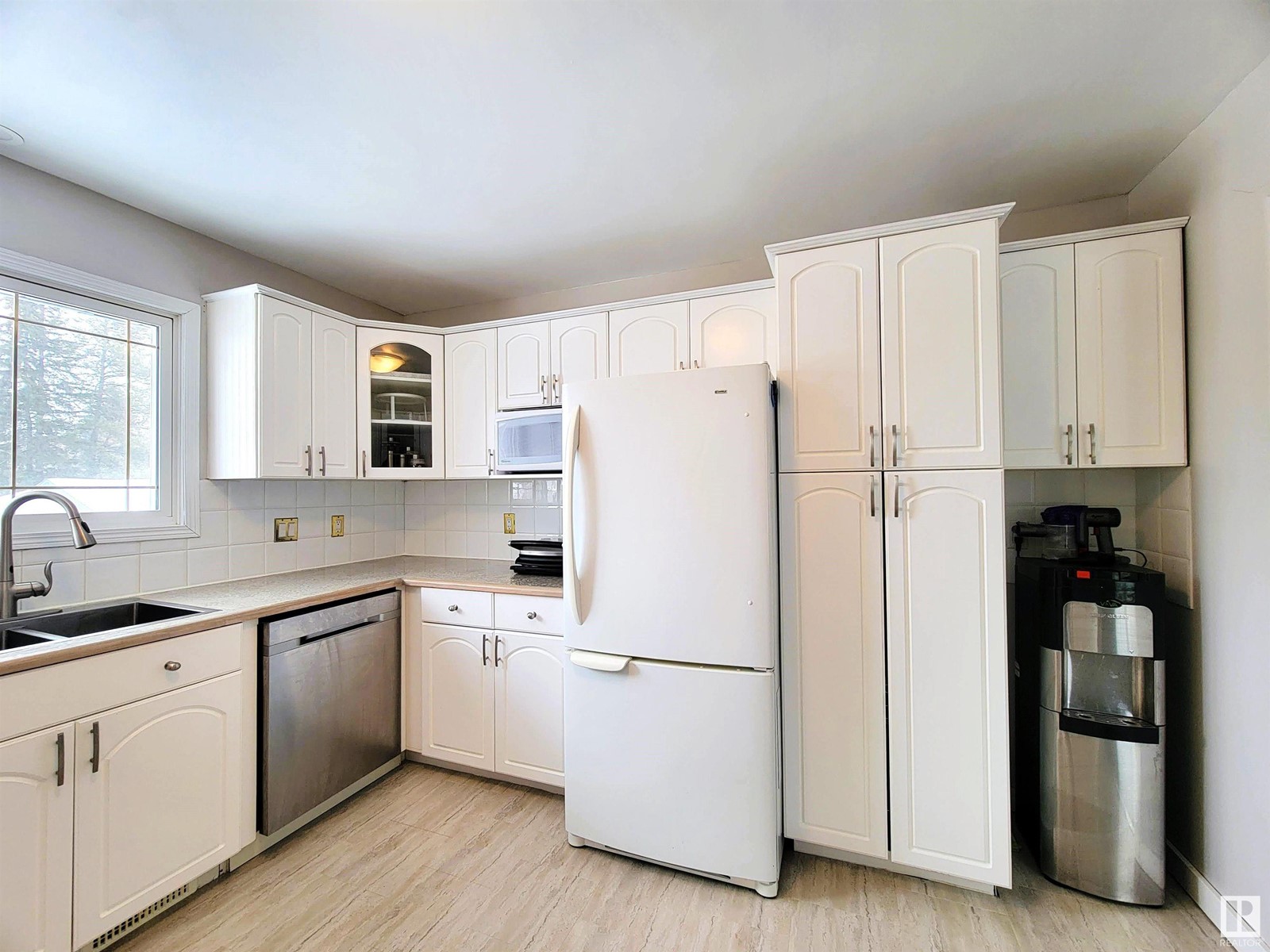 This property offers acreage living in Drayton Valley! The 0.97 acre parcel is truly unique in that it offers an acreage sized parcel on municipal services in town. With over 2,800 sqft above grade the entire home (all vinyl windows) benefits from lots of natural daylight. The kitchen upstairs features lots of cabinetry & counter space and overlooks the massive lot. The living room upstairs is spacious w/ a great window package and fireplace serving as the focal point. The master bedroom is fantastic both in terms of its size & features including a fully remodeled ensuite, desk area, & flex room complete w/ a fireplace! The main bathroom upstairs has also been fully remodeled. The lower level features in-floorheat, a large recreation room, 3rd bedroom and walks out to a patio. The shop is enormous and offers 3 bays, currently configured for both parking and recreation. The yard is fenced with optionality that only a 0.97 acre parel allows for (lots of RV parking, potential for hockey rink, etc.). (id:22211)
