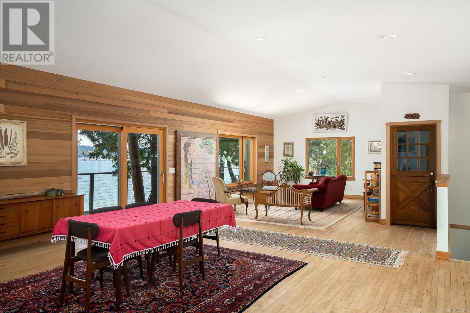 Welcome to one of the most magical pieces of waterfront land in Cowichan Bay. 5353 Gore Langton Rd is a private low bank oceanfront property set on 6.25 south facing, park-like acres with approximately 1000 feet of stunning shoreline. This private estate is the full package featuring the main home, a secondary dwelling and the original cozy cottage all complete with incredible views and breathtaking sunrises from every window. The main home has truly been a passion project for this family and has been built to extremely high standards of sustainability as part of the “Living Building Challenge” producing the majority of its own energy on site and built to achieve multiple environmental certifications. High efficiency heat recovery, triple glazed windows and built to Step 5 building code standard, are only a few of the many features. With sweeping views of the Saanich inlet and located just minutes from the quaint village of Cowichan Bay, this remarkable west coast lifestyle awaits you (id:22211)