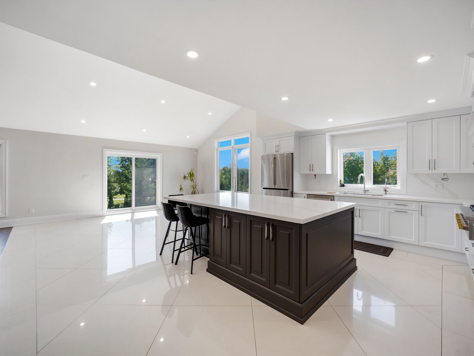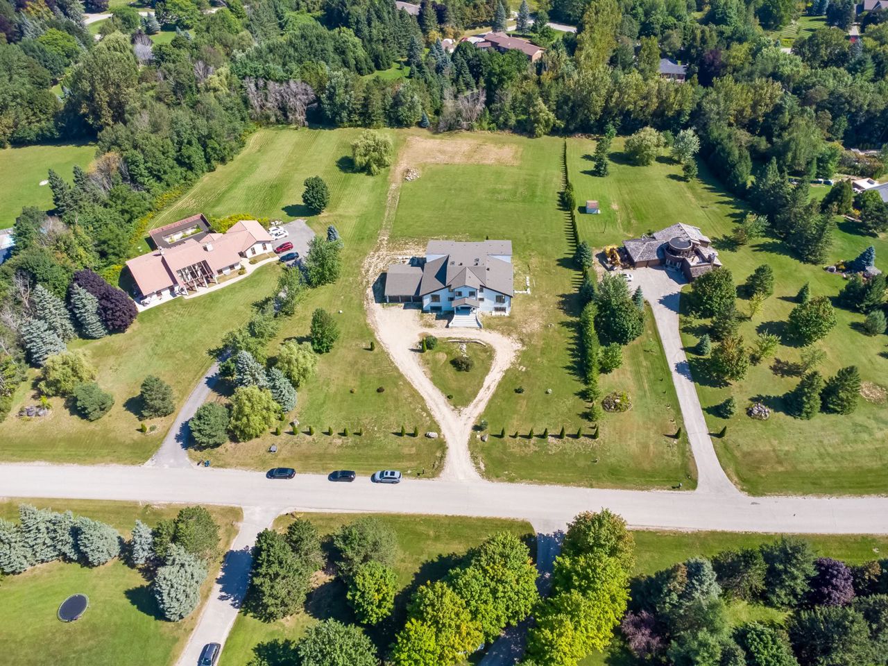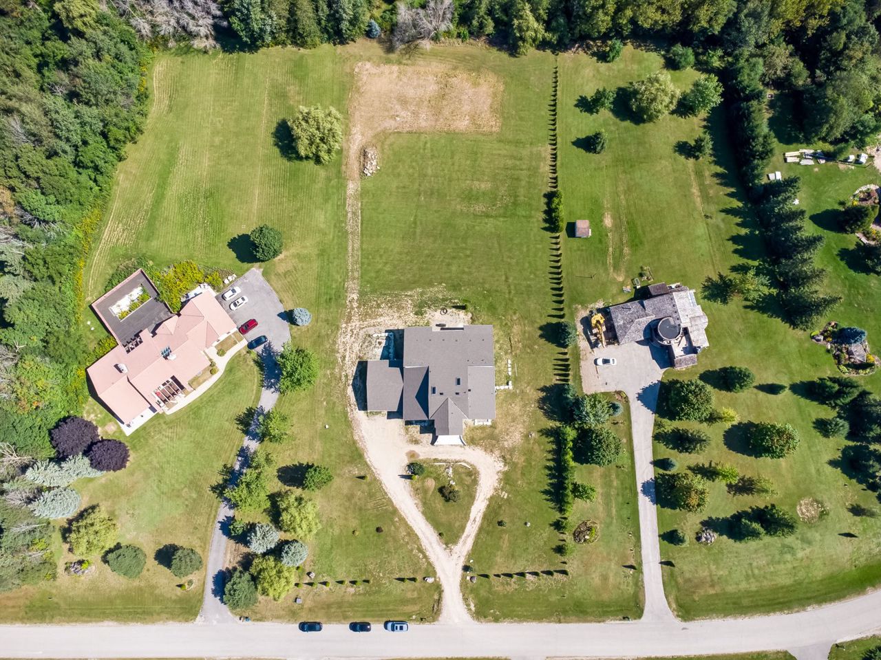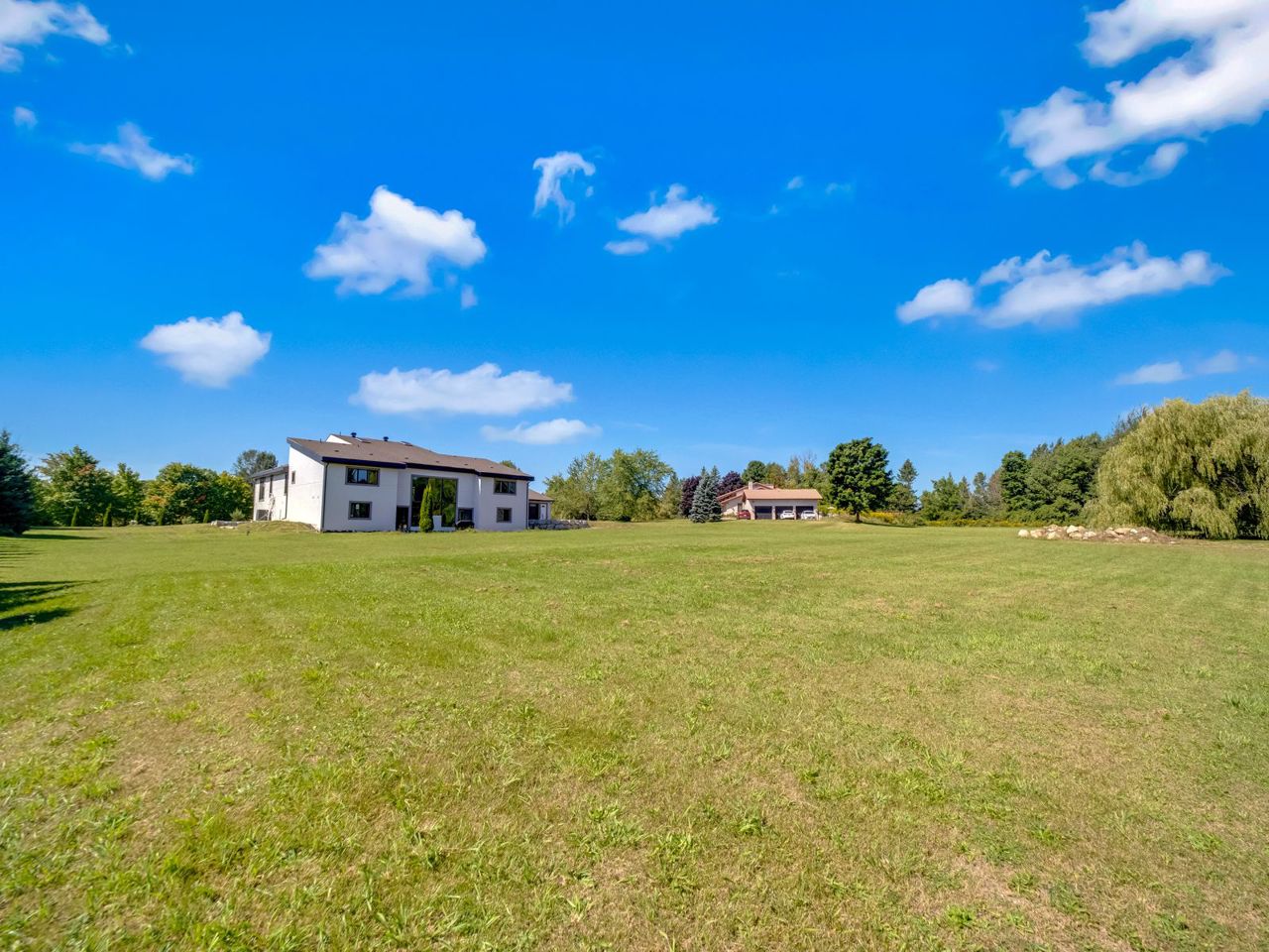 Discover this magnificent multigenerational Premium Estate in the tranquil hills of East Garafraxa, just 7 minutes from Orangeville. Set on 2.4 sprawling acres, this home underwent a $1 million+ transformation, boasting a brand-new kitchen, gleaming hardwood floors, and abundant natural light through new windows. The stunning backwall window connects you to nature. With 5 bedrooms (potential for 6), including an oversized master suite with a skylight, and a grand entrance featuring double doors, this home offers luxury and practicality. An oversized laundry room, walk-in closets, and a welcoming atmosphere make it perfect for family living. This property embodies the charm of country living within reach of urban amenities. Don't miss the chance to call this beautifully renovated estate your home.Expansive basement: 2 two-bedroom apartments 75% completed, separate entrance, laundry. Bar, party room, theater, gym, wine cellar. 3-door garage, workshop, circular driveway. Unique Premium Estate – a must-see!