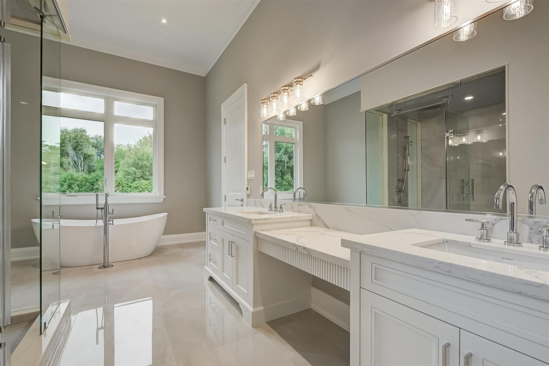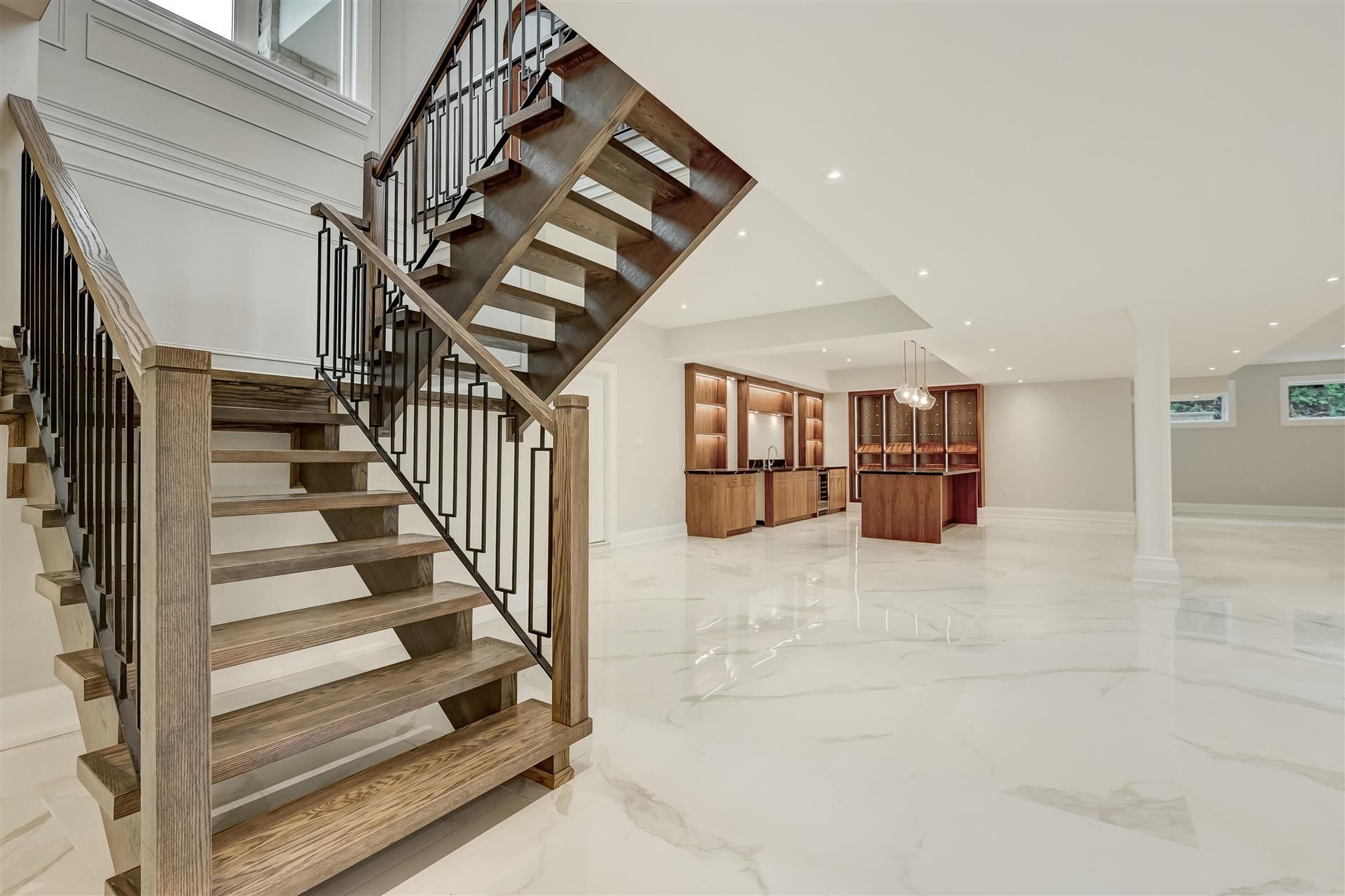 全新定制平房(已在TARION注册),约9000平方英尺的豪华生活空间,坐落于近1英亩的私密地块,背靠森林。特色包括开放式布局,主楼层拥有12英尺平滑天花板,下层则为9英尺高。两层高的主客厅,餐厅内设华夫格天花板,5间卧室均配有独立卫生间,主楼层设有办公室,下层专为家庭影院设计的房间,以及配备大型湿吧的宽敞娱乐室。
