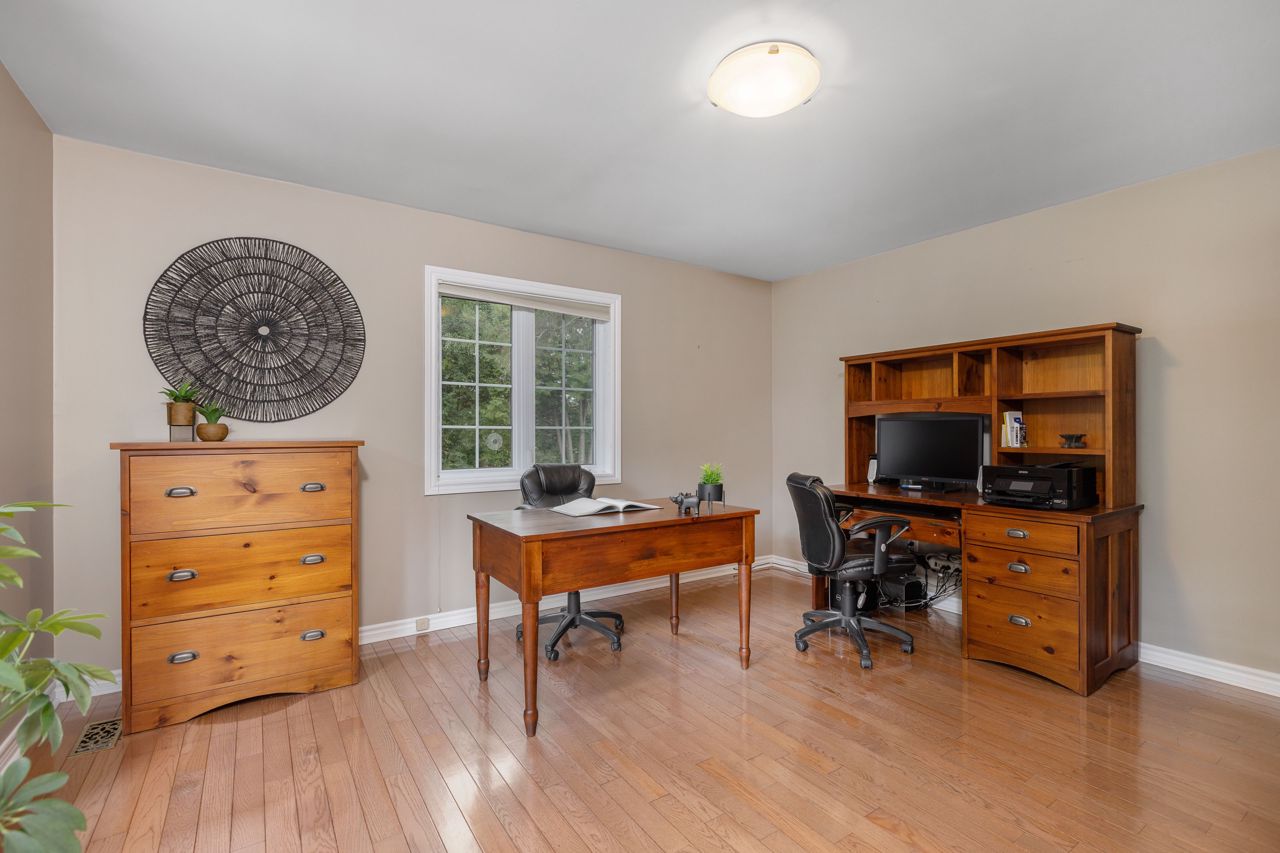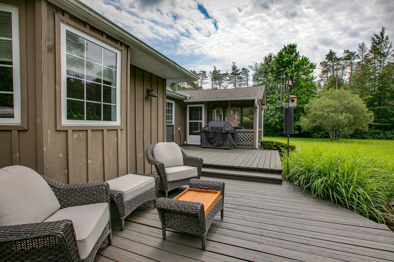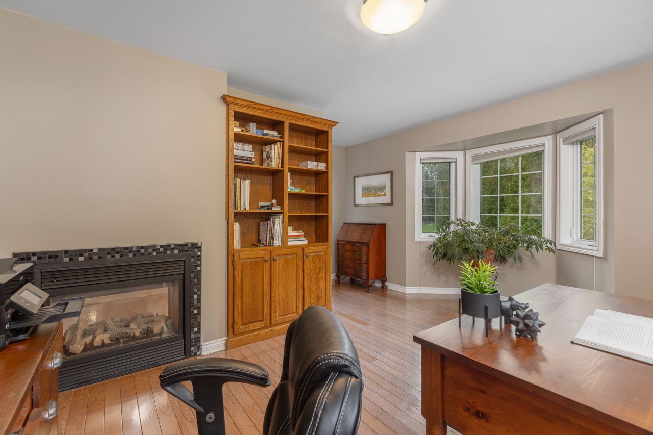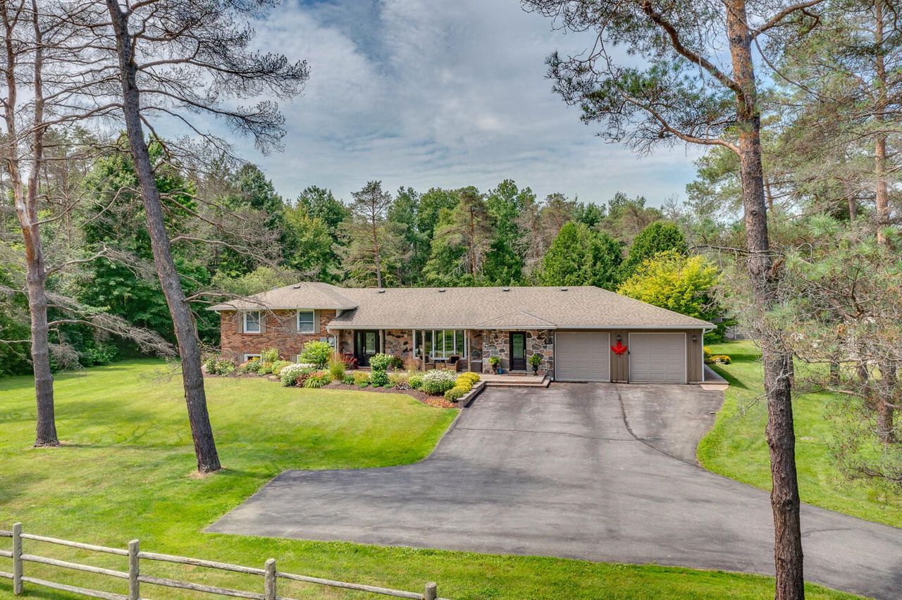 Welcome to your dream retreat nestled on a sprawling 2-acre property surrounded by trees. Meticulously maintained and updated over the years this stunning home offers a blend of comfort, elegance and functionality. The open concept gourmet kitchen with huge centre island, granite counters & b/i appliances connects the spacious family room with a cozy fireplace and built-in wall unit. Only steps away a 3-season sunroom & expansive deck are great for warm evenings. A formal dining and living room is perfect for those family gatherings and the main floor office is a private retreat overlooking the yard. A sunny and bright upper level includes 3 spacious bedrooms featuring a primary bdrm. with renovated ensuite and an updated main bathroom. A lower level includes a recreation room with built-in cabinets and a 4th bedroom/office. Surrounded by trees this property also includes a workshop/barn with heat/power & water for a versatility of uses and a large utility shed.Propane furnace & AC (2021), Hot water heater (Rental, 2022), Renovated Main floor, kitchen, office & garage bay addition, laundry room/mudroom renovated (1999) ... see attached Feature Sheet for complete list of updates.