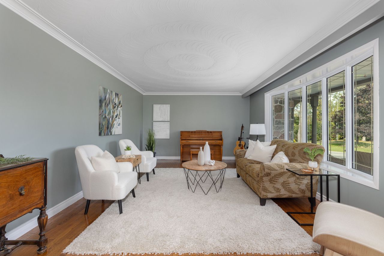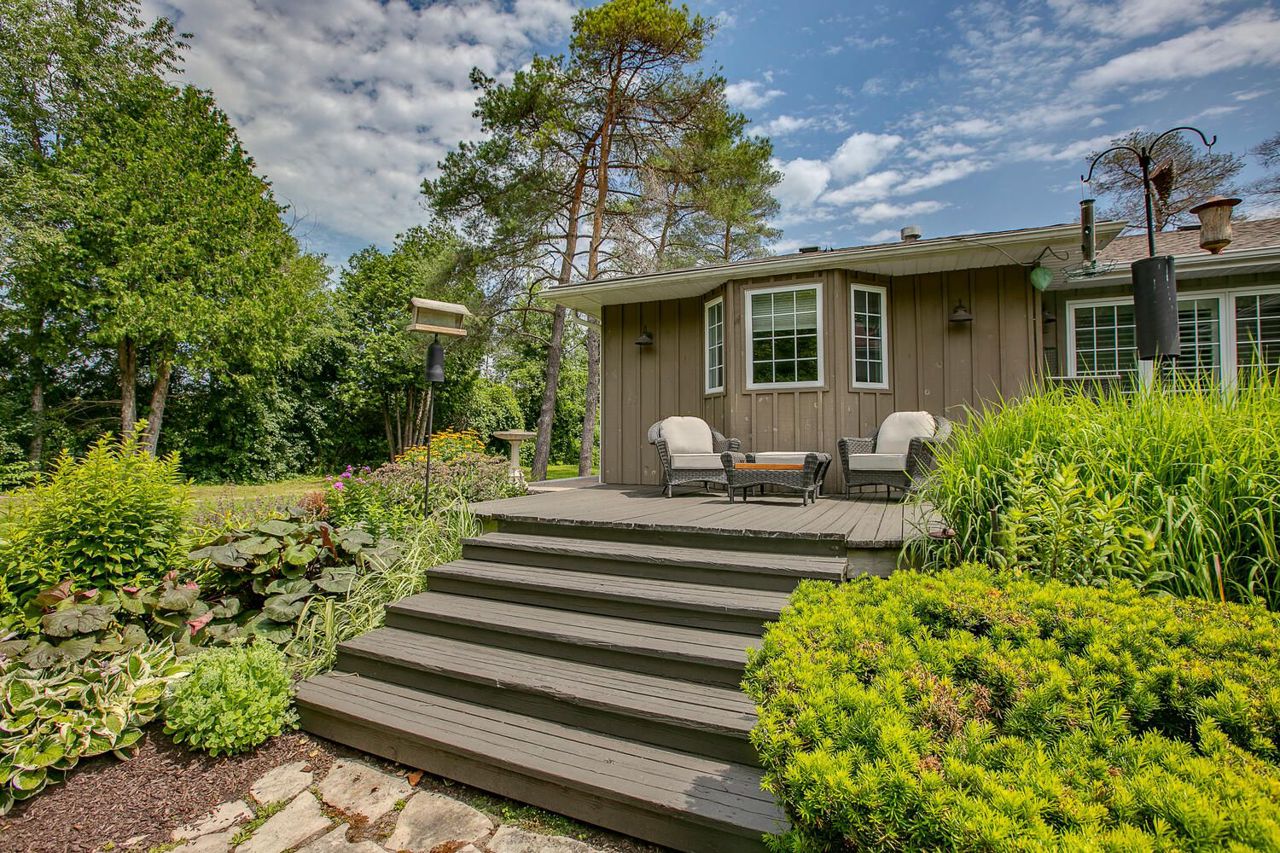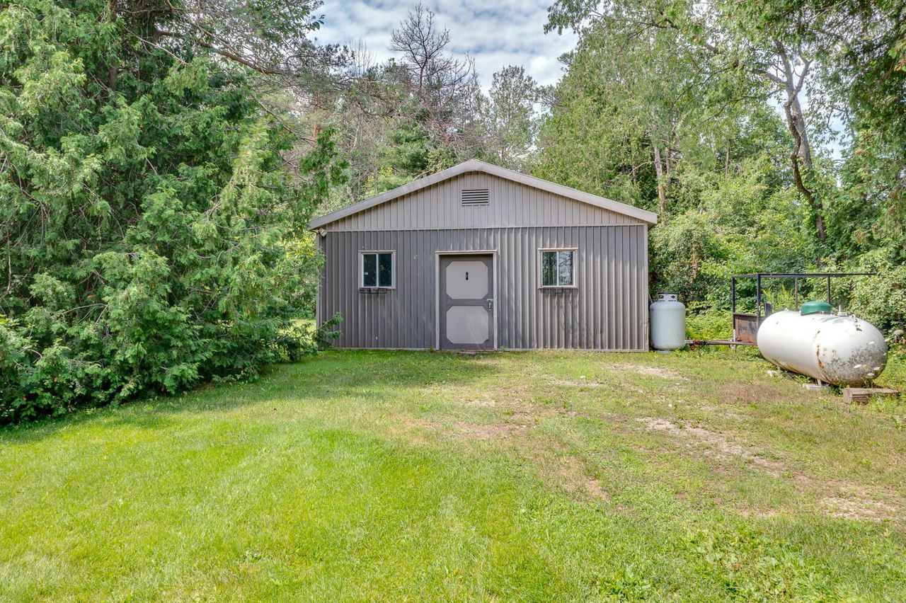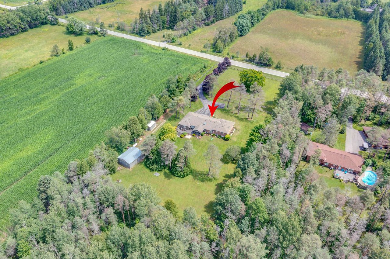 Welcome to your dream retreat nestled on a sprawling 2-acre property surrounded by trees. Meticulously maintained and updated over the years this stunning home offers a blend of comfort, elegance and functionality. The open concept gourmet kitchen with huge centre island, granite counters & b/i appliances connects the spacious family room with a cozy fireplace and built-in wall unit. Only steps away a 3-season sunroom & expansive deck are great for warm evenings. A formal dining and living room is perfect for those family gatherings and the main floor office is a private retreat overlooking the yard. A sunny and bright upper level includes 3 spacious bedrooms featuring a primary bdrm. with renovated ensuite and an updated main bathroom. A lower level includes a recreation room with built-in cabinets and a 4th bedroom/office. Surrounded by trees this property also includes a workshop/barn with heat/power & water for a versatility of uses and a large utility shed.Propane furnace & AC (2021), Hot water heater (Rental, 2022), Renovated Main floor, kitchen, office & garage bay addition, laundry room/mudroom renovated (1999) ... see attached Feature Sheet for complete list of updates.