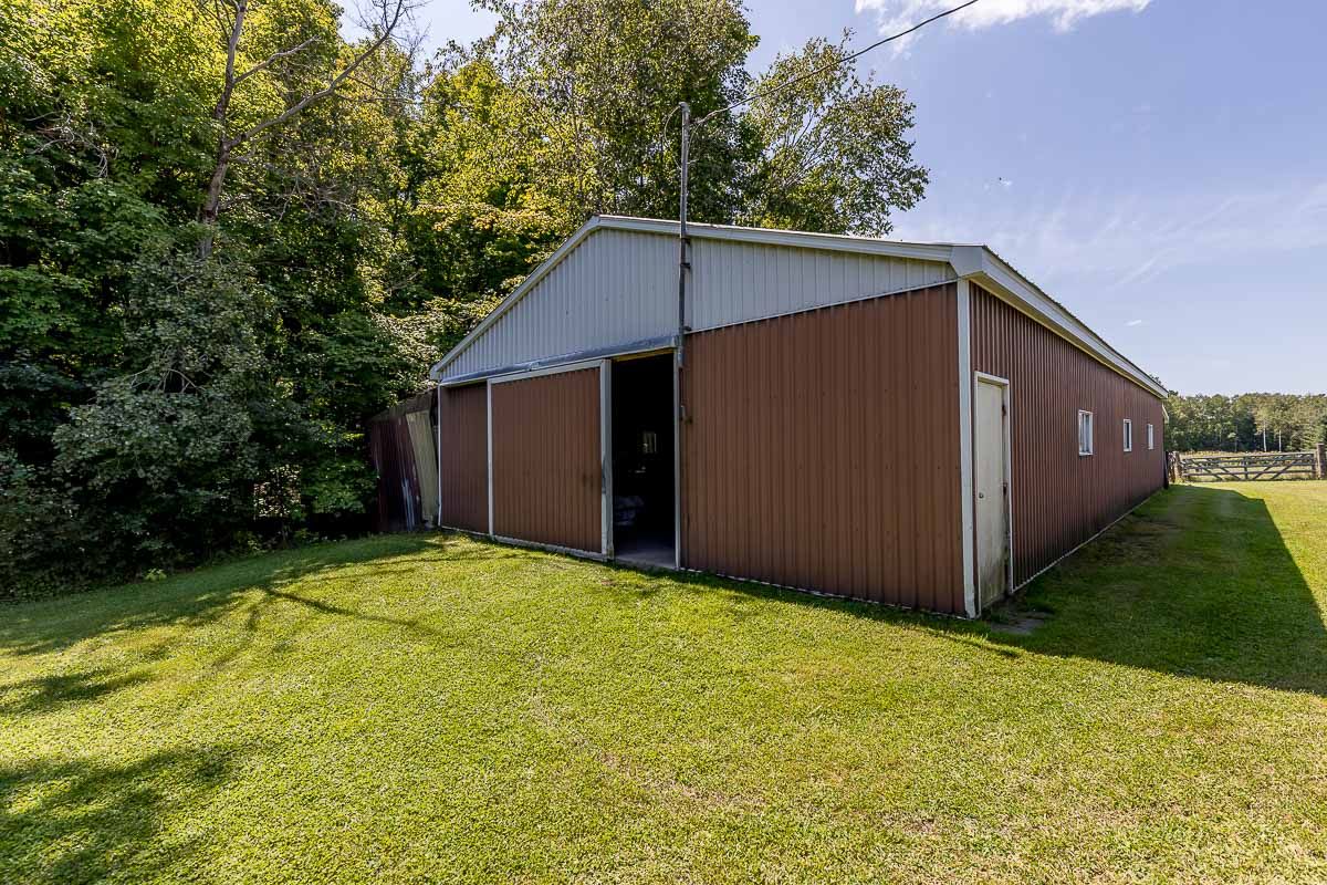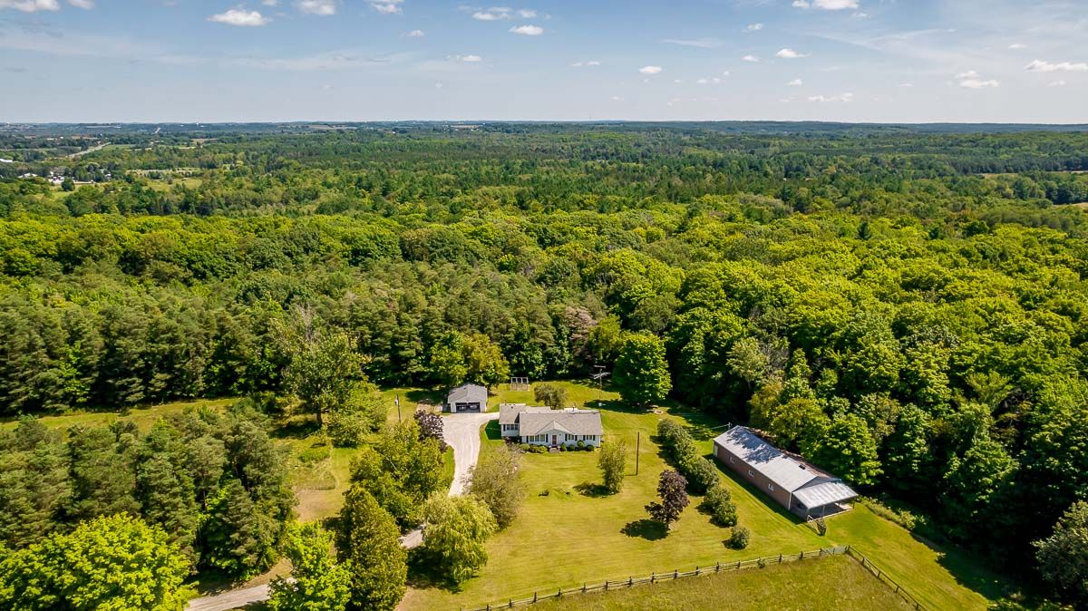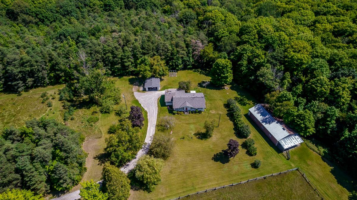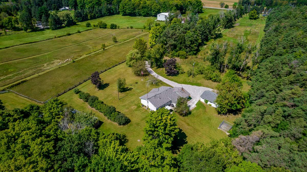 Nestled at the end of a tree-lined driveway, this enchanting 10-acre property offers a truly magical escape from the hustle and bustle of city life. Complete privacy is just the beginning of what this remarkable acreage has to offer. A very well-maintained 3-bedroom bungalow home welcomes you, boasting a large eat-in kitchen, living/dining combination, a cozy family room and office and partially finished basement and a detached 2-car garage Every window in the home offers a view of this stunning property. The partially forested landscape provides a serene backdrop, making this oasis a haven for nature enthusiasts and those seeking tranquillity. For all animal lovers, the property features a 2,000-square-foot outbuilding equipped with 6 stalls and a tack room that is insulated for year-round comfort. With the convenience of water and hydro plus extra space with endless possibilities, whether you're an animal lover, a hobbyist, or an entrepreneur in search of storage or workshop space.The icing on the cake is the presence of 2 large paddocks and a fully fenced barnyard, perfect for your four-legged companions. This versatile property is not just a private sanctuary; t's also an opportunity for a home-based business
