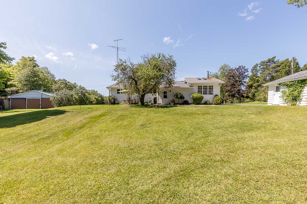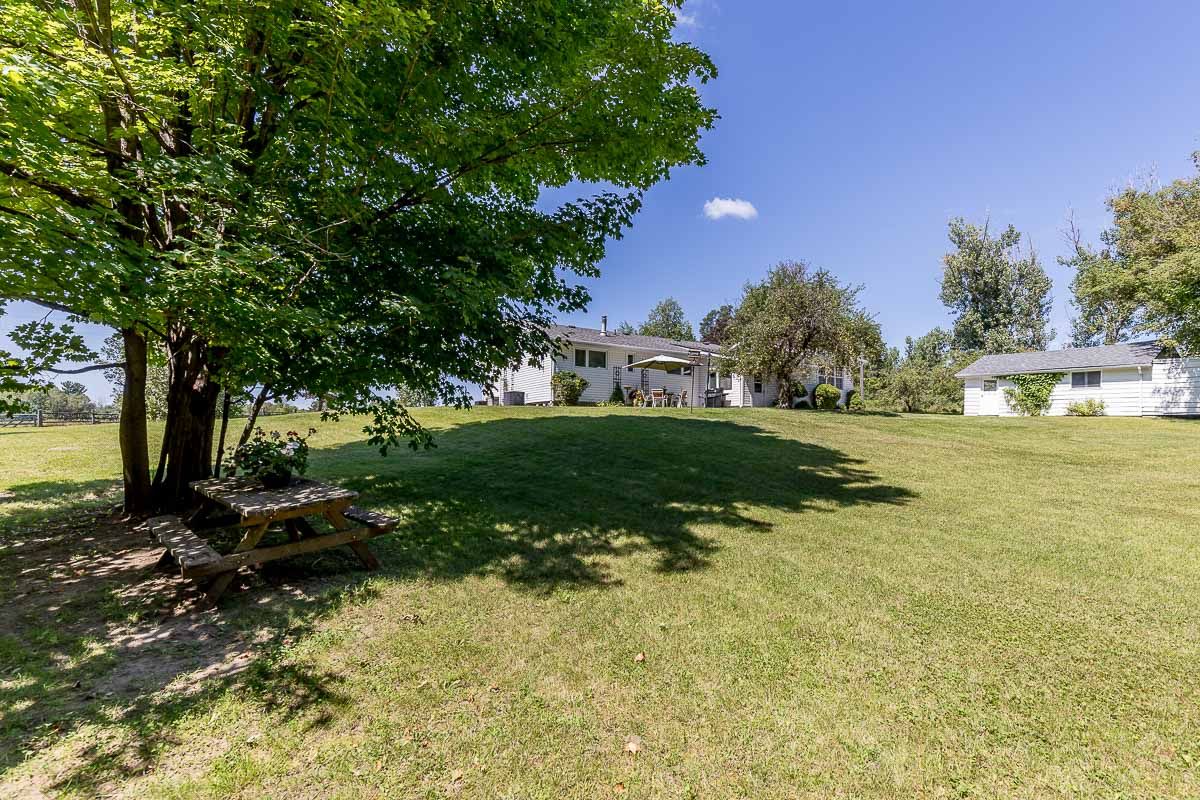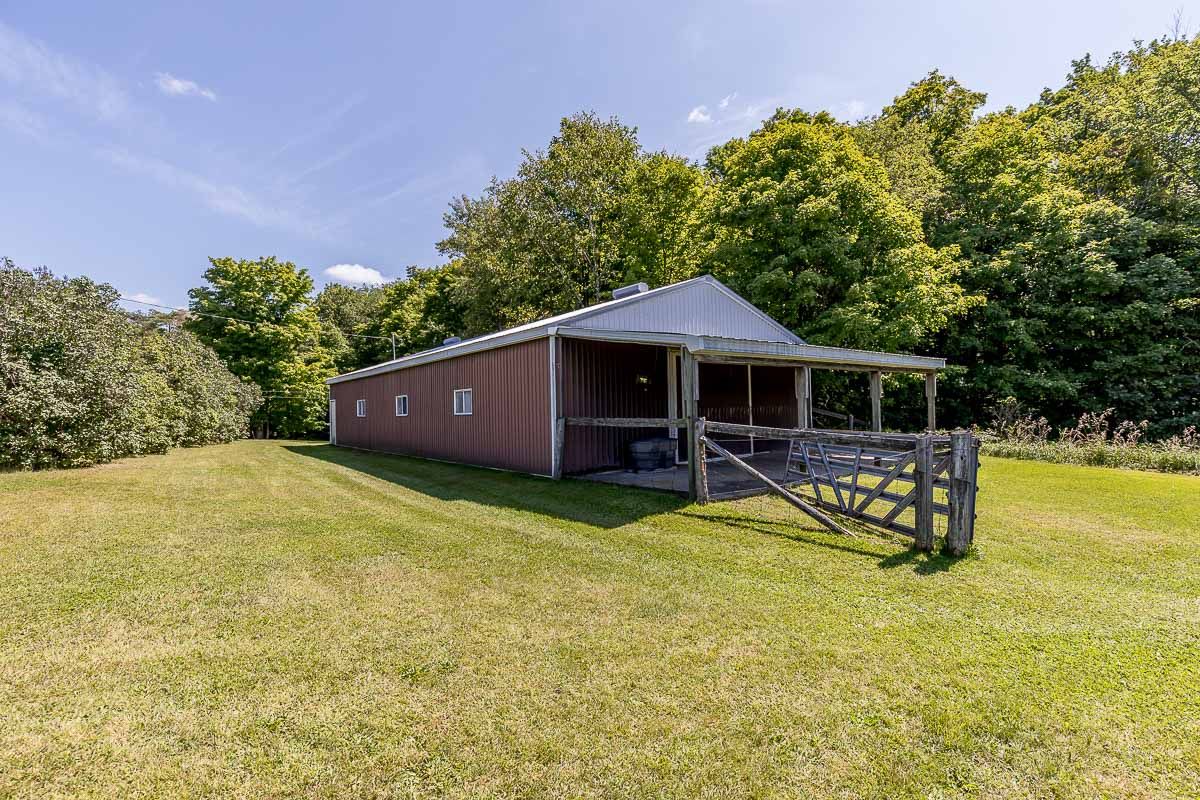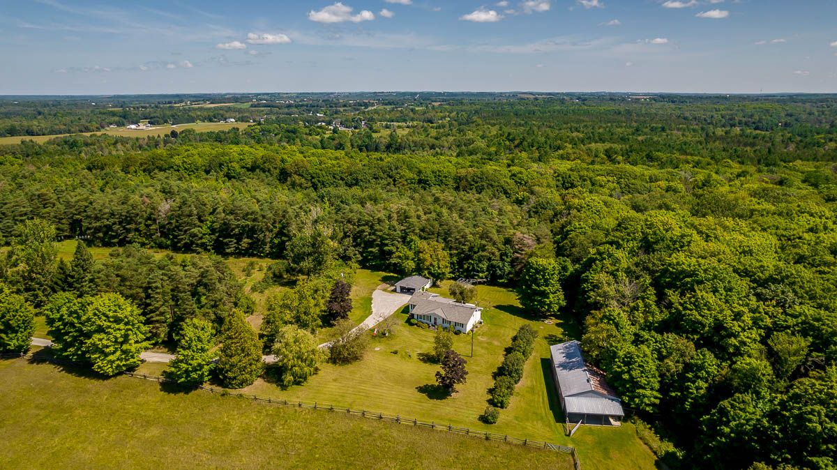 Nestled at the end of a tree-lined driveway, this enchanting 10-acre property offers a truly magical escape from the hustle and bustle of city life. Complete privacy is just the beginning of what this remarkable acreage has to offer. A very well-maintained 3-bedroom bungalow home welcomes you, boasting a large eat-in kitchen, living/dining combination, a cozy family room and office and partially finished basement and a detached 2-car garage Every window in the home offers a view of this stunning property. The partially forested landscape provides a serene backdrop, making this oasis a haven for nature enthusiasts and those seeking tranquillity. For all animal lovers, the property features a 2,000-square-foot outbuilding equipped with 6 stalls and a tack room that is insulated for year-round comfort. With the convenience of water and hydro plus extra space with endless possibilities, whether you're an animal lover, a hobbyist, or an entrepreneur in search of storage or workshop space.The icing on the cake is the presence of 2 large paddocks and a fully fenced barnyard, perfect for your four-legged companions. This versatile property is not just a private sanctuary; t's also an opportunity for a home-based business