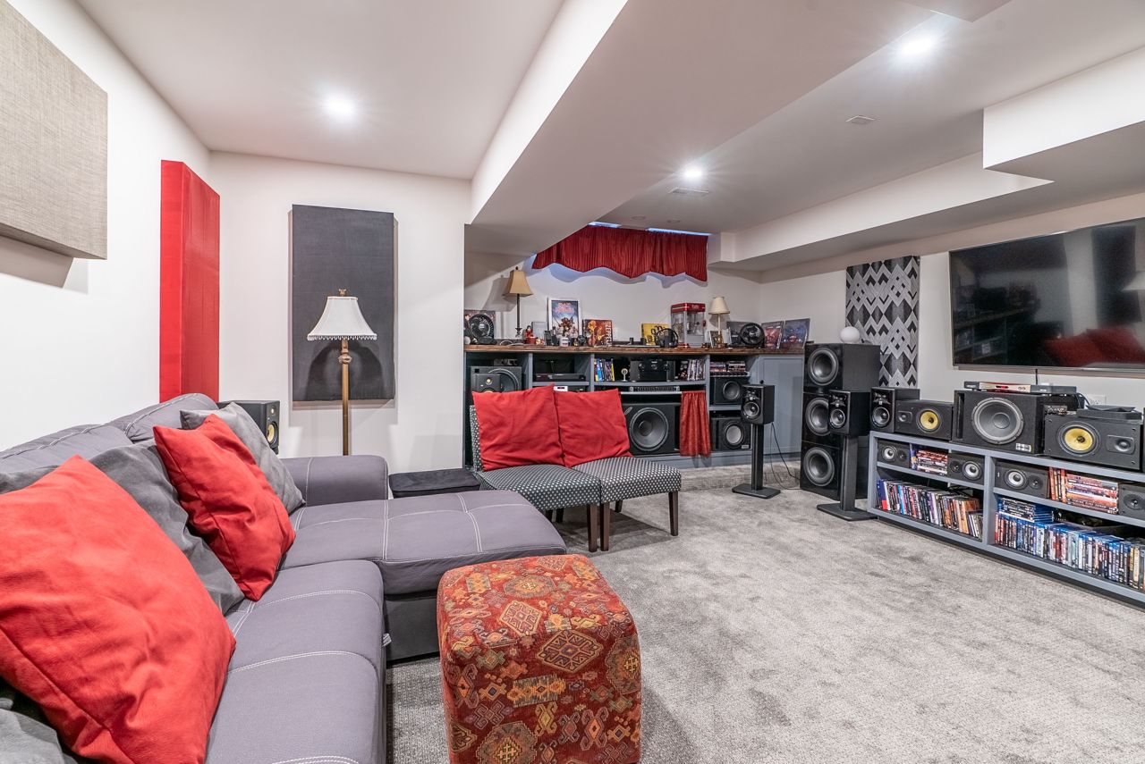 The finished basement is a versatile space, featuring a 3-piece washroom and a living area that has been fully soundproofed, ensuring your peace and quiet.