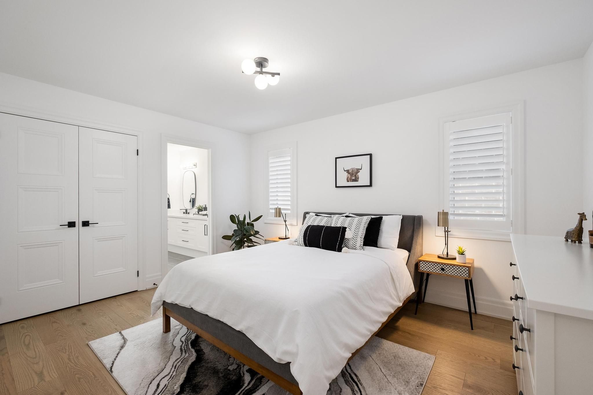 Truly breathtaking, one-of-a-kind masterpiece! Chic 5 bedroom + 5 bath family home with smooth ceilings and extended heights 11ft foyer, 10ft main & 9ft basement. With approx 3200 sqft above grade / 4300 sqft total finished area. A main floor den, cloak room, laundry and direct garage access. In addition, larger windows with California shutters throughout making it bright and airy. Custom cabinetry on all levels, luxurious hardwood floors and luxury vinyl in the basement. High-end appliances including a 36' range, Smart thermostat, built-in shelving around the family room fireplace, all TV wall mounts, built in basement speakers, NEST doorbell. Spacious builder built basement ensures professional quality and workmanship. Currently no homes located behind or on one side (rear neighbours red barn used as shop/storage). Close proximity to schools, bus routes, amenities, Hwy 404 and GO train/transit. Don't miss out on this rare gem!Custom cabinetry thru-out, 3x waterfall counters, 2 walk-in closets, free standing tub, upgraded trim, taller doors, high-end fixtures, 2x GDOs, CVAC R/I, builder just completed another coat on the driveway & active Tarion warranty