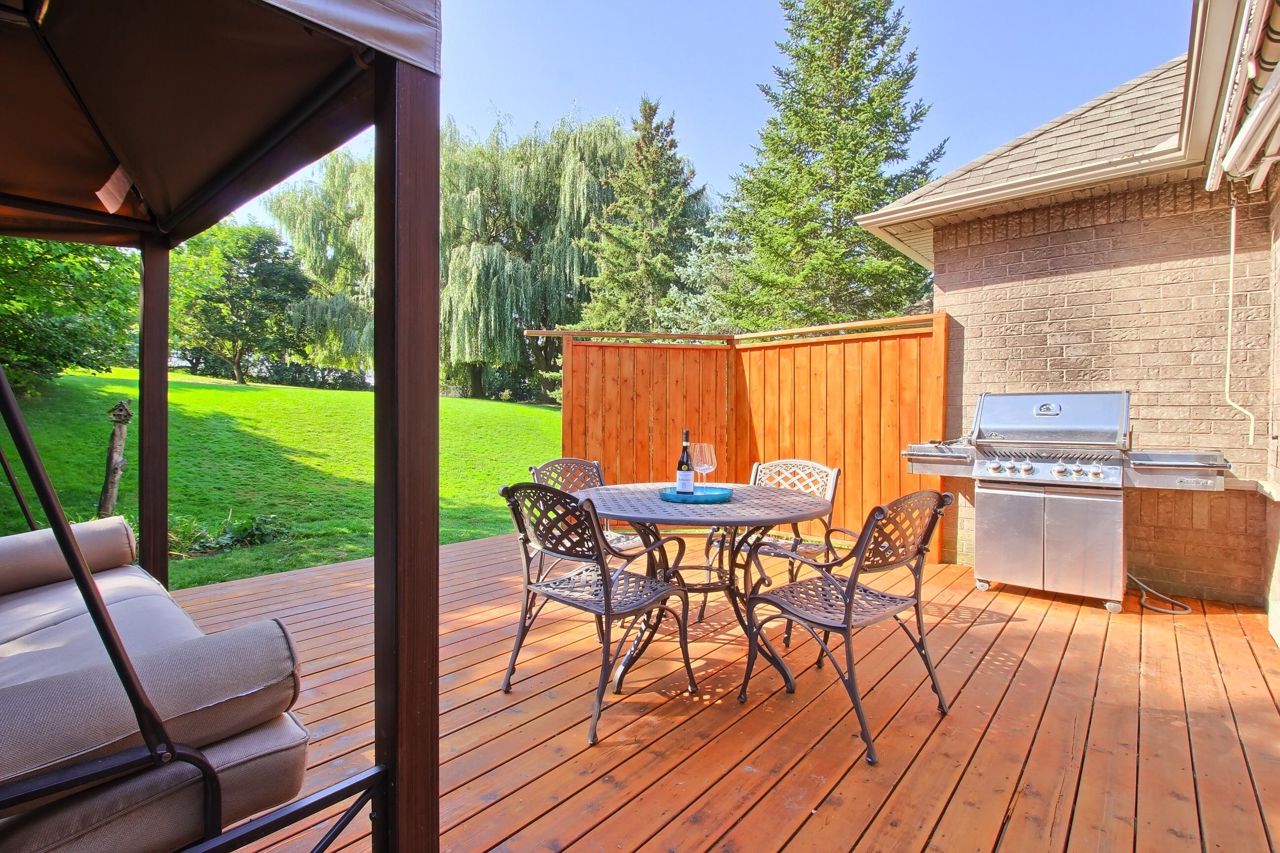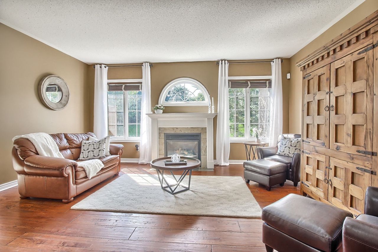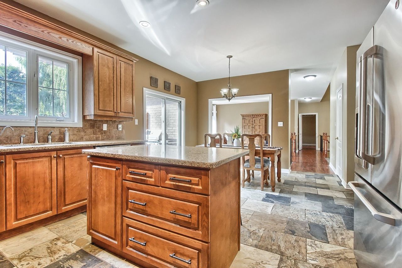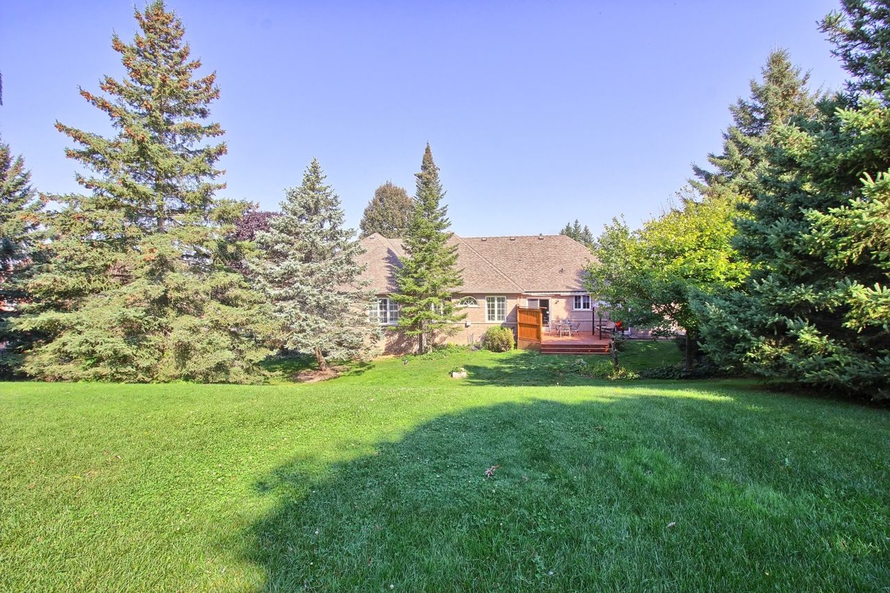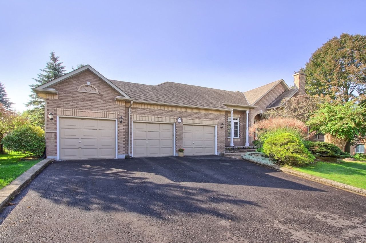 Welcome to 77 Colonel Wayling. This captivating renovated executive bungalow, nestled on nearly 1 acre in the serene Sharon Hills, offers the perfect blend of luxury and convenience. Escape to your own hidden oasis of tranquility while remaining close to schools, amenities, parks, and scenic trails. Enjoy year-round sunshine in the stunning backyard, perfect for entertaining or relaxing. The open-concept design seamlessly connects the spacious living area to a modern kitchen adorned with stainless steel appliances and sleek quartz countertops. Enjoy gas fireplaces in both family and living rooms. Retreat to a beautiful master bedroom featuring an ensuite bathroom and a walk-in closet for your ultimate comfort. 2 additional large bedrooms share another spacious bathroom. This almost 2600 square foot home + basement with above ground windows will not disappoint you. Easy option to add an in-laws suite with walkout. Possibilities are endless A true opportunity to own your forever home!Furnace (2021), A/C (2022), R 60 Insulation (2019), Roof (2010), New Eavestrough and leaf guard (2022), Cedar Deck (2021), Reverse Osmosis water filter for sink and kitchen fridge. Dinning room is currently used as an office.