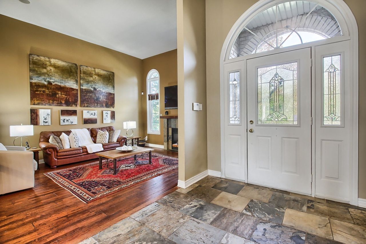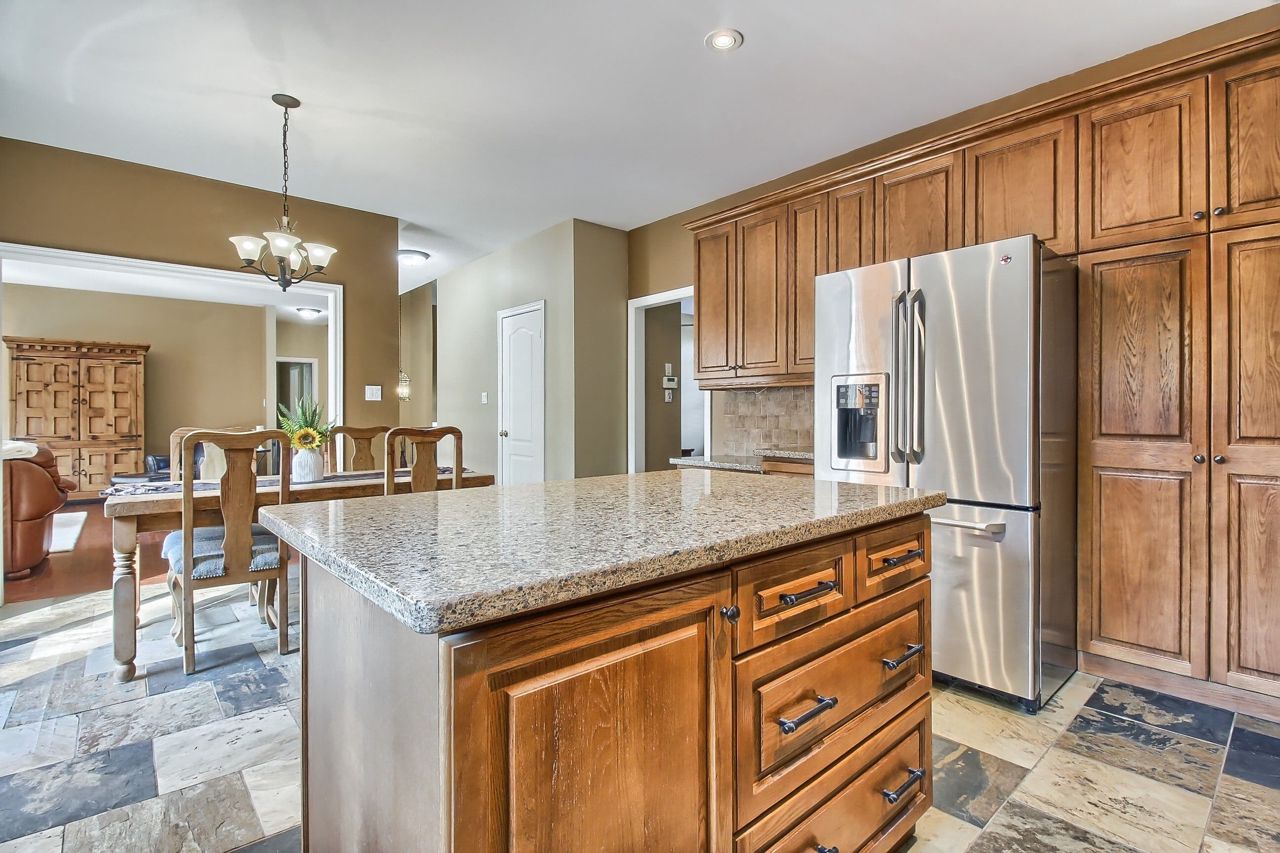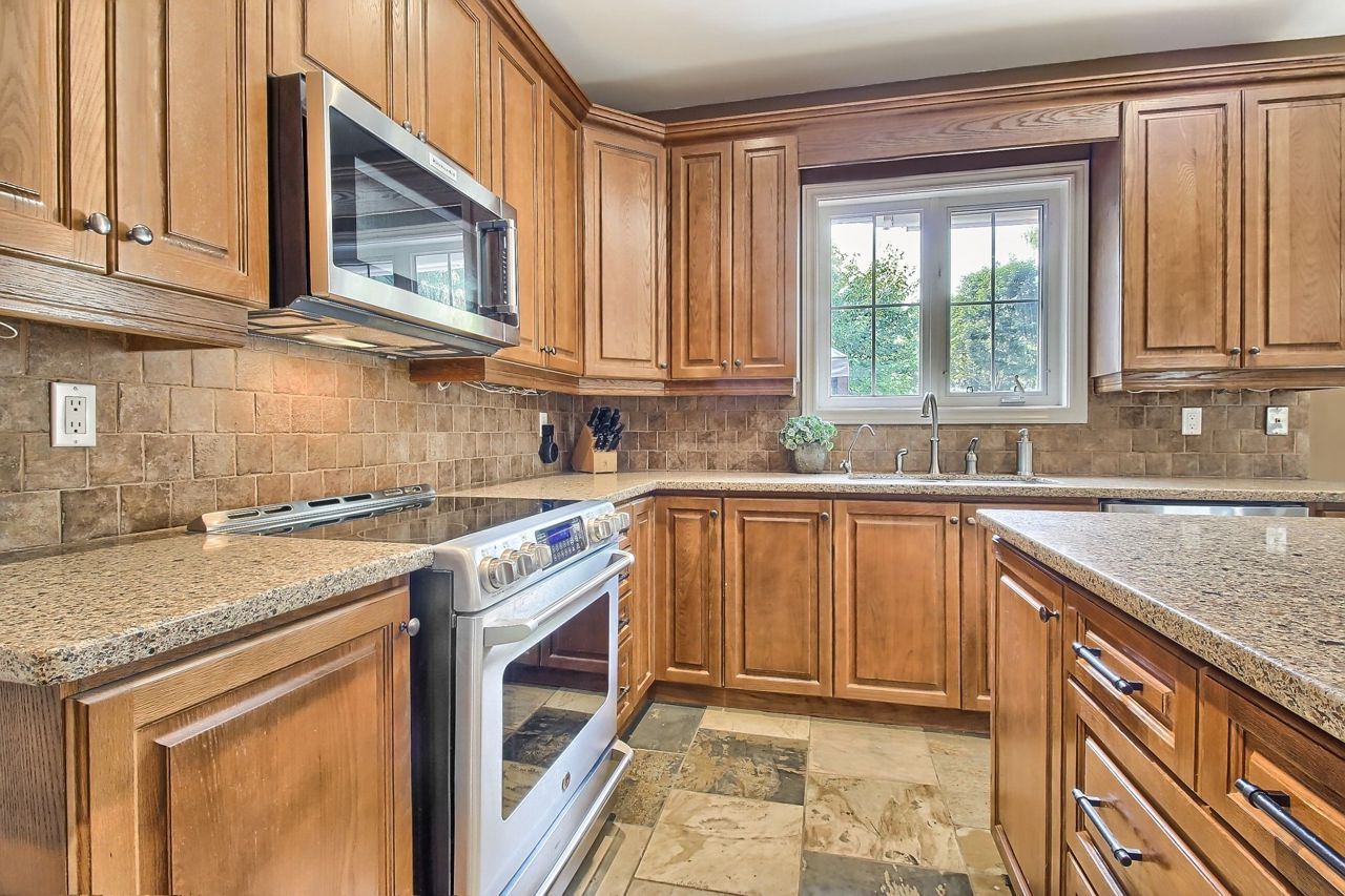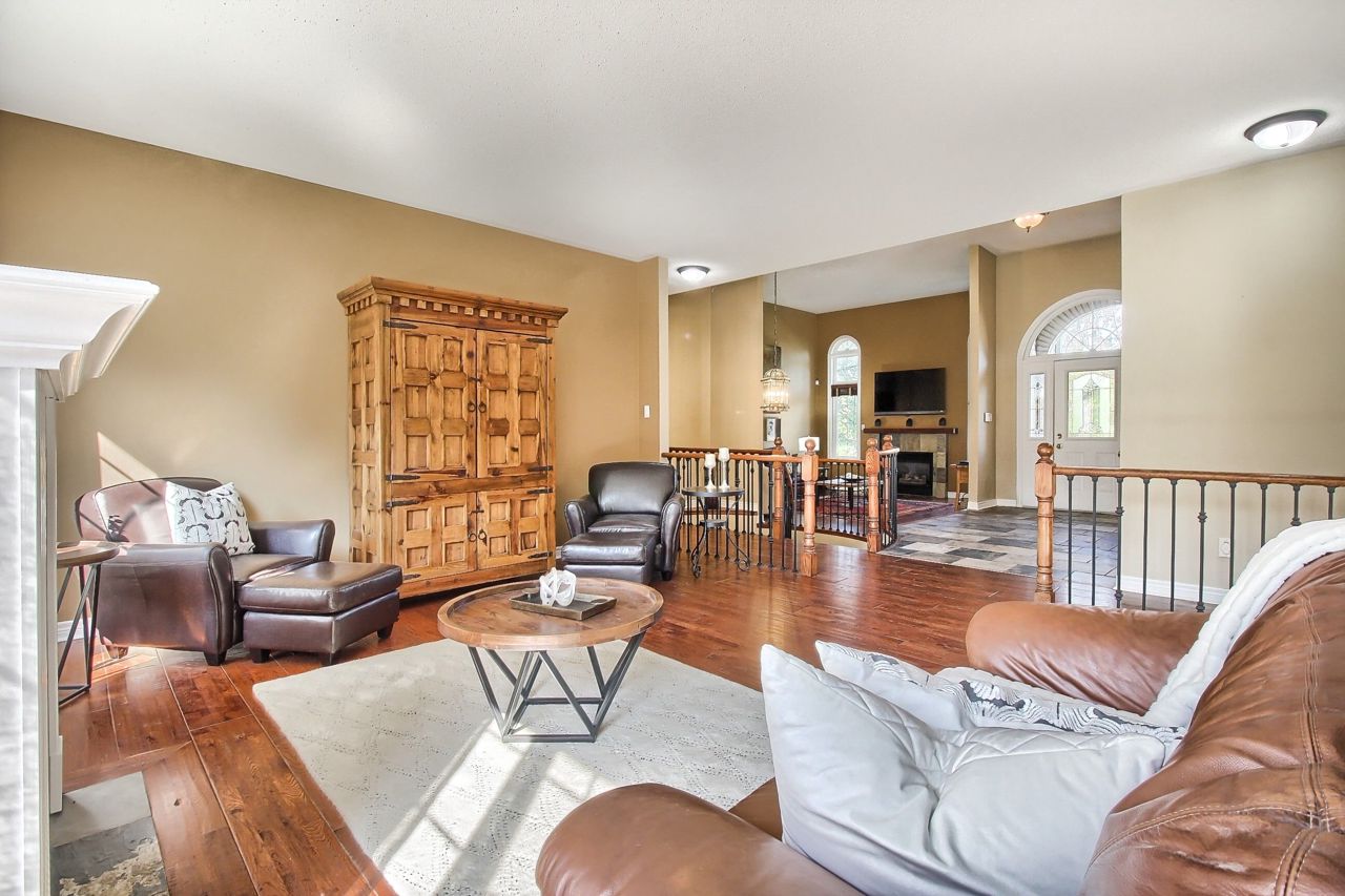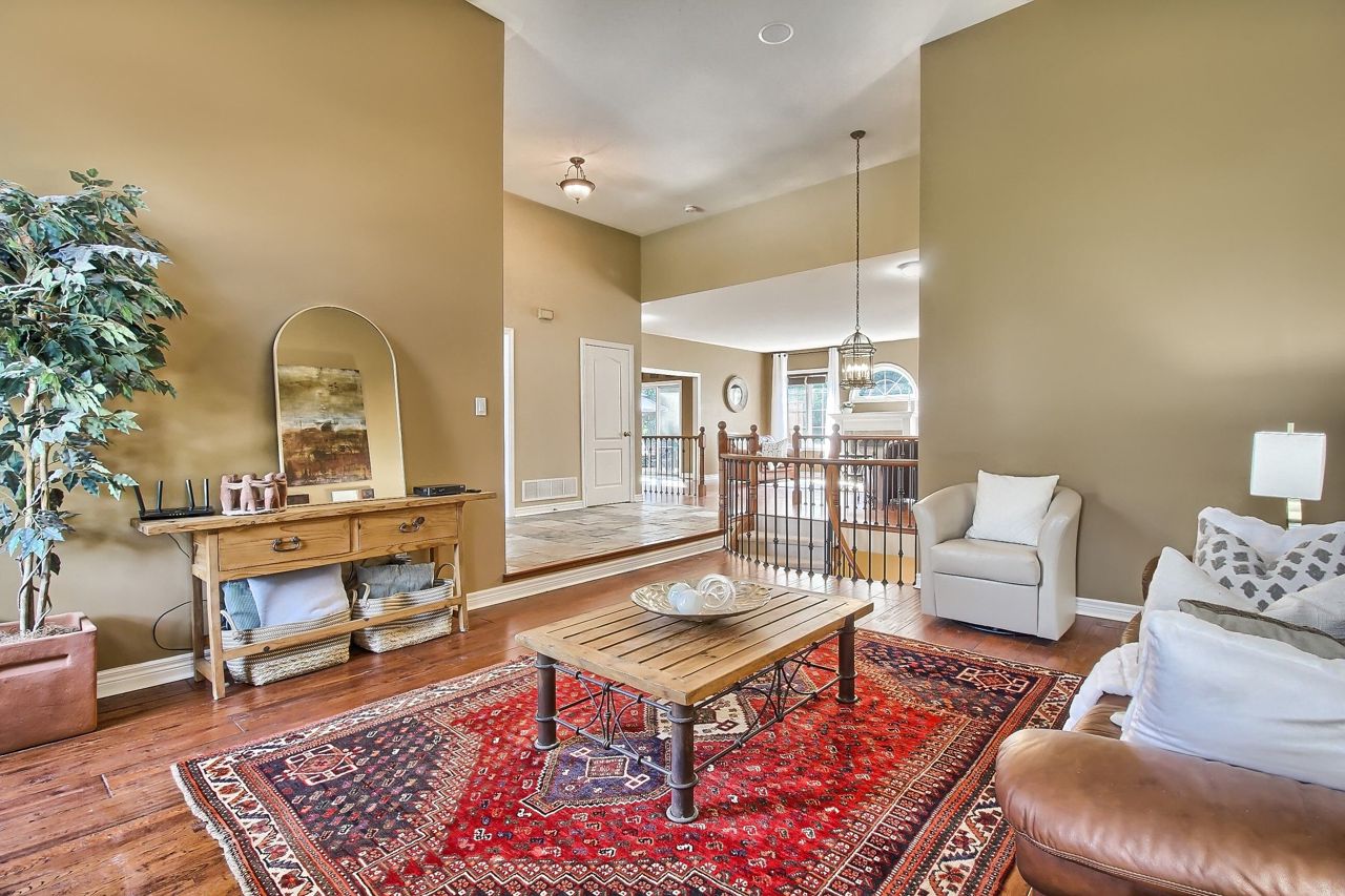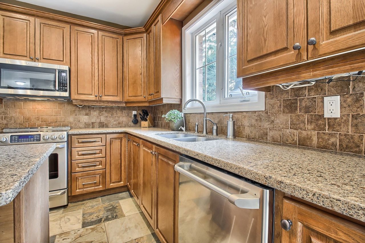 Welcome to 77 Colonel Wayling. This captivating renovated executive bungalow, nestled on nearly 1 acre in the serene Sharon Hills, offers the perfect blend of luxury and convenience. Escape to your own hidden oasis of tranquility while remaining close to schools, amenities, parks, and scenic trails. Enjoy year-round sunshine in the stunning backyard, perfect for entertaining or relaxing. The open-concept design seamlessly connects the spacious living area to a modern kitchen adorned with stainless steel appliances and sleek quartz countertops. Enjoy gas fireplaces in both family and living rooms. Retreat to a beautiful master bedroom featuring an ensuite bathroom and a walk-in closet for your ultimate comfort. 2 additional large bedrooms share another spacious bathroom. This almost 2600 square foot home + basement with above ground windows will not disappoint you. Easy option to add an in-laws suite with walkout. Possibilities are endless A true opportunity to own your forever home!Furnace (2021), A/C (2022), R 60 Insulation (2019), Roof (2010), New Eavestrough and leaf guard (2022), Cedar Deck (2021), Reverse Osmosis water filter for sink and kitchen fridge. Dinning room is currently used as an office.