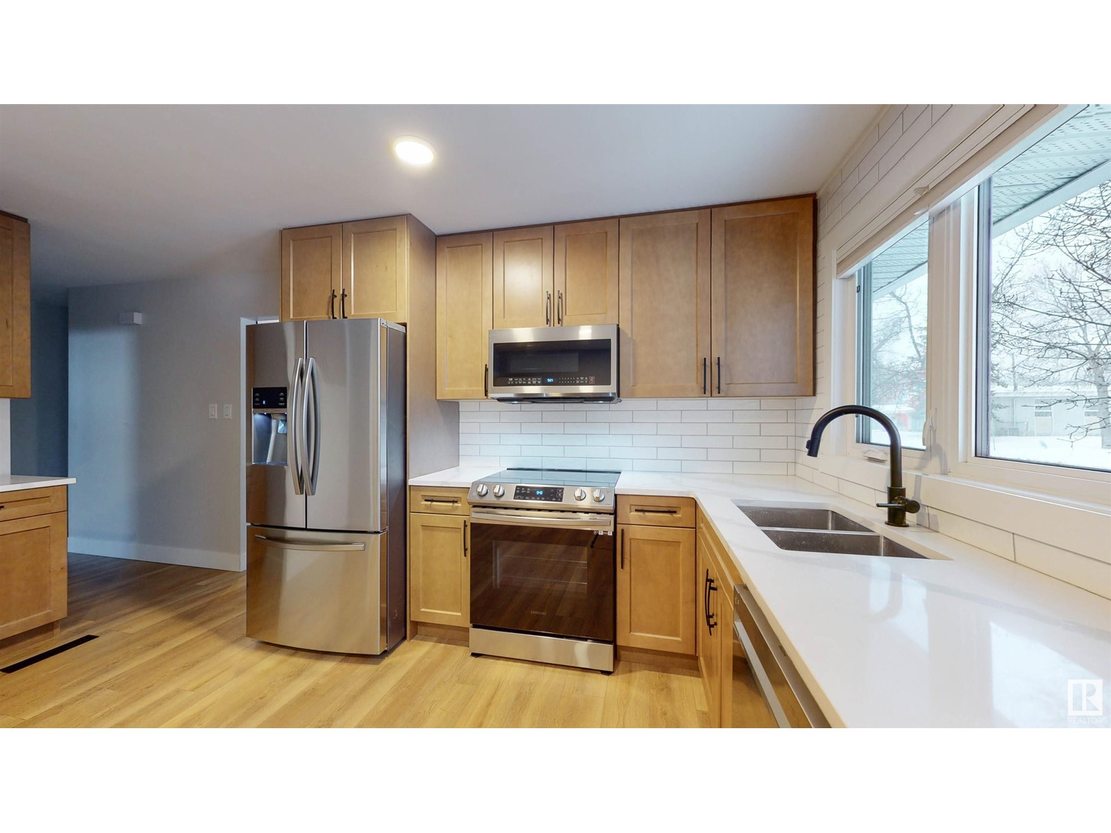 Double up without doubling down! This beautifully (AND completely) renovated home in Grovenor is full of possibilities. Whether you have amalgamated family, a home-based business or just a large family who needs room to grow, this 5 bedroom bungalow is ready to welcome you home! Oooo & ahhh as you enter the bright front room with its huge picture window, vintage textured ceiling & wood-burning fireplace. Family chefs will gasp in delight as they envision rolling pastry on the miles of quartz counters, surrounded by rich maple cabinetry & stainless steel appliances. Blissful sighs will be heard from the spa-like bath, with its soaker tub, spacious glass-enclosed shower & dual sinks. Cheers & laughter will fill the finished basement. A 2nd kitchen or bar space, a sizable rec room, full bath & 2 spacious bedrooms provide endless use options. Don't miss the oversized heated garage, additional parking, stone patio & landscaped yard. The RF3 zoning offers a multitude of permitted & discretionary uses. Just WOW (id:22211)