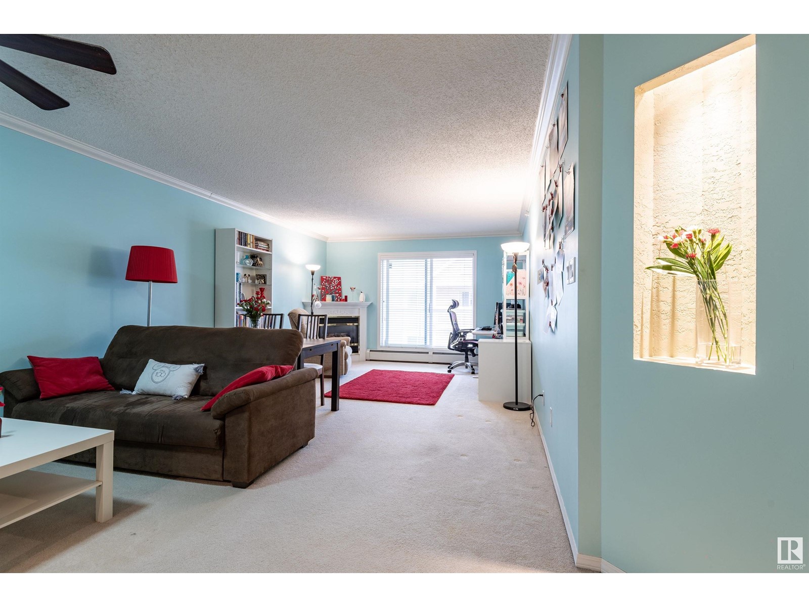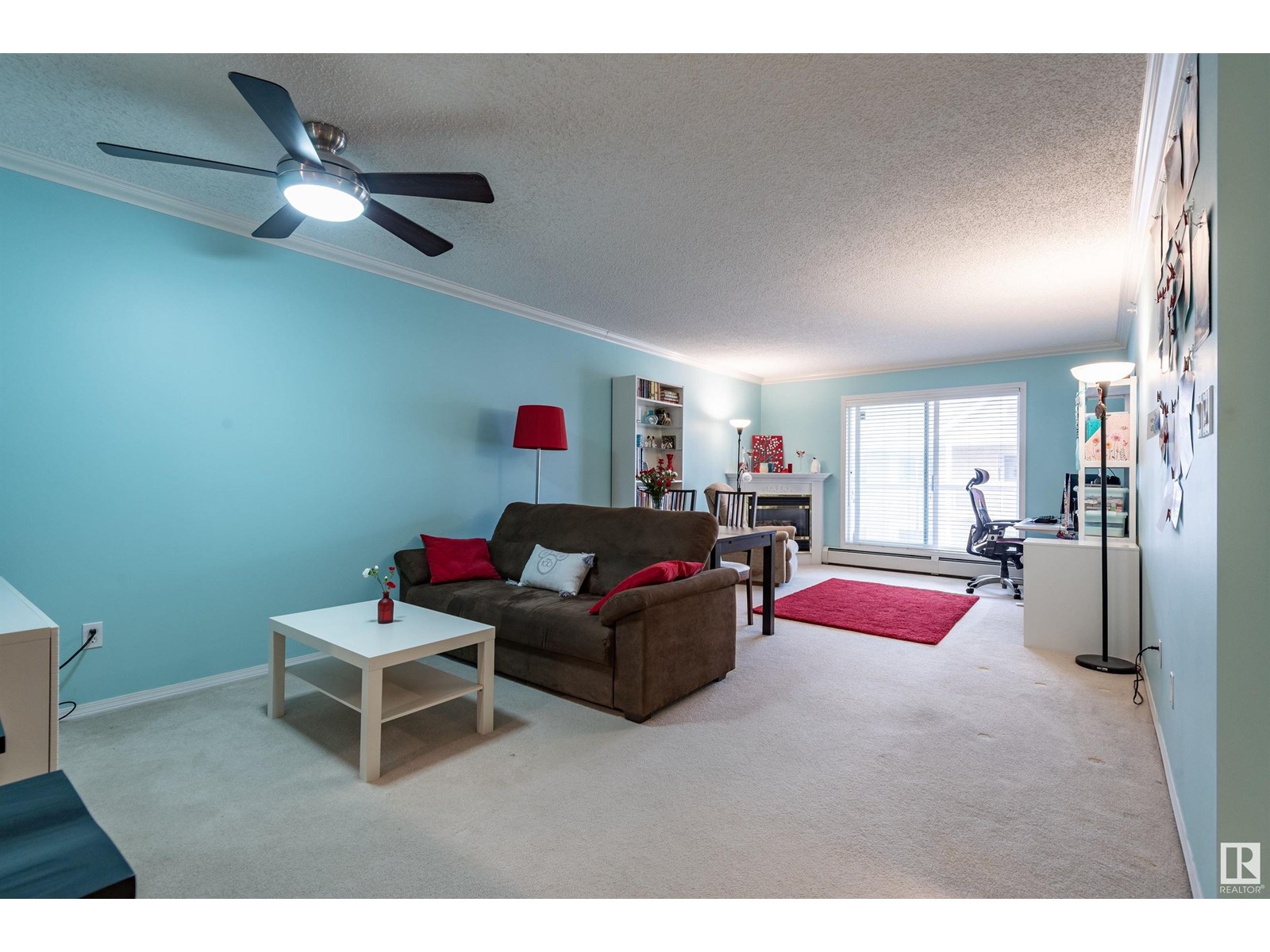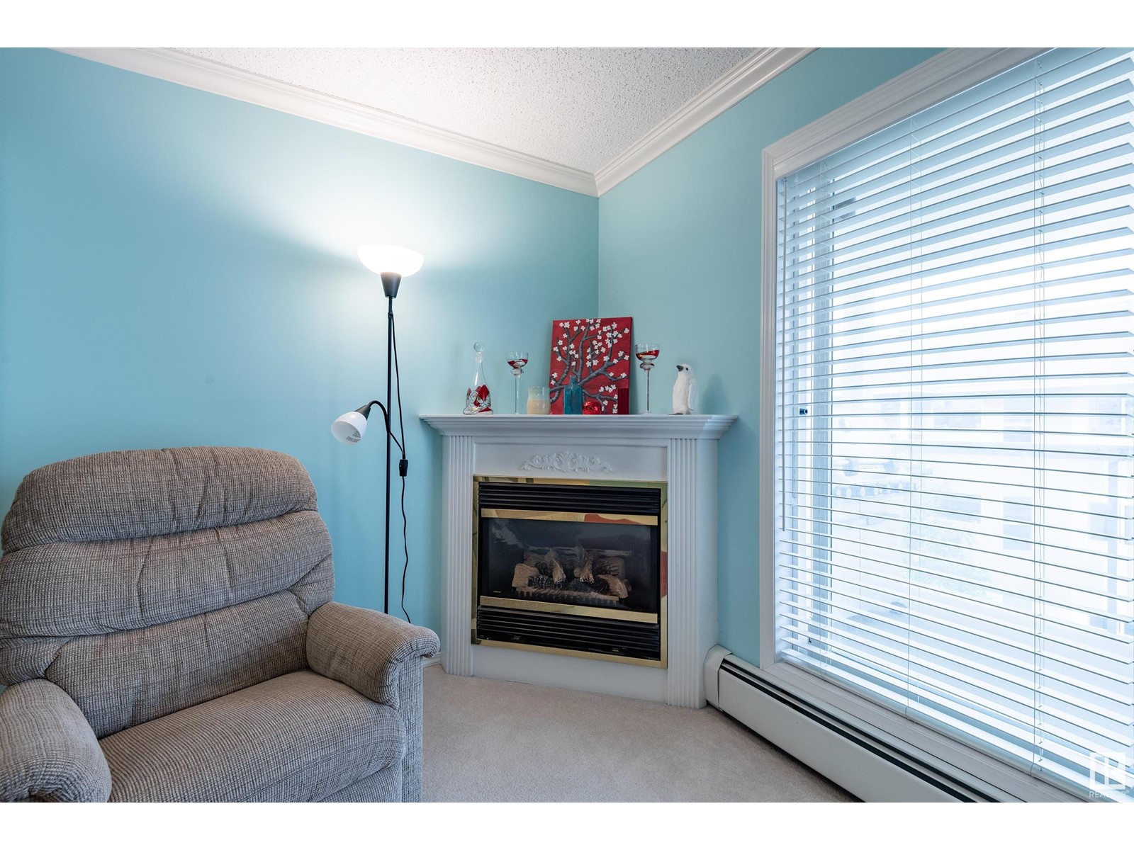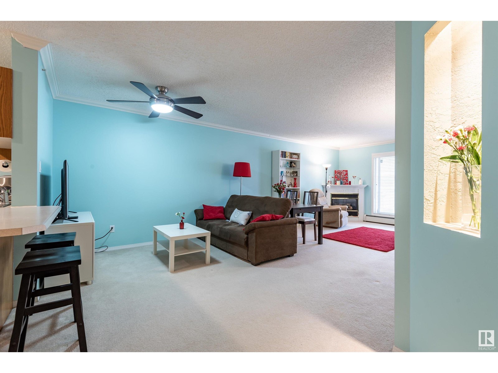 QUIET TOP FLOOR CONDO with heated underground parking and in-suite laundry. Sunny & Bright with no neighbour above to make any noise. Large south facing balcony overlooking the beautiful courtyard (gas hooked up & barbecue included). Open plan with neutral colour. A clean, well maintained & nicely located building. Close to all amenities such as transportation, shopping, Southgate, library, U of A etc... & easy access to Whitemud Dr & Calgary Trail. Galley kitchen with plenty of cupboards & eating bar. Cozy dining area opens to the huge living room with corner gas fireplace. Large bedroom with big window. Good sized laundry and storage room. Secured underground parking with a storage cage. Perfect for single/couple, student or the savvy investor. Good amenities include a friendly social room, exercise room & plenty of seating in lobby and lots of visitor parking.Quick possession. (id:22211)