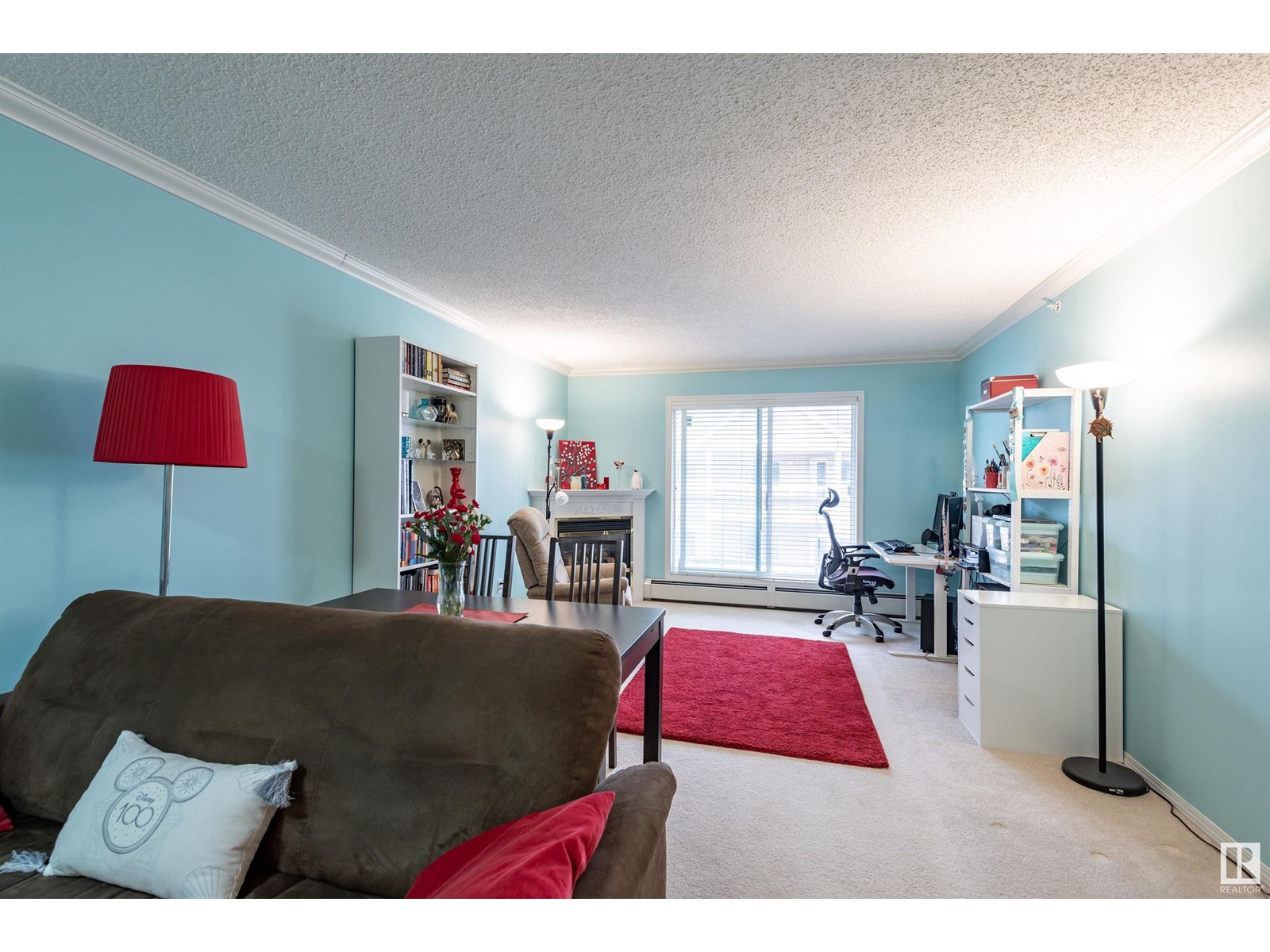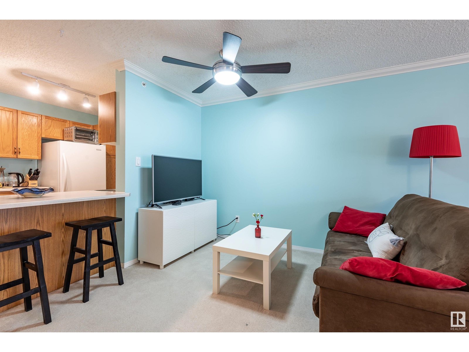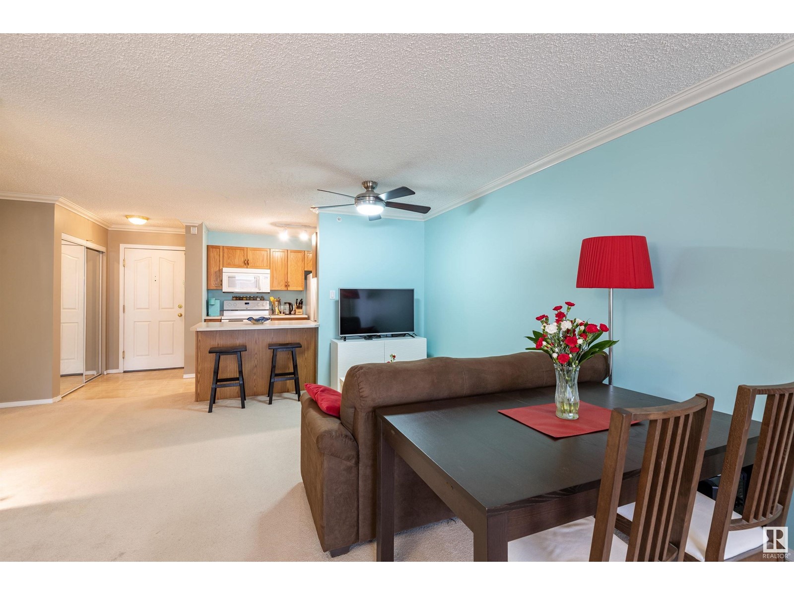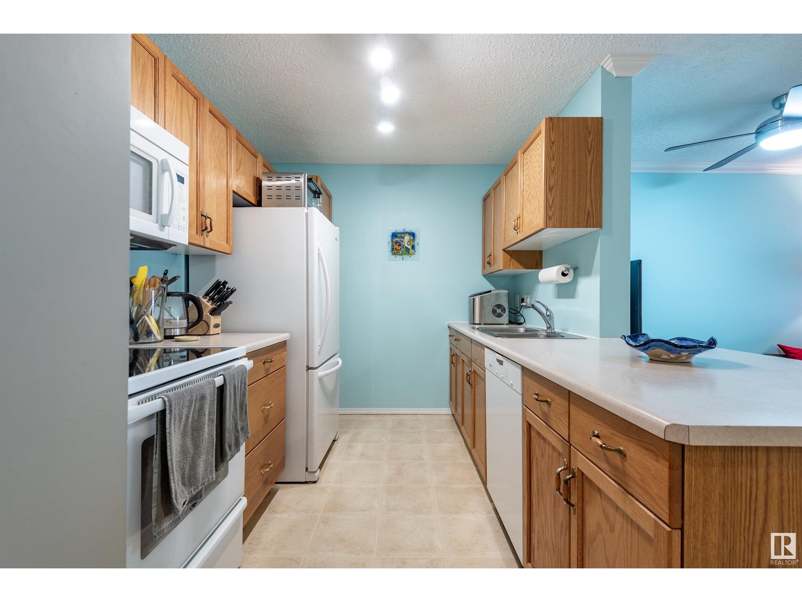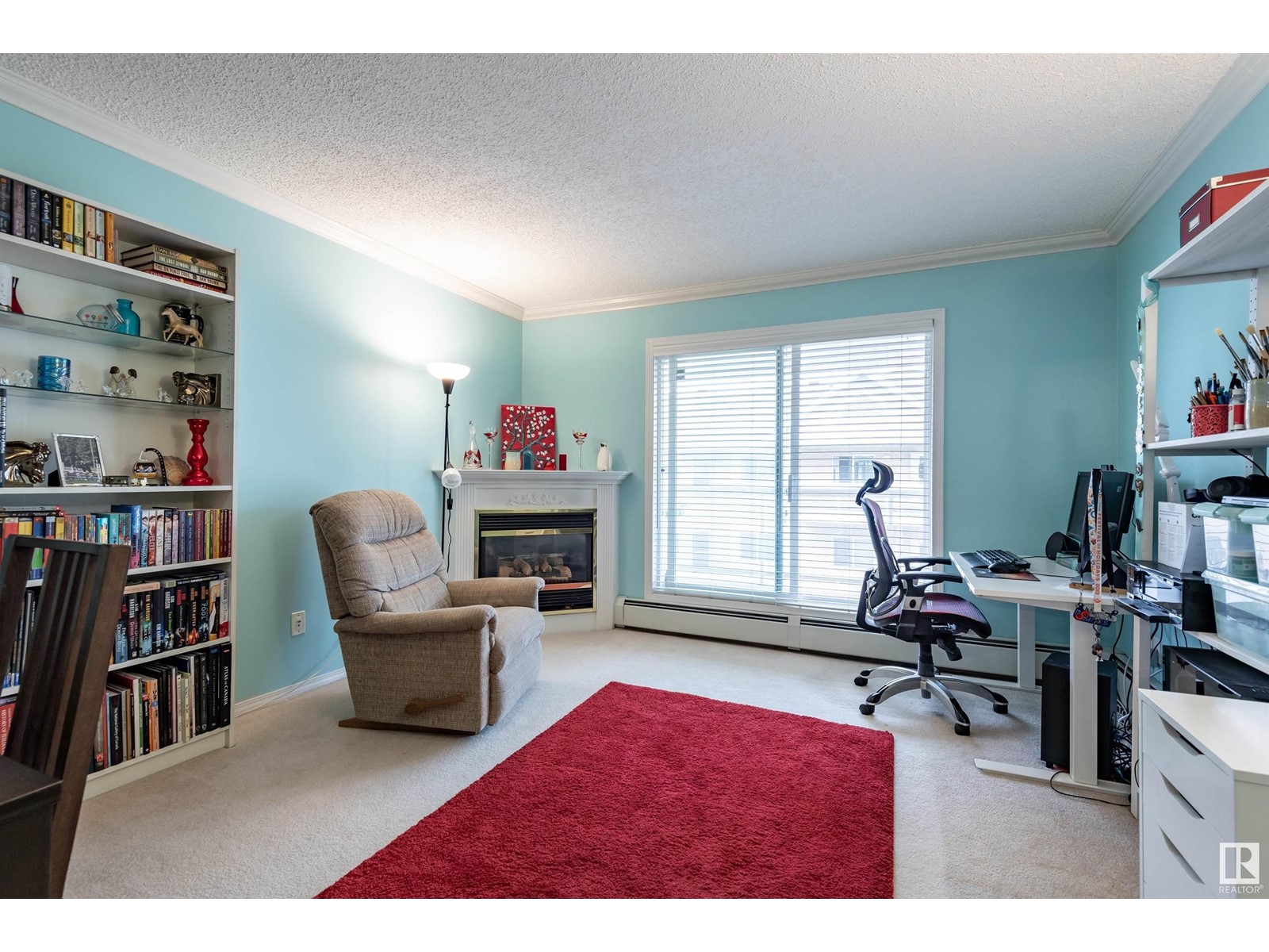 QUIET TOP FLOOR CONDO with heated underground parking and in-suite laundry. Sunny & Bright with no neighbour above to make any noise. Large south facing balcony overlooking the beautiful courtyard (gas hooked up & barbecue included). Open plan with neutral colour. A clean, well maintained & nicely located building. Close to all amenities such as transportation, shopping, Southgate, library, U of A etc... & easy access to Whitemud Dr & Calgary Trail. Galley kitchen with plenty of cupboards & eating bar. Cozy dining area opens to the huge living room with corner gas fireplace. Large bedroom with big window. Good sized laundry and storage room. Secured underground parking with a storage cage. Perfect for single/couple, student or the savvy investor. Good amenities include a friendly social room, exercise room & plenty of seating in lobby and lots of visitor parking.Quick possession. (id:22211)
