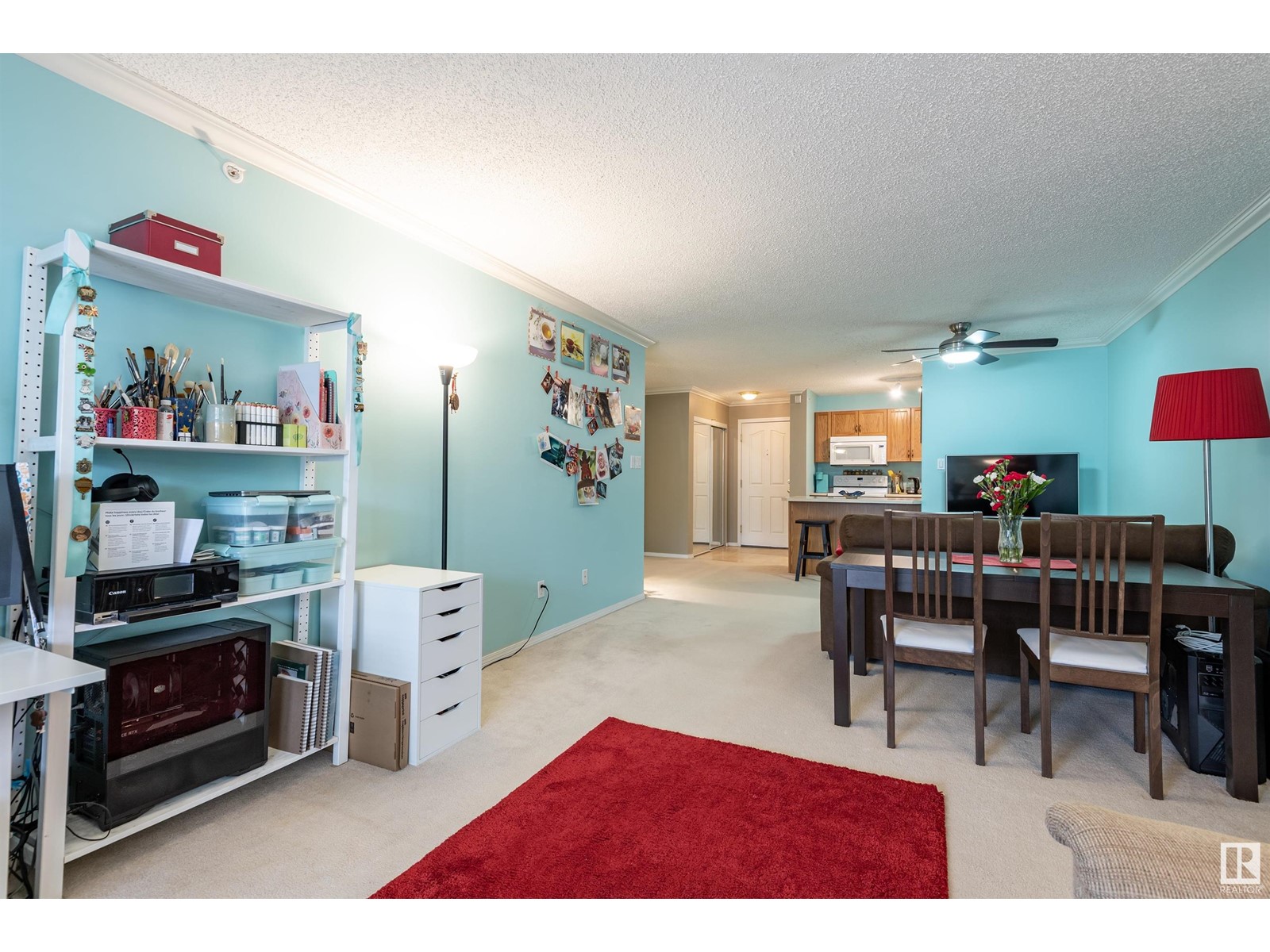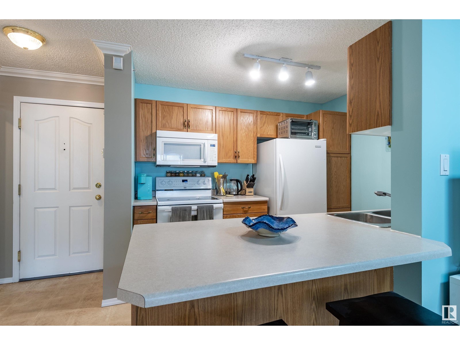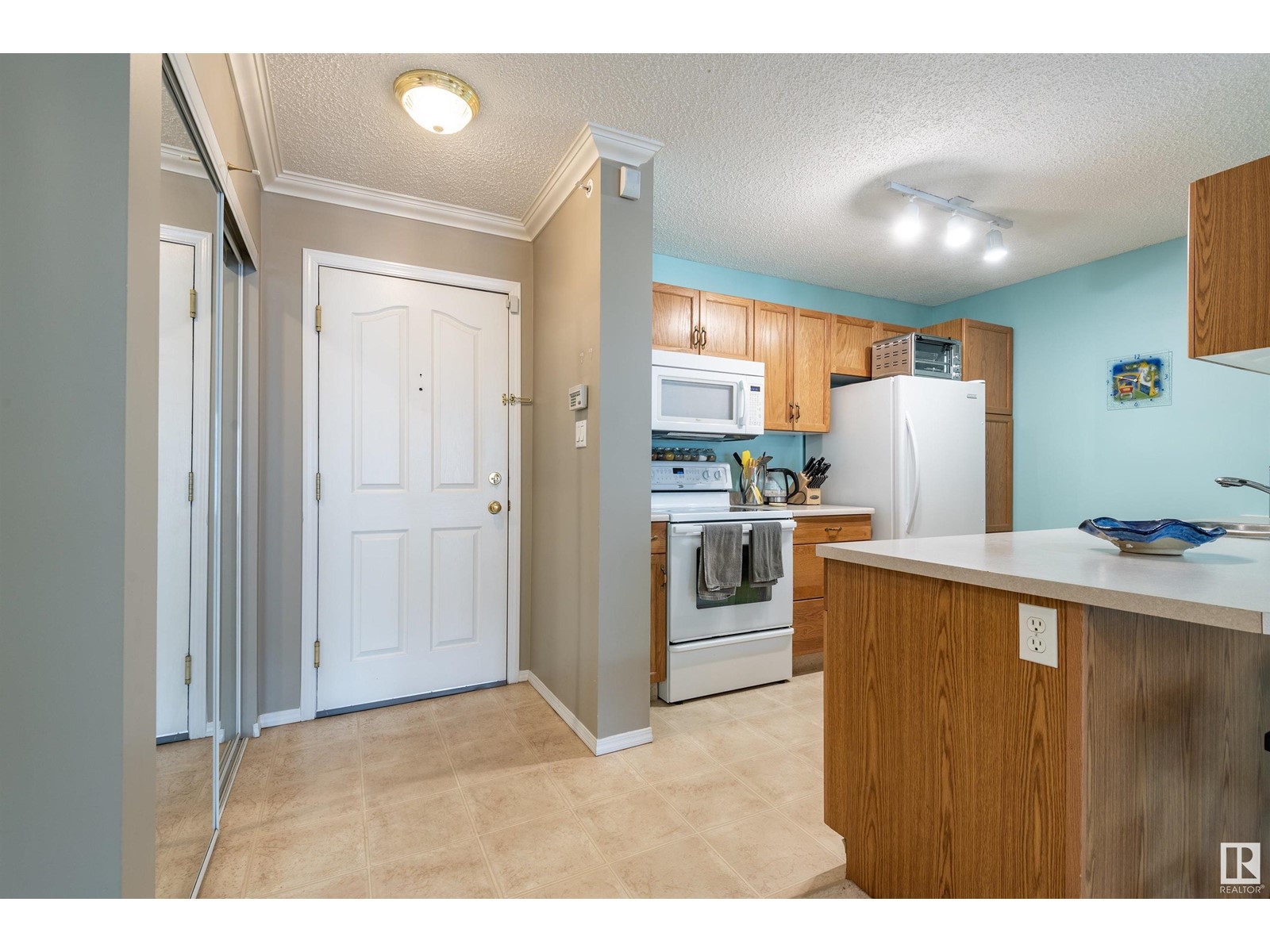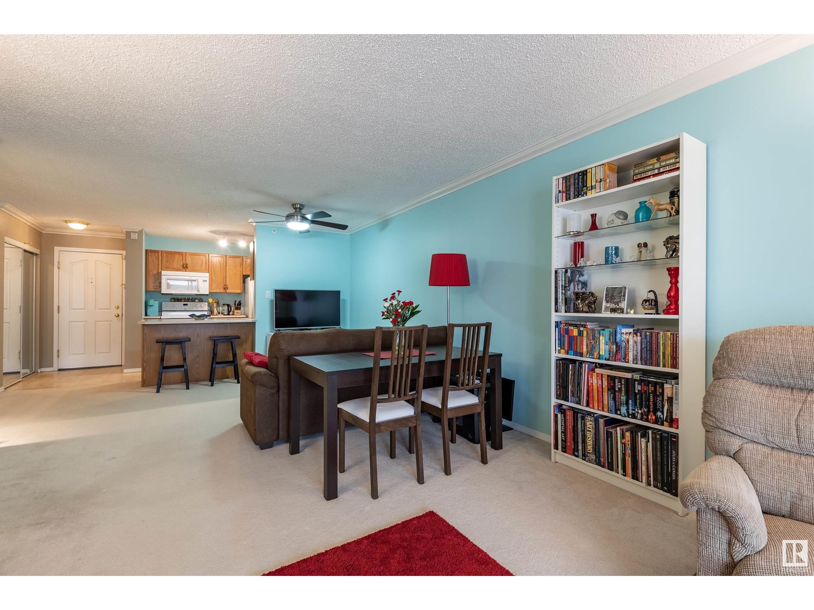 QUIET TOP FLOOR CONDO with heated underground parking and in-suite laundry. Sunny & Bright with no neighbour above to make any noise. Large south facing balcony overlooking the beautiful courtyard (gas hooked up & barbecue included). Open plan with neutral colour. A clean, well maintained & nicely located building. Close to all amenities such as transportation, shopping, Southgate, library, U of A etc... & easy access to Whitemud Dr & Calgary Trail. Galley kitchen with plenty of cupboards & eating bar. Cozy dining area opens to the huge living room with corner gas fireplace. Large bedroom with big window. Good sized laundry and storage room. Secured underground parking with a storage cage. Perfect for single/couple, student or the savvy investor. Good amenities include a friendly social room, exercise room & plenty of seating in lobby and lots of visitor parking.Quick possession. (id:22211)