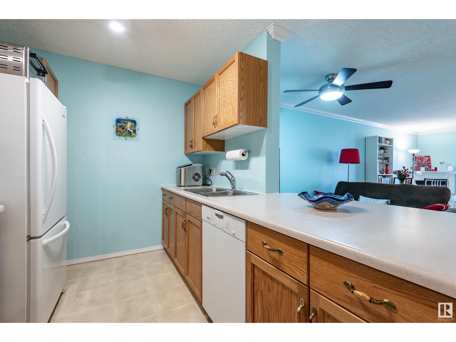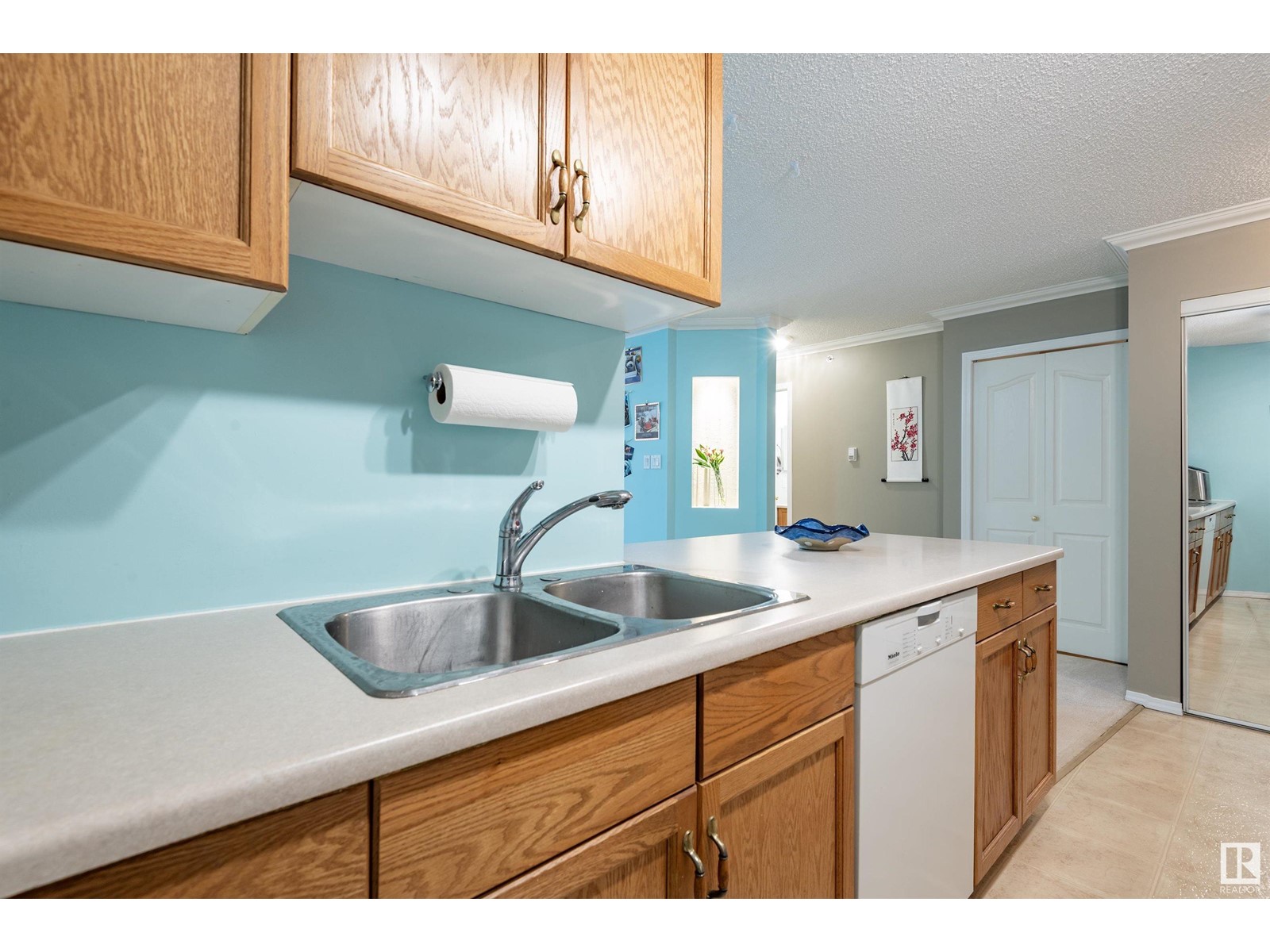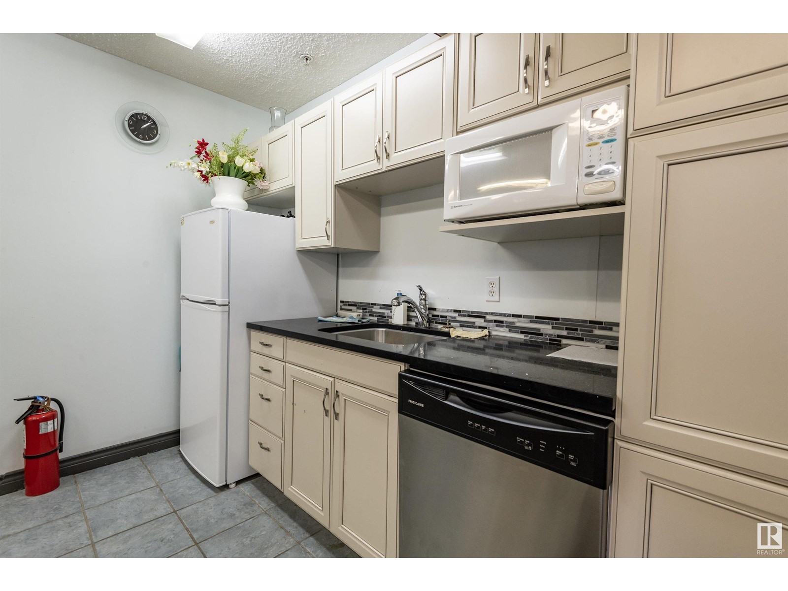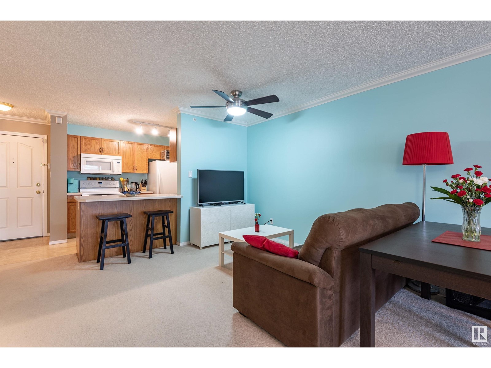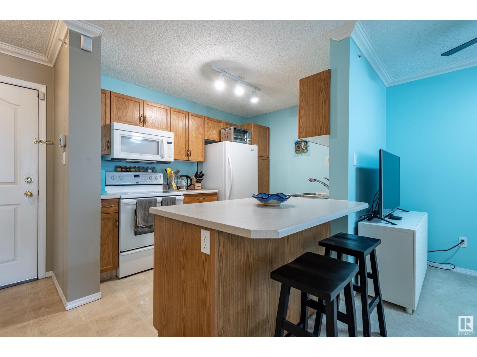 QUIET TOP FLOOR CONDO with heated underground parking and in-suite laundry. Sunny & Bright with no neighbour above to make any noise. Large south facing balcony overlooking the beautiful courtyard (gas hooked up & barbecue included). Open plan with neutral colour. A clean, well maintained & nicely located building. Close to all amenities such as transportation, shopping, Southgate, library, U of A etc... & easy access to Whitemud Dr & Calgary Trail. Galley kitchen with plenty of cupboards & eating bar. Cozy dining area opens to the huge living room with corner gas fireplace. Large bedroom with big window. Good sized laundry and storage room. Secured underground parking with a storage cage. Perfect for single/couple, student or the savvy investor. Good amenities include a friendly social room, exercise room & plenty of seating in lobby and lots of visitor parking.Quick possession. (id:22211)