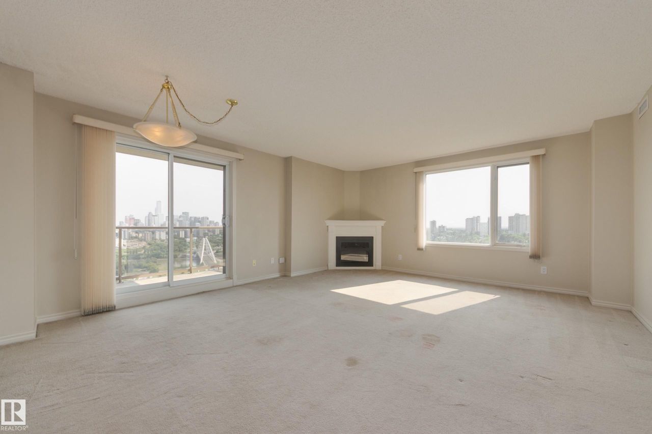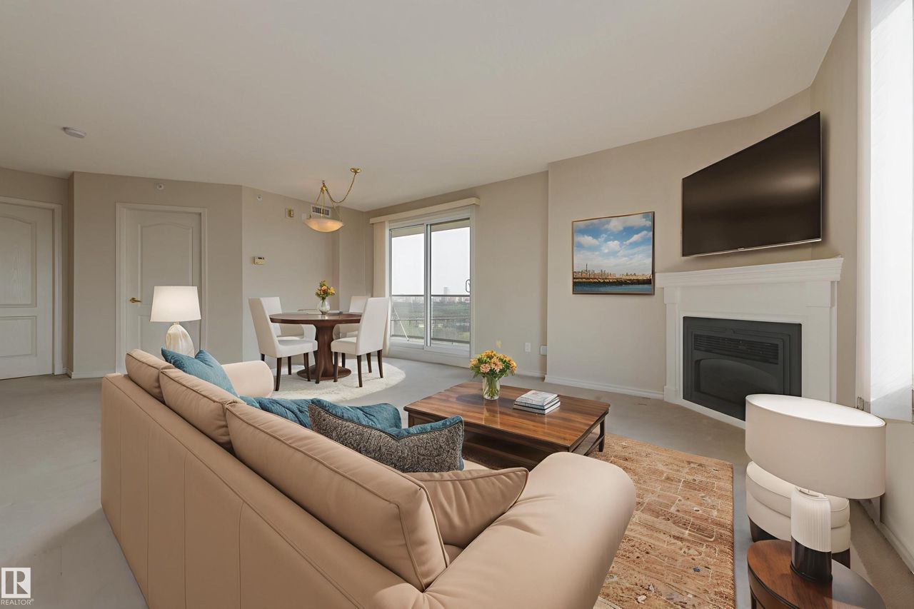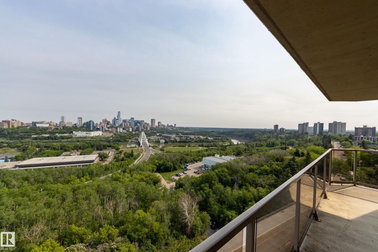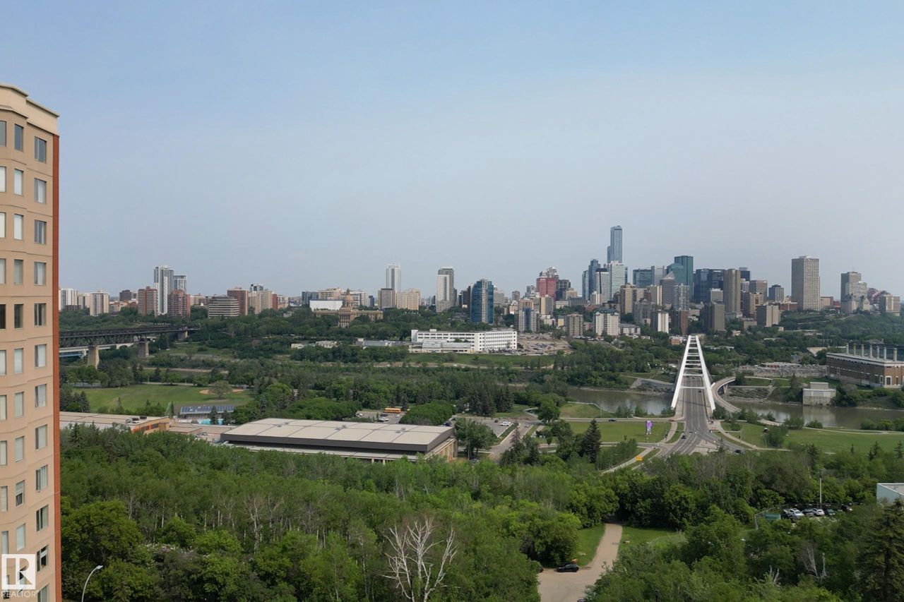 Spectacular RIVER VALLEY VIEW, in this immaculate corner unit with TWO TITLED PARKING STALLS. The prestigious Lord Strathcona Manor welcomes you to your bright & spacious 1,041 sq ft 2 bedroom, 2 bath, corner unit. Enjoy sweeping views of the the scenic river valley & city skyline from your massive 12th floor balcony. This well-managed, PET-FRIENDLY, secure building is a short walk to U of A, downtown and Whyte Ave. Step inside your unit to the large foyer & enjoy plenty of natural light from two sides. Perfect for entertaining, there's a large living room with a corner fireplace to keep you cozy on cool nights, ample dining space and efficient kitchen, all with access to the balcony. The primary bedroom is large and features a sunny bow window, dual closets and a full ensuite. There's a good-sized second bedroom and another full 4-piece bath. And you'll love the convenience of in-suite laundry, an on-site fitness room bike storage and TWO TITLED UNDERGROUND STALLS. Fees cover all but power & cable.