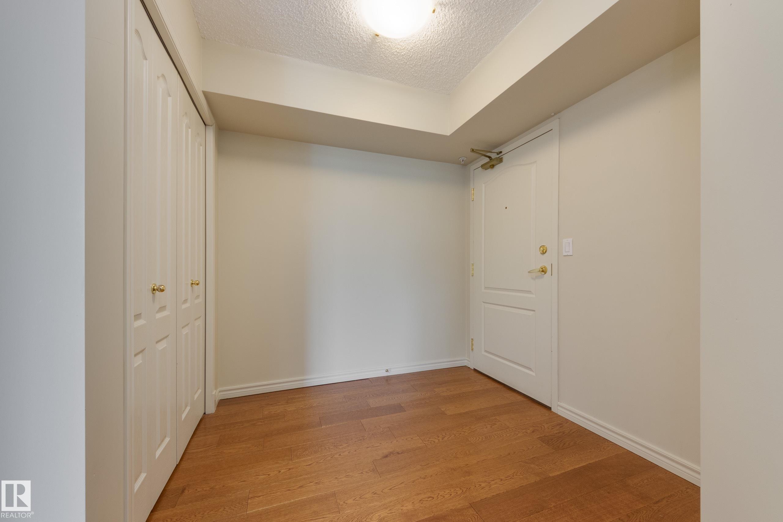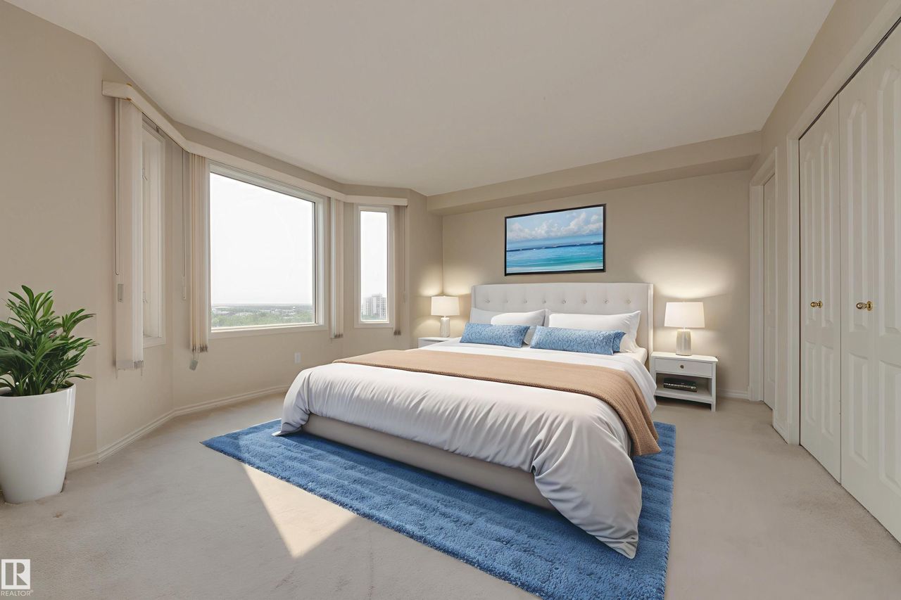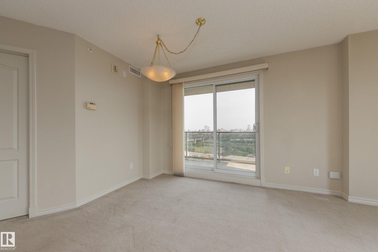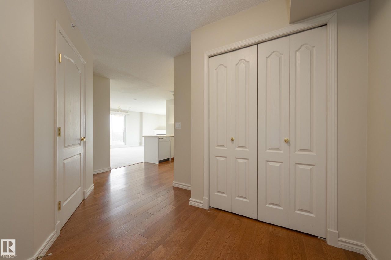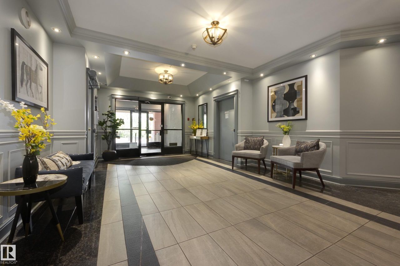 Spectacular RIVER VALLEY VIEW, in this immaculate corner unit with TWO TITLED PARKING STALLS. The prestigious Lord Strathcona Manor welcomes you to your bright & spacious 1,041 sq ft 2 bedroom, 2 bath, corner unit. Enjoy sweeping views of the the scenic river valley & city skyline from your massive 12th floor balcony. This well-managed, PET-FRIENDLY, secure building is a short walk to U of A, downtown and Whyte Ave. Step inside your unit to the large foyer & enjoy plenty of natural light from two sides. Perfect for entertaining, there's a large living room with a corner fireplace to keep you cozy on cool nights, ample dining space and efficient kitchen, all with access to the balcony. The primary bedroom is large and features a sunny bow window, dual closets and a full ensuite. There's a good-sized second bedroom and another full 4-piece bath. And you'll love the convenience of in-suite laundry, an on-site fitness room bike storage and TWO TITLED UNDERGROUND STALLS. Fees cover all but power & cable.