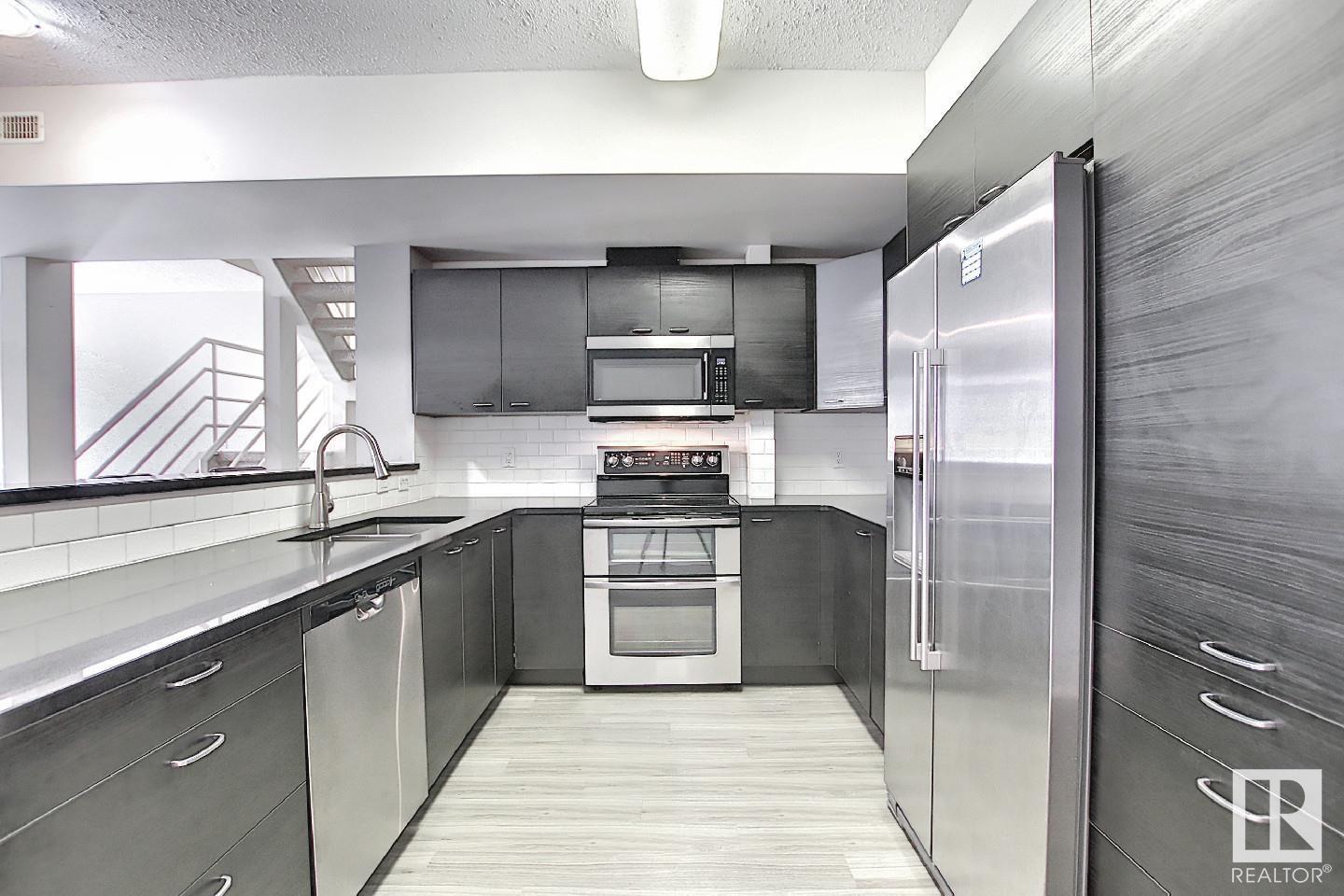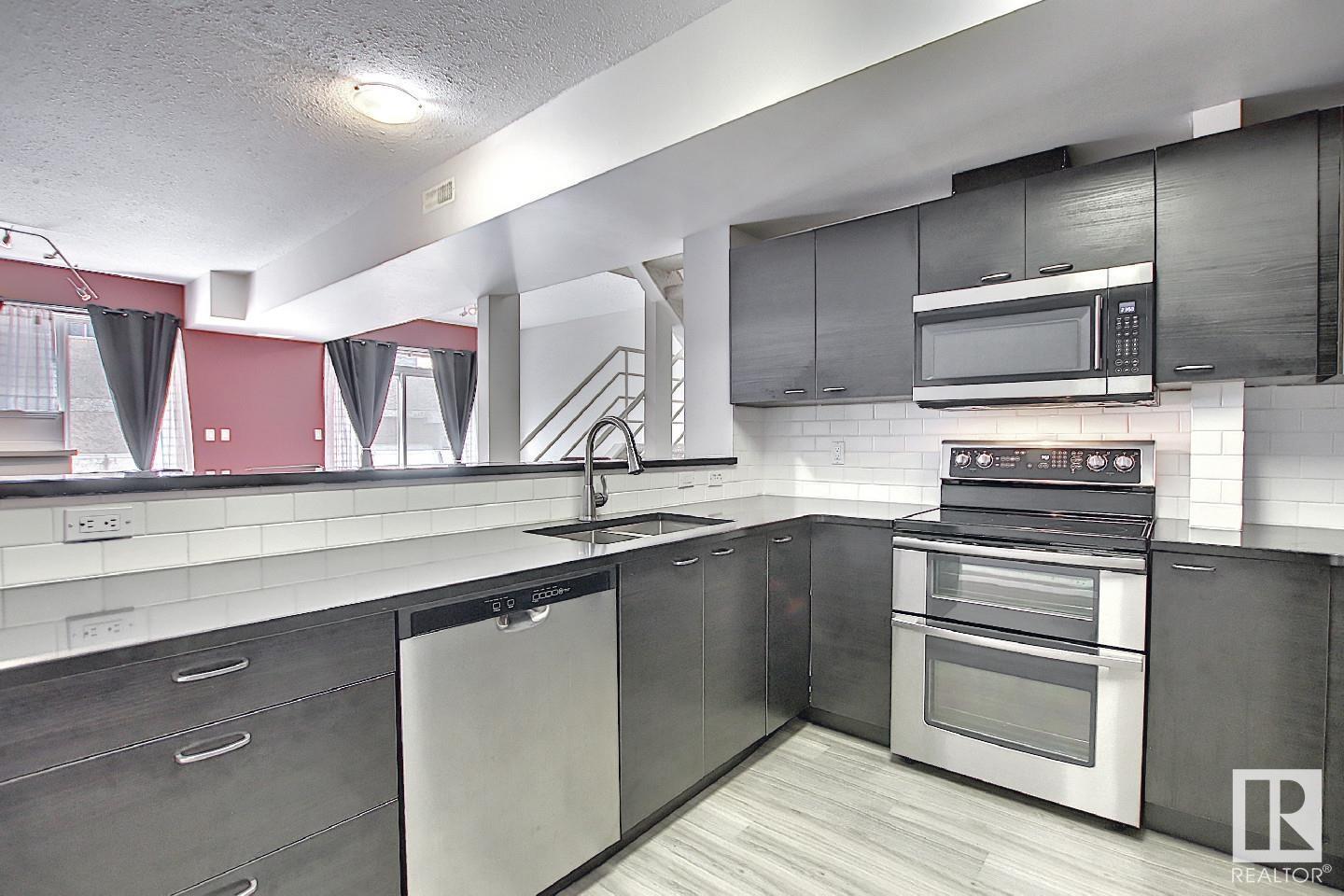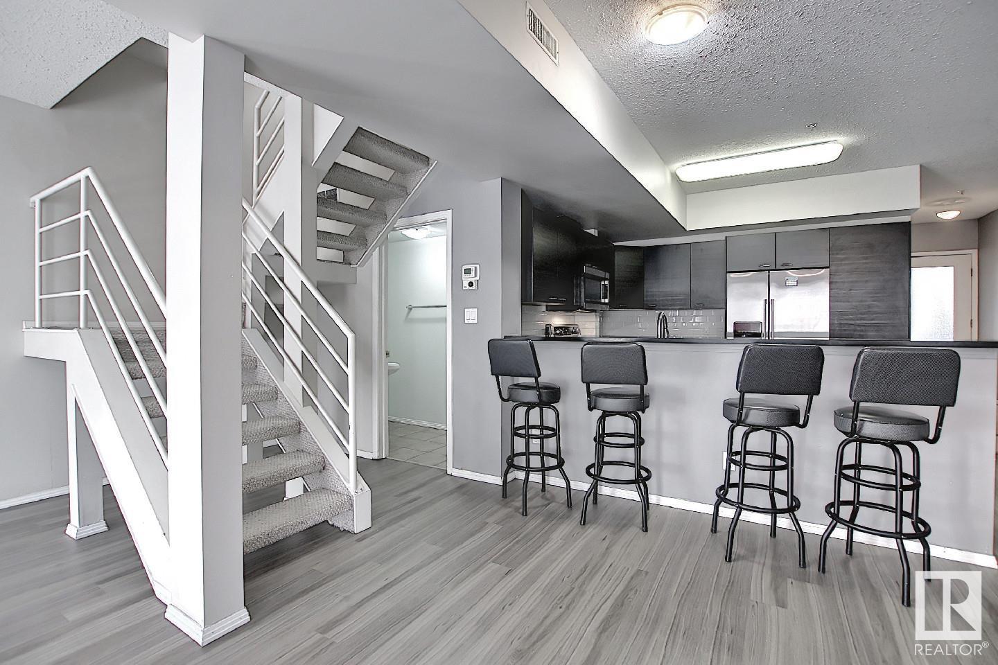 LOCATED IN THE HEART OF IT ALL!! Just 1 block off Whyte Ave, a few blocks to U of A, Strathcona Farmers Market, so many restaurants and shops - this is a dream, GATED COMPLEX with COURTYARD + MULTI LEVEL 2 BEDROOM CONDO! Recently renovated kitchen with new stainless appliances, an abundance of new kitchen cabinets, counter-space, storage and a fantastic raised eating bar! Main floor also features a spacious living room, dining area, half bath, laundry, storage and access to the private patio! Upstairs are 2 bedrooms and full bathroom. One titled underground parking stall is included, AND there is CENTRAL AIR-CONDITIONING! Check this one out! (id:22211)