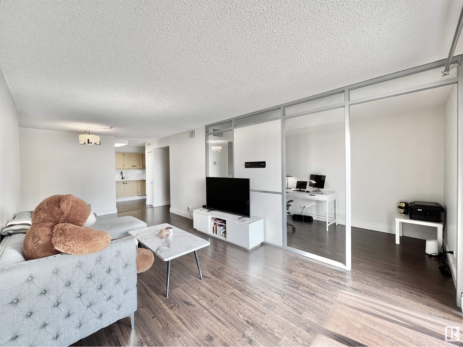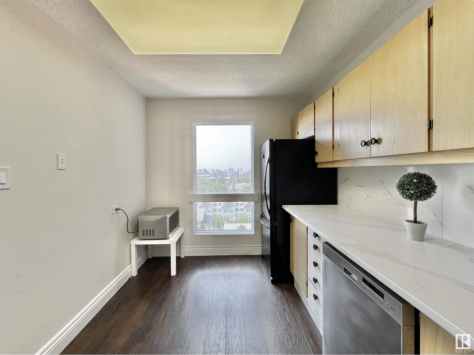 Condo fee includes all utilities! Location! Amazing City View! Fully Renovated unit with A/C. It boasts 851 sqft w 1 bdrm + 1 den that provide a feeling of spaciousness and grandeur New floor, new paint throughout 1 Titled heated U/G parking Newer kitchen - quartz countertops, lots of cabinetry, newer dishwasher Patio doors just off the warm living room lead to a generous balcony and non obstructed city view Primary bedroom w/double large closet Fully renovated 4 pc bathroom - beautifully appointed, w/high-end fixtures & finishes provide a spa-like feel Den - a flexible space that can be used as a home office, guest room, or additional living area In suite Laundry & additional storage On-site building caretaker Surrounded by all amenities - Whyte Ave, parks and trails, river valley, cafes, the best dining, shopping, and entertainment options in the city A cozy home to retreat or a luxurious space to entertain - it's steps away from UofA, and UofA hospital, and LRT. (id:22211)
