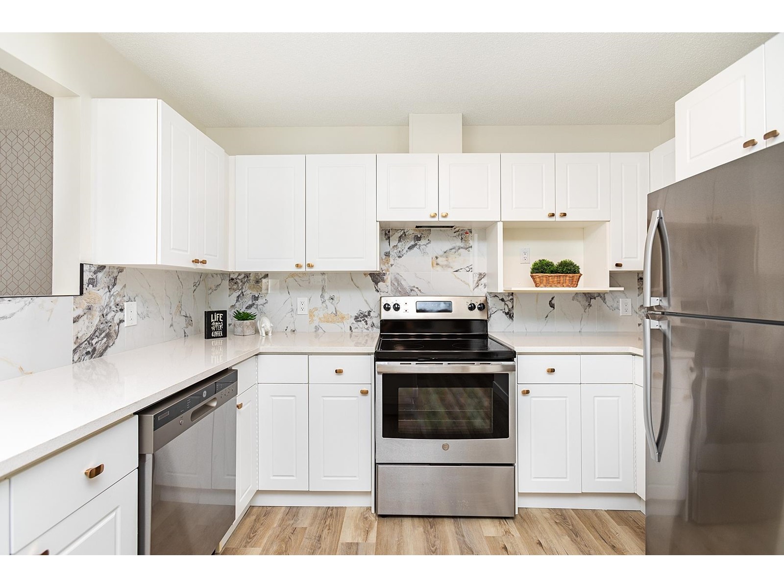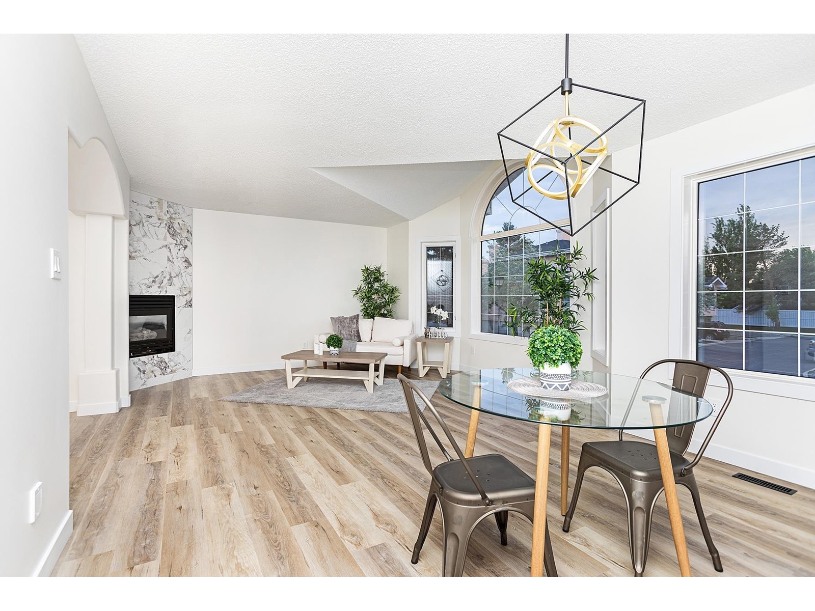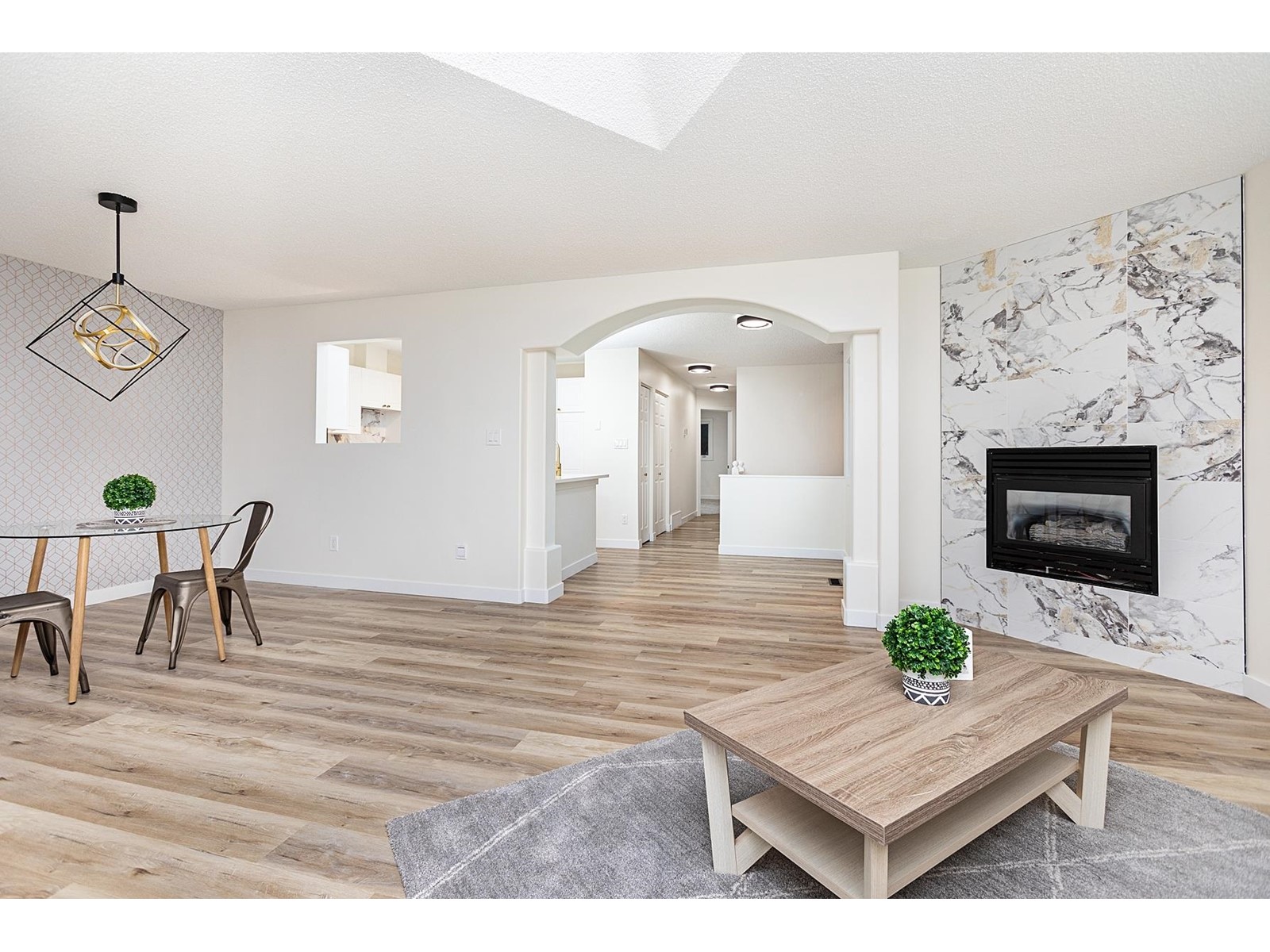 Welcome to your newly renovated townhome! This stunning property has been fully updated with modern amenities & stylish finishes, creating a comfortable & inviting atmosphere. You'll immediately notice the open & spacious floor plan. The beautiful, white kitchen features sleek S/S appliances, elegant quartz countertops, gold accents, & eye-catching backsplash. The adjacent dining area is the perfect place to enjoy a meal with loved ones, with plenty of natural light flooding in through the large windows. The living room is graced with vaulted ceilings and a tiled gas fireplace. Upstairs, are 2 spacious bedrm, each with their own bthrm. The master bedrm features a walkin closet, French doors to access your private upper deck, providing ultimate privacy & relaxation. Other highlights include a fully renovated basement, with plush carpet & warm white walls. A double-car garage on a corner lot. This home offers the ideal combination of style, comfort, & convenience. Don't miss your chance to make it your own. (id:22211)