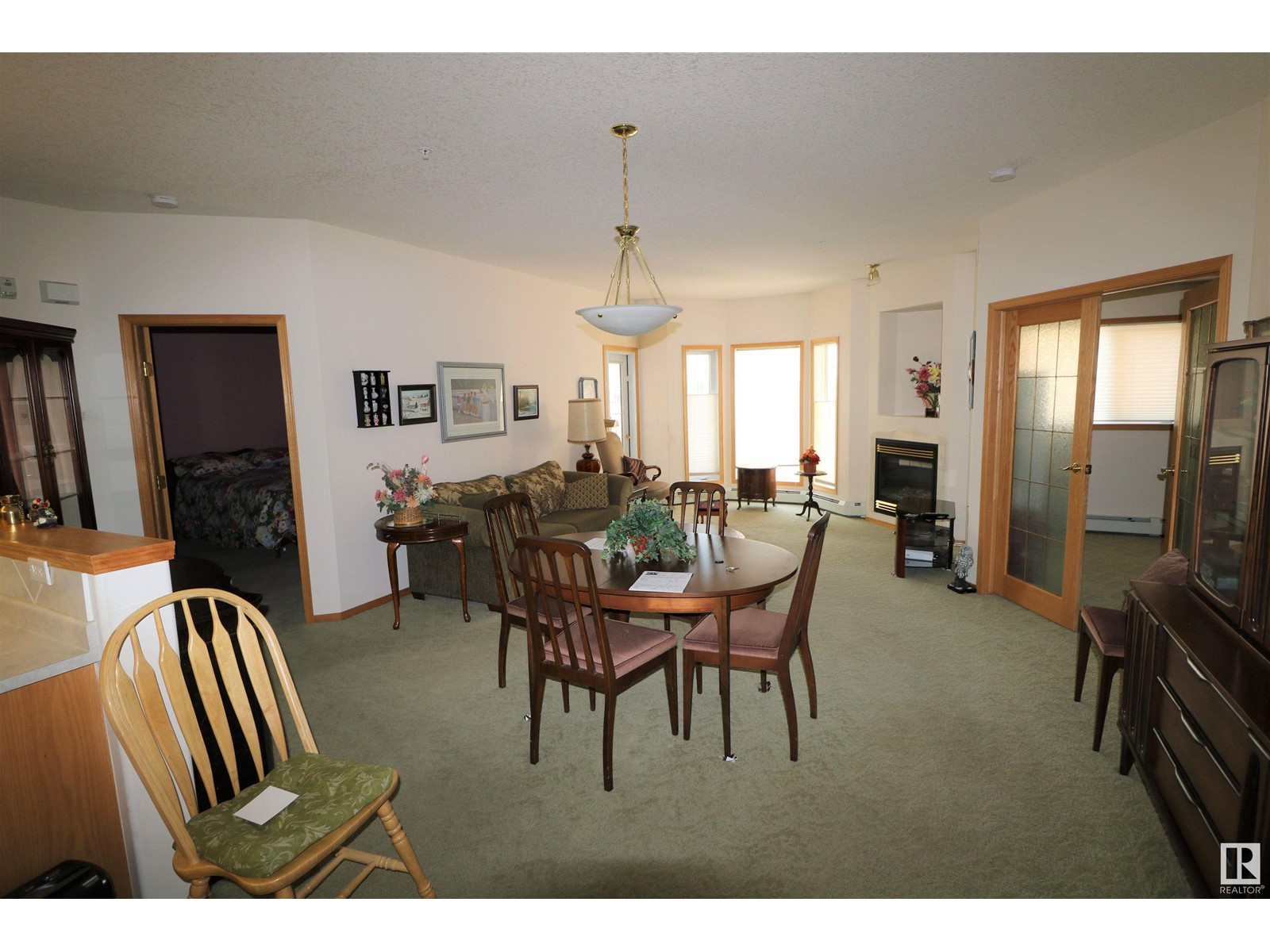 Sierras On The Lake, Active Adult (40+) Living at its Finest. Superb complex backing onto Beaumaris Lake with scenic walking trails offers affordable guest suites available for out of town guests. The building is incredibly well maintained. The unit offer open concept kitchen, roomy eating area and living room with gas fireplace, private balcony with BBQ hook up. Primary bedroom with large walk-in closet & 4 pce Ensuite plus a spacious Bedroom/Den and an additional 3 pce bath. Large storage room with in-suite laundry and Air Condition, Title Parking Stall + Locked Storage Unit.. Not many Building's offer as many amenities, including Pool, Hot Tub, Exercise room, Billiards/Game rooms, Library/Den, Large Social Room, Hobby Shop, and a Party room for those special events + Car Wash Bay in the Heated Underground Parade. Located Adjacent to Beaumaris Shopping Centre with all necessary amenities. Condo fees $555 include all utilities (heat, water and power. Doors away from Elevator & Stairs (id:22211)