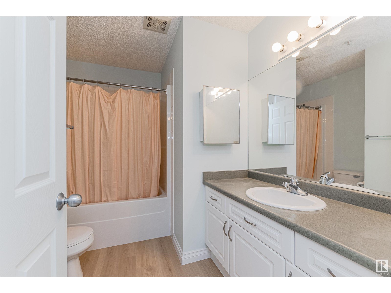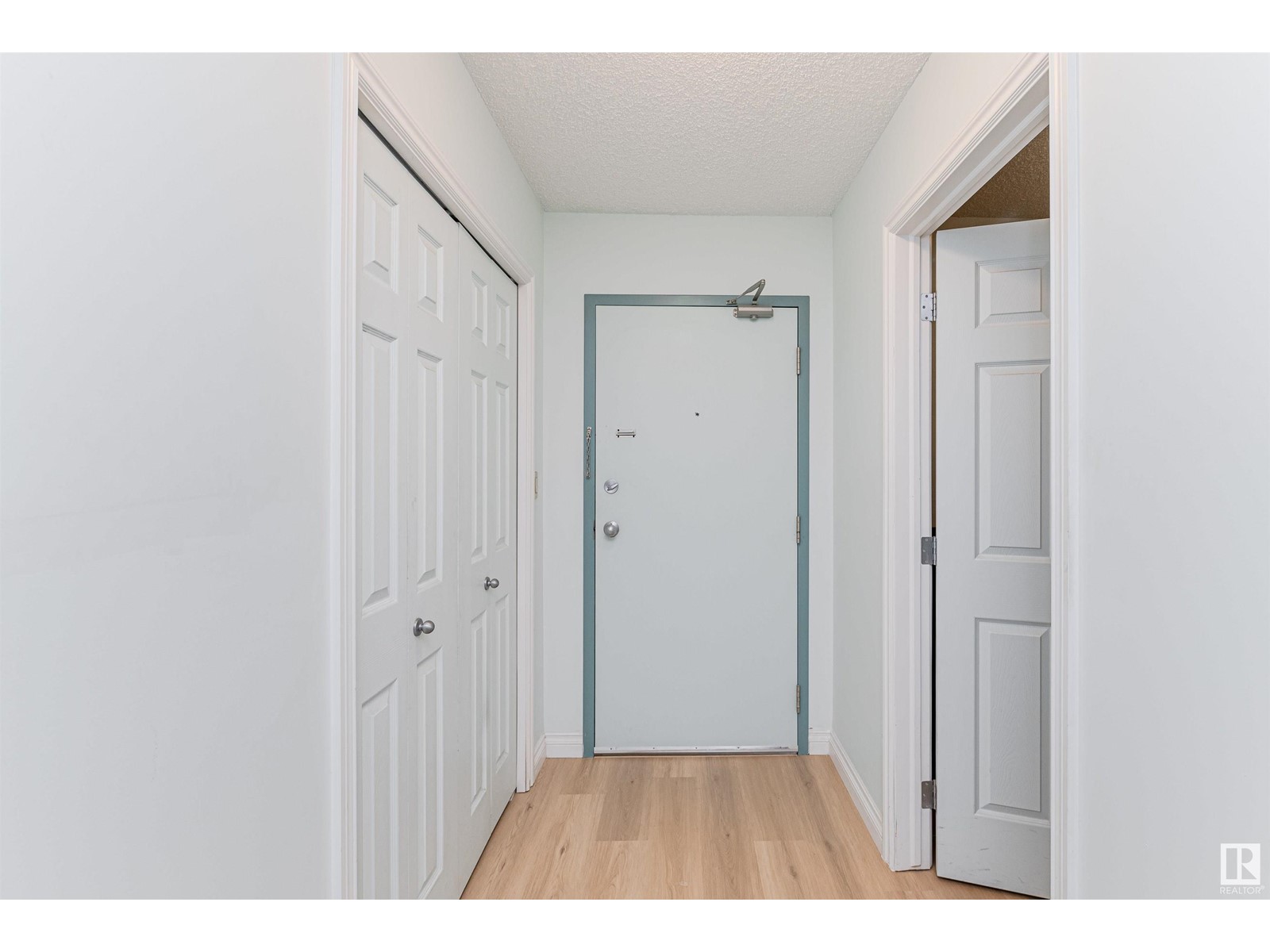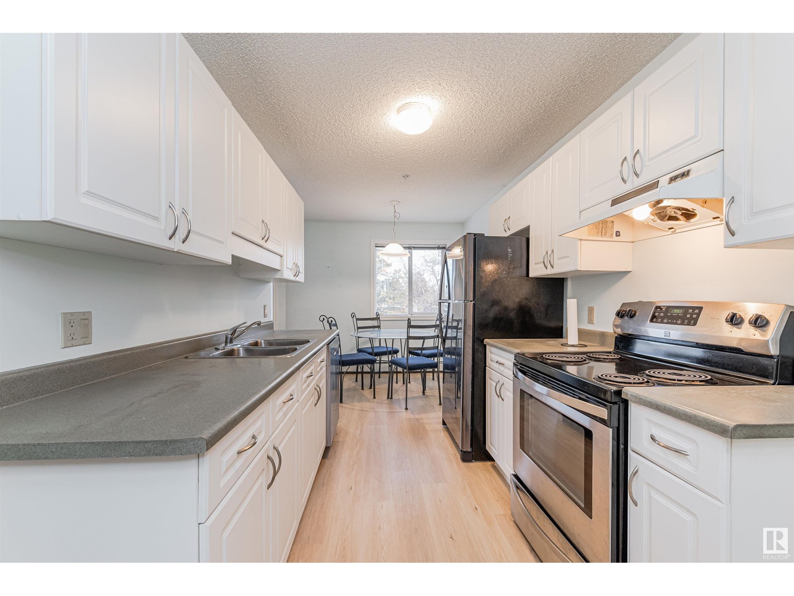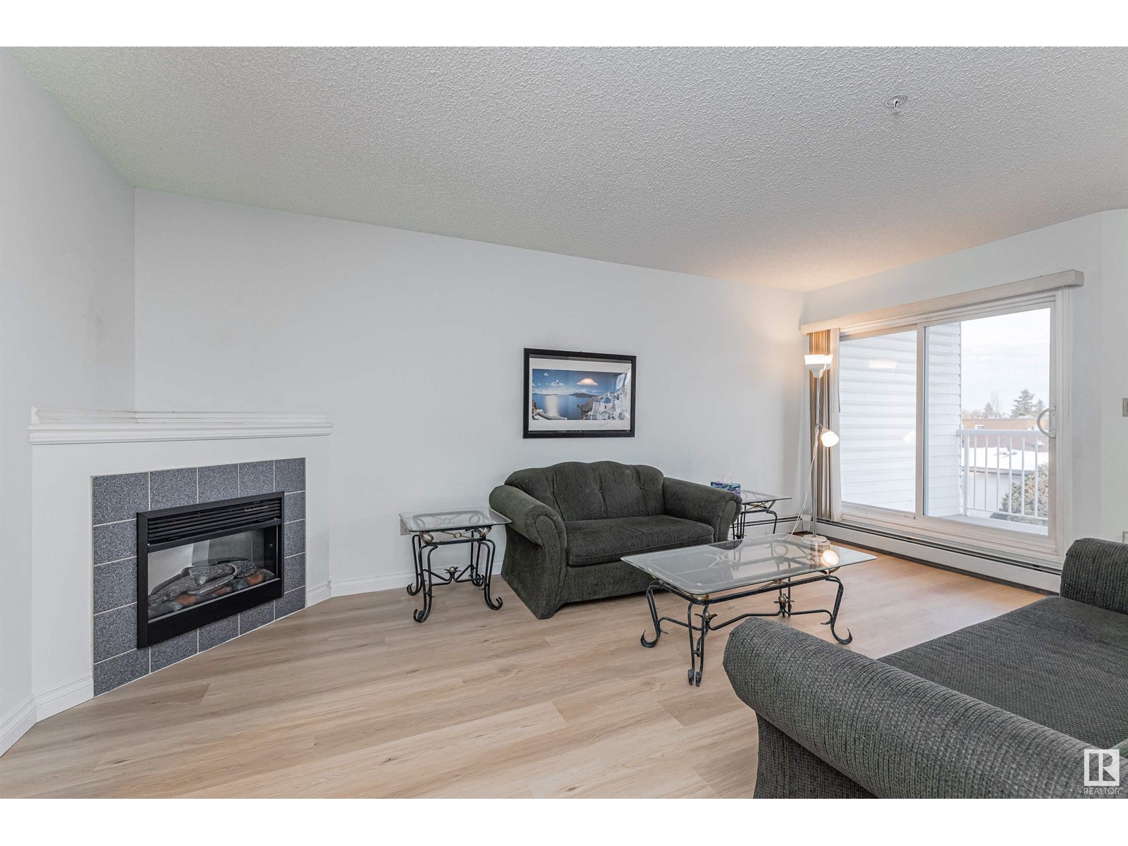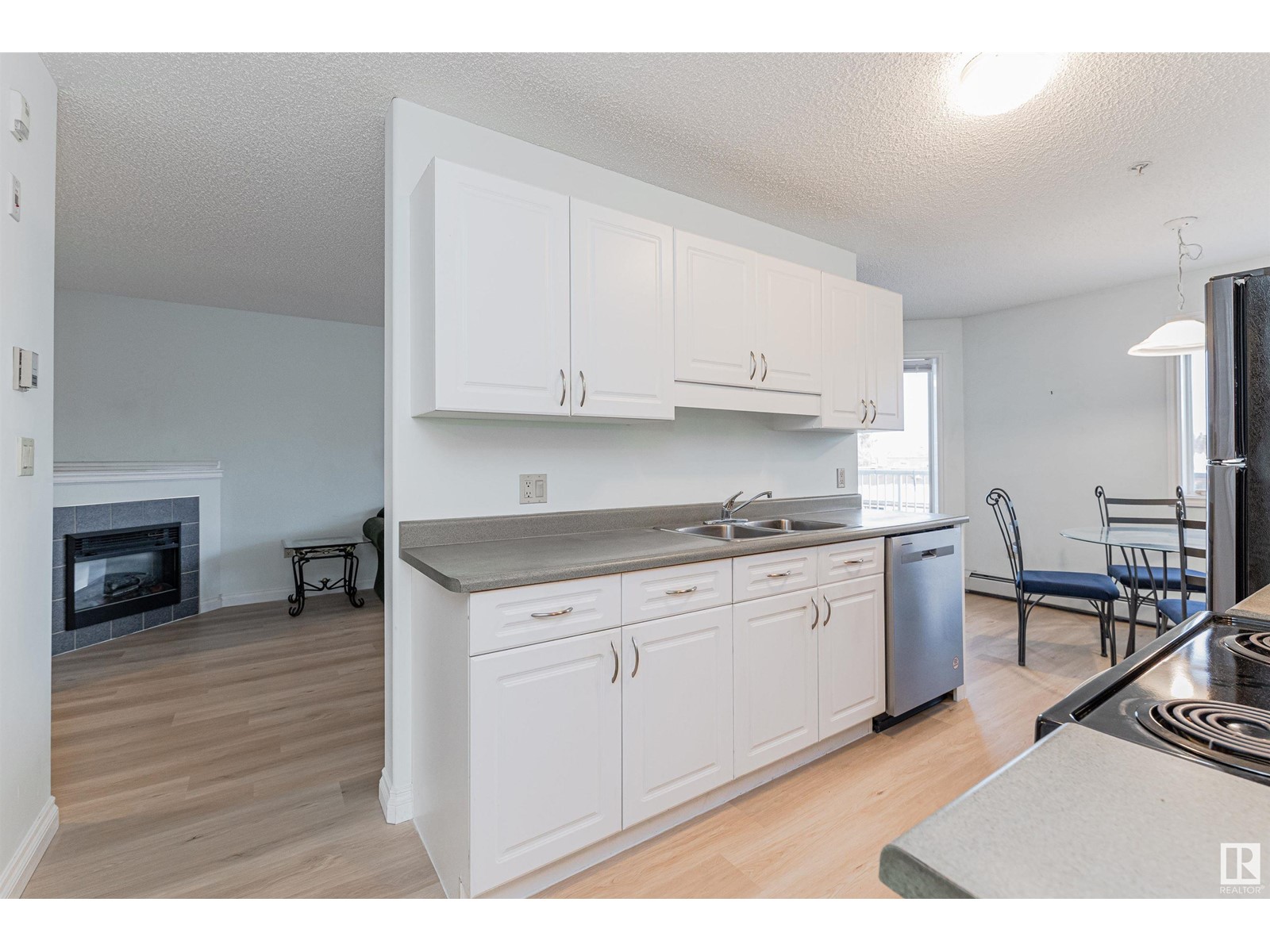 Corner Unit Condo with 2 bedrooms 2 full bath and 2 titled heated underground parking in Royal Garden of South Edmonton. This 904 sqft spacious home features in-suite laundry, in-suite storage and quiet large balcony. Great Convenient Location, walking distance to Southgate LRT, Harry High school, Richard Secord Elementary school, Westbrook School, Top junior high school, quick access to the Whitemud and many amenities just across the street. Brand new modern vinyl flooring through out accent with white kitchen and modern decor. Large bright living room appointed with cozy corner fireplace and direct access to northeast facing balcony. A 4 pc ensuite in master and 2nd bedroom with another 4 pc bath for roommates or guests. The building has elevator, secure bike storage in underground and Gym. (id:22211)
