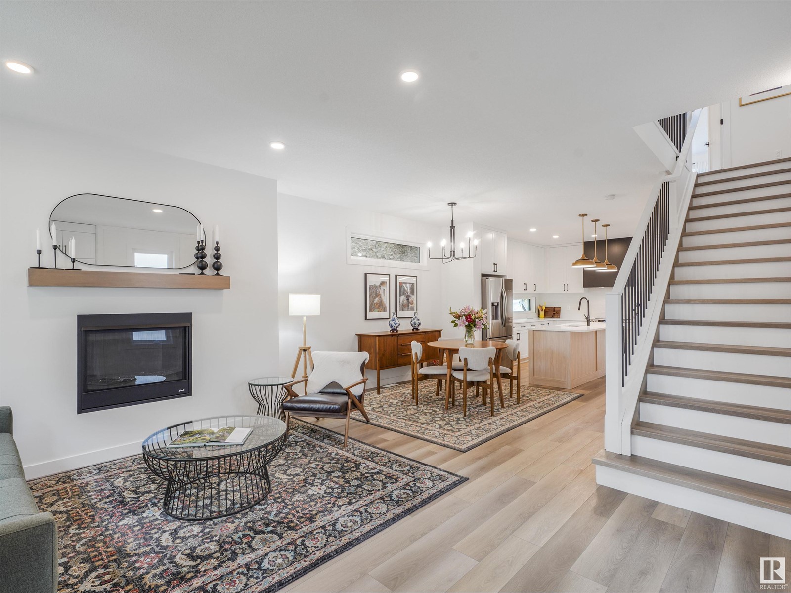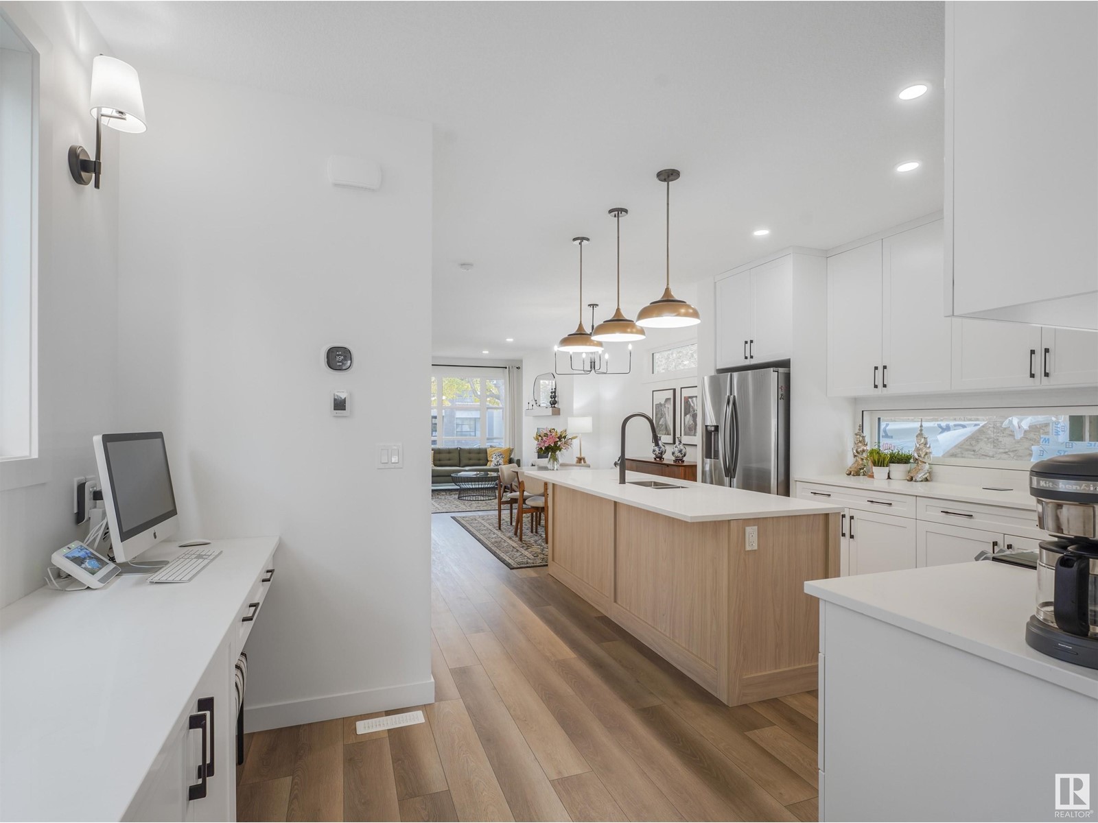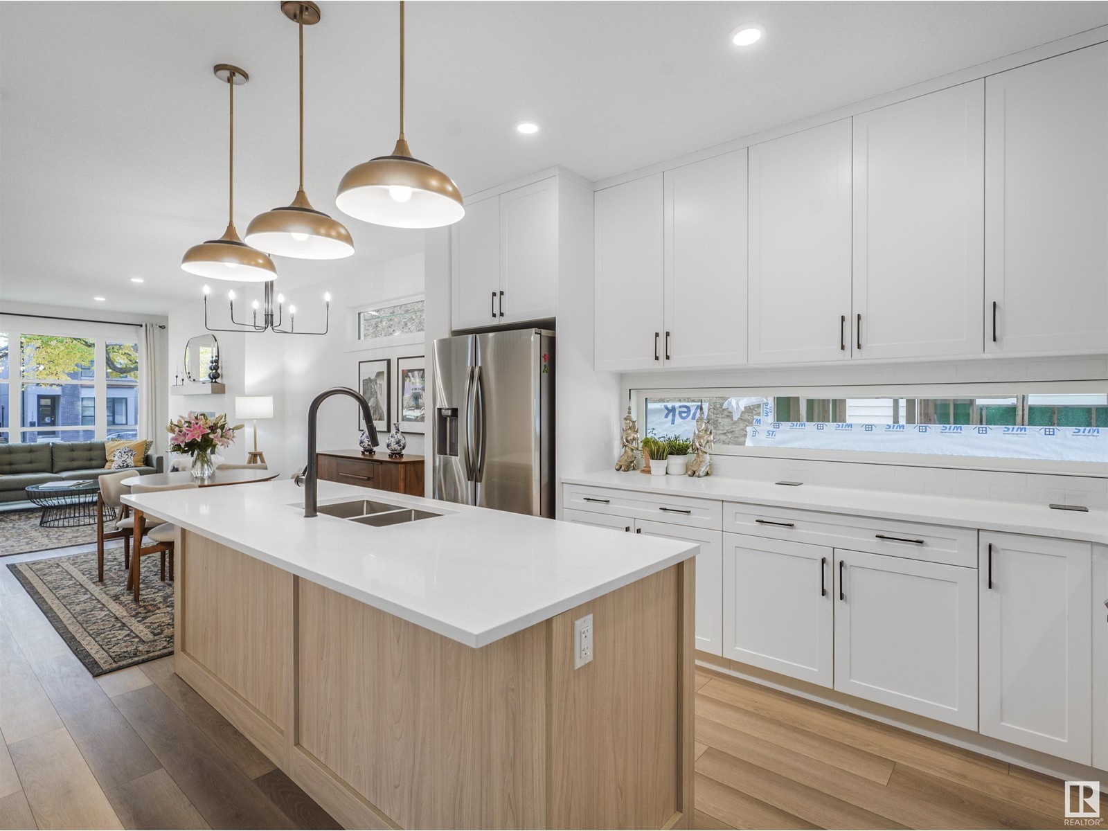 Steps from the park sits the meticulously crafted modern farm house. Upgraded from top to bottom, this home offers nearly 1800sqft, 3 bedrooms, 3 bathrooms , upper floor laundry, central AC, MAIN FLOOR DEN. This property features a generous sized living room equipped with a custom mantle and gas fireplace and the perfect dining area. The stunning kitchen features 2 tone cabinetry, transom window in the backsplash, centre island with stunning pendant lighting, comes fully equipped with stainless steel appliances and complimented with quartz countertops. Off the kitchen is additional custom cabinetry that includes a work area, and ample storage space. Through the metal barn door and into the den includes custom millwork making it the ideal home office. The upper level is where you will find 3 bedrooms, one of which is the stunning primary that features 3 closet areas and a beautiful 5pc ensuite. FEATURES: SEPARATE SIDE ENTRY FOR FUTURE SUITE, VAULTED CEILING, DBL GARAGE & REAR DECK! (id:22211)