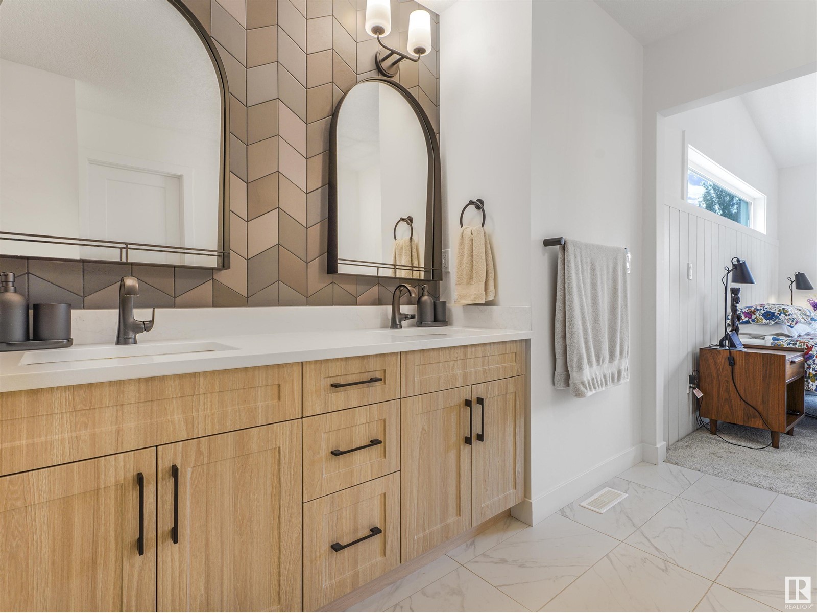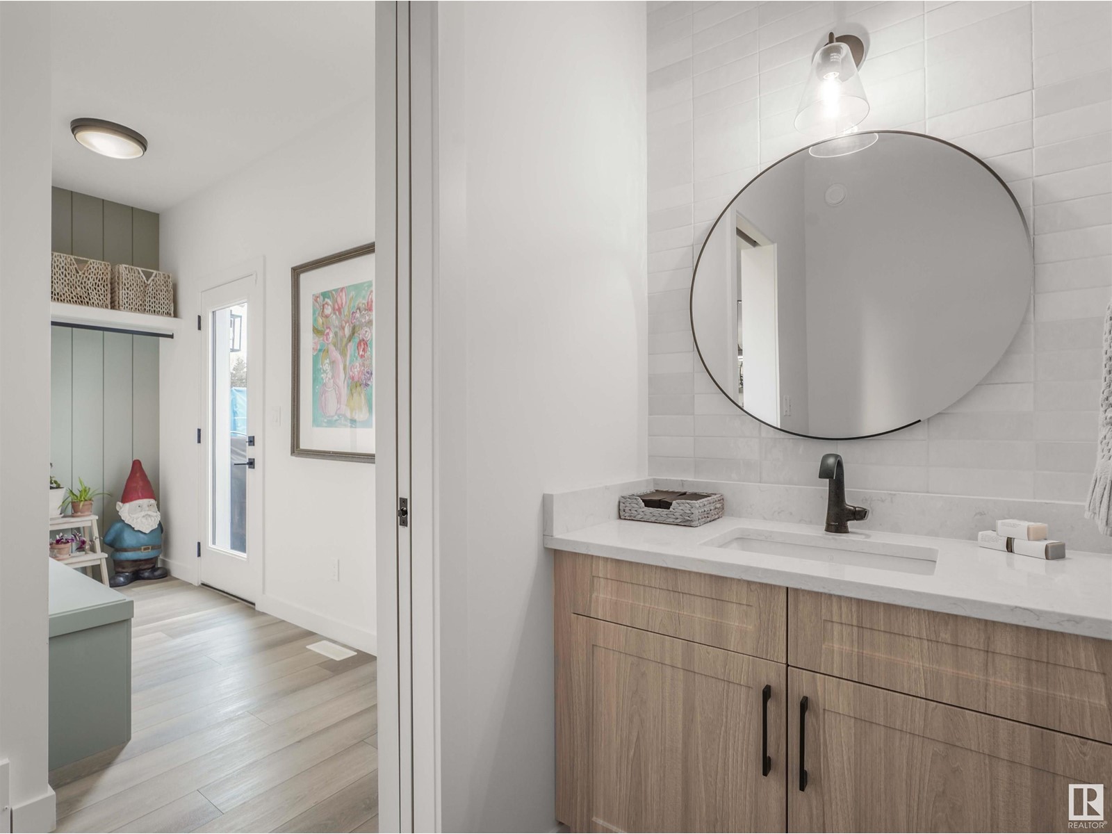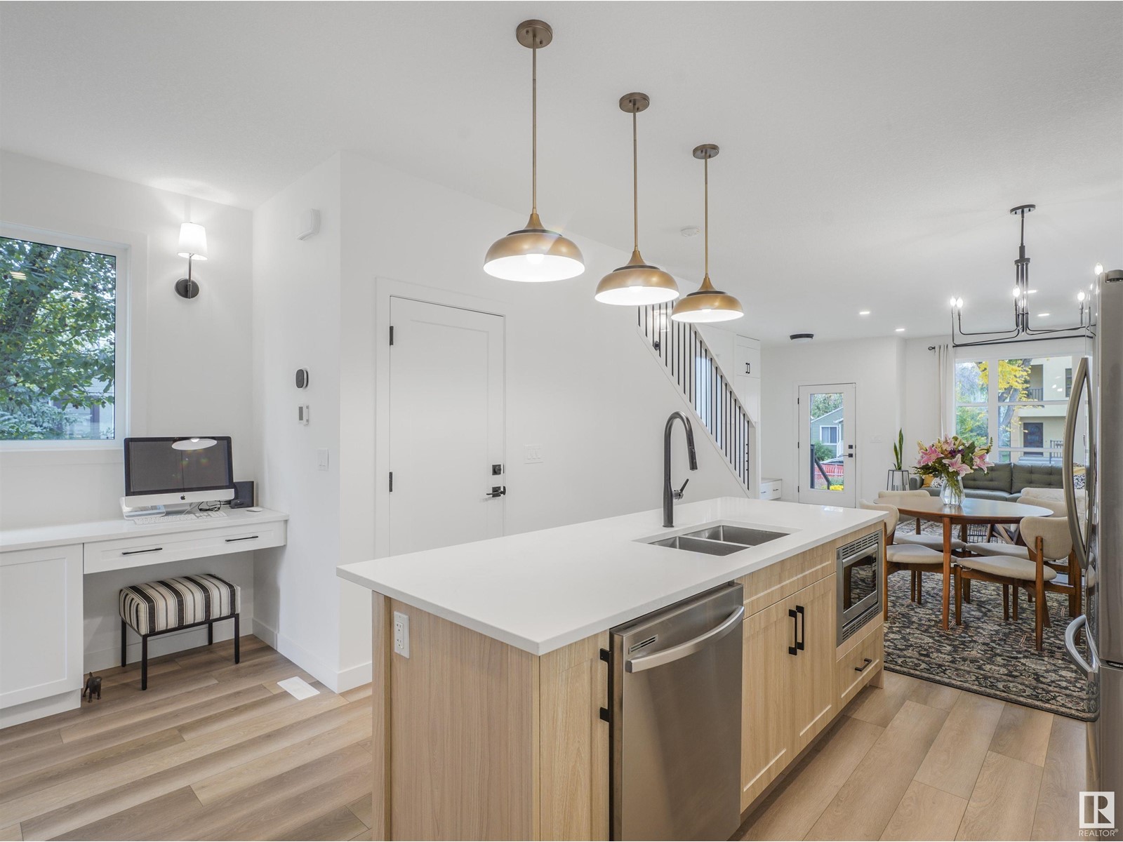 Steps from the park sits the meticulously crafted modern farm house. Upgraded from top to bottom, this home offers nearly 1800sqft, 3 bedrooms, 3 bathrooms , upper floor laundry, central AC, MAIN FLOOR DEN. This property features a generous sized living room equipped with a custom mantle and gas fireplace and the perfect dining area. The stunning kitchen features 2 tone cabinetry, transom window in the backsplash, centre island with stunning pendant lighting, comes fully equipped with stainless steel appliances and complimented with quartz countertops. Off the kitchen is additional custom cabinetry that includes a work area, and ample storage space. Through the metal barn door and into the den includes custom millwork making it the ideal home office. The upper level is where you will find 3 bedrooms, one of which is the stunning primary that features 3 closet areas and a beautiful 5pc ensuite. FEATURES: SEPARATE SIDE ENTRY FOR FUTURE SUITE, VAULTED CEILING, DBL GARAGE & REAR DECK! (id:22211)