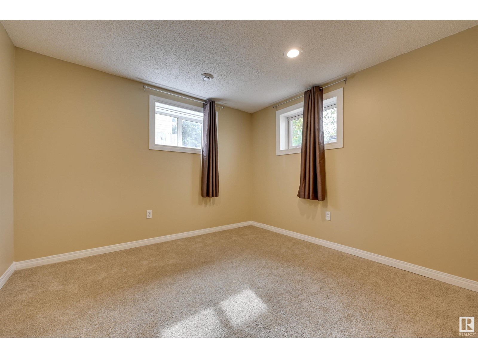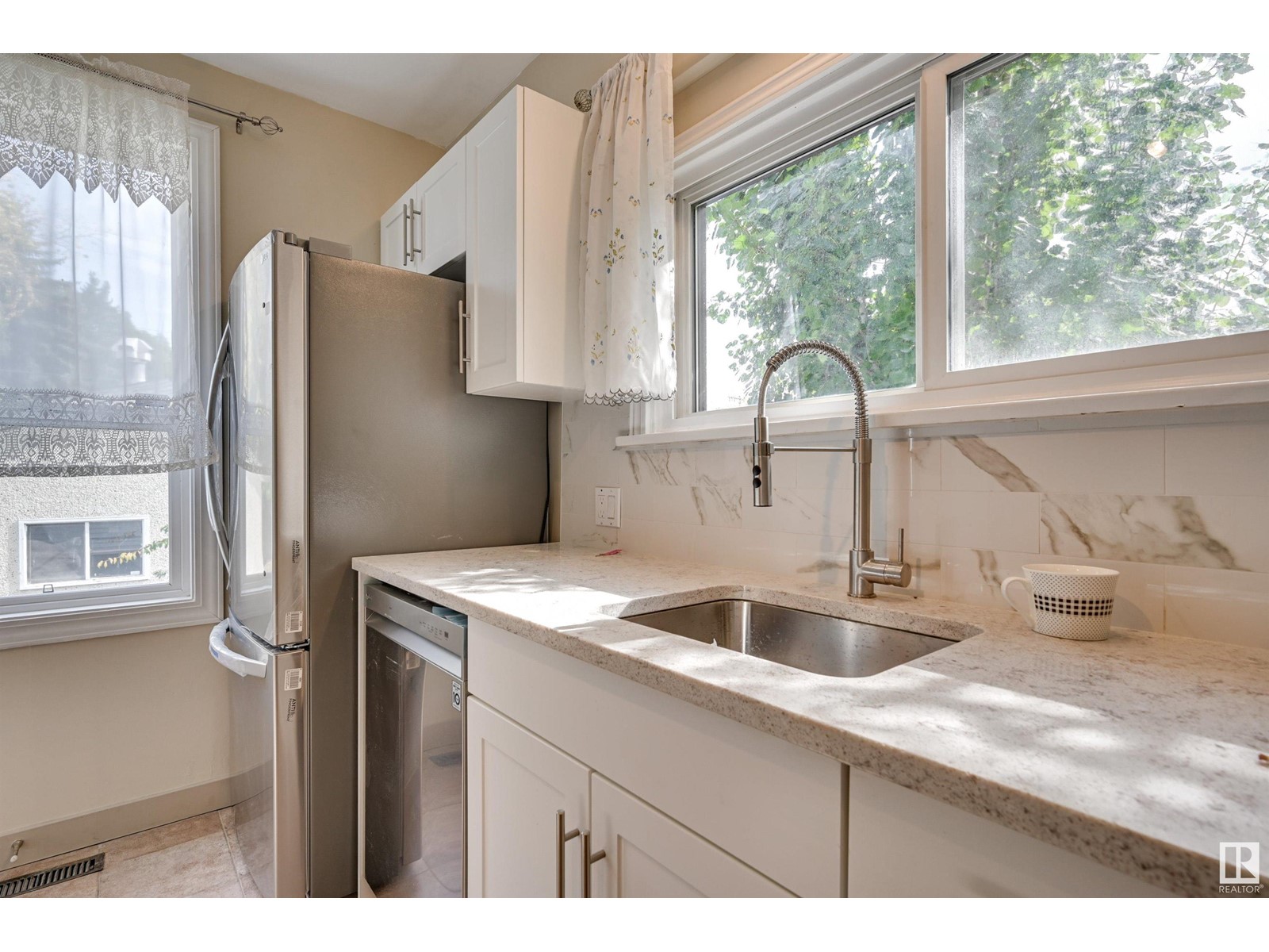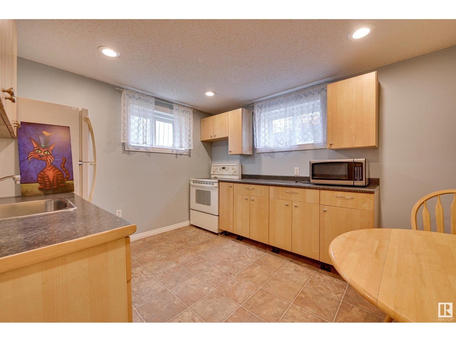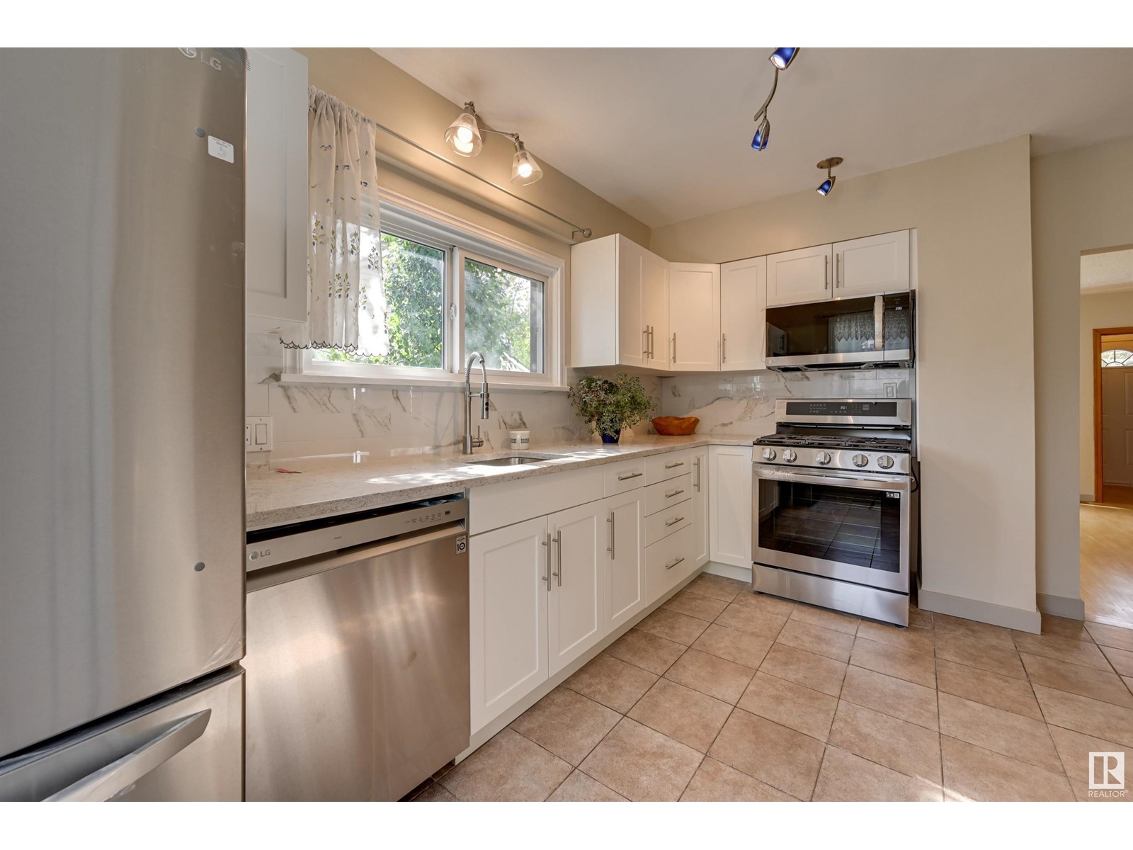 Perfect starter home in a great location! For those looking to get into the market this charming bungalow offers incredible value. The highlight is the fully renovated kitchen boasting upgraded cabinets, quartz counters and all new stainless steel appliances. The 2 upstairs bedrooms are roomy and the bathroom vanity is new. Downstairs has its own entrance and you'll find a second kitchen, bedroom and bathroom. This space has big windows to let in lots of natural light and has been updated with new carpets/paint. Its perfect for extended family or even roommates. Enjoy relaxing in the large backyard and store all of your things in oversized double garage that has brand new doors! The property is located in a quiet, central location near parks, schools, shopping and restaurants with quick access to Yellowhead & Wayne Gretzky Drive. With so many updates and a great location this cozy home is a solid investment and a great choice! (id:22211)