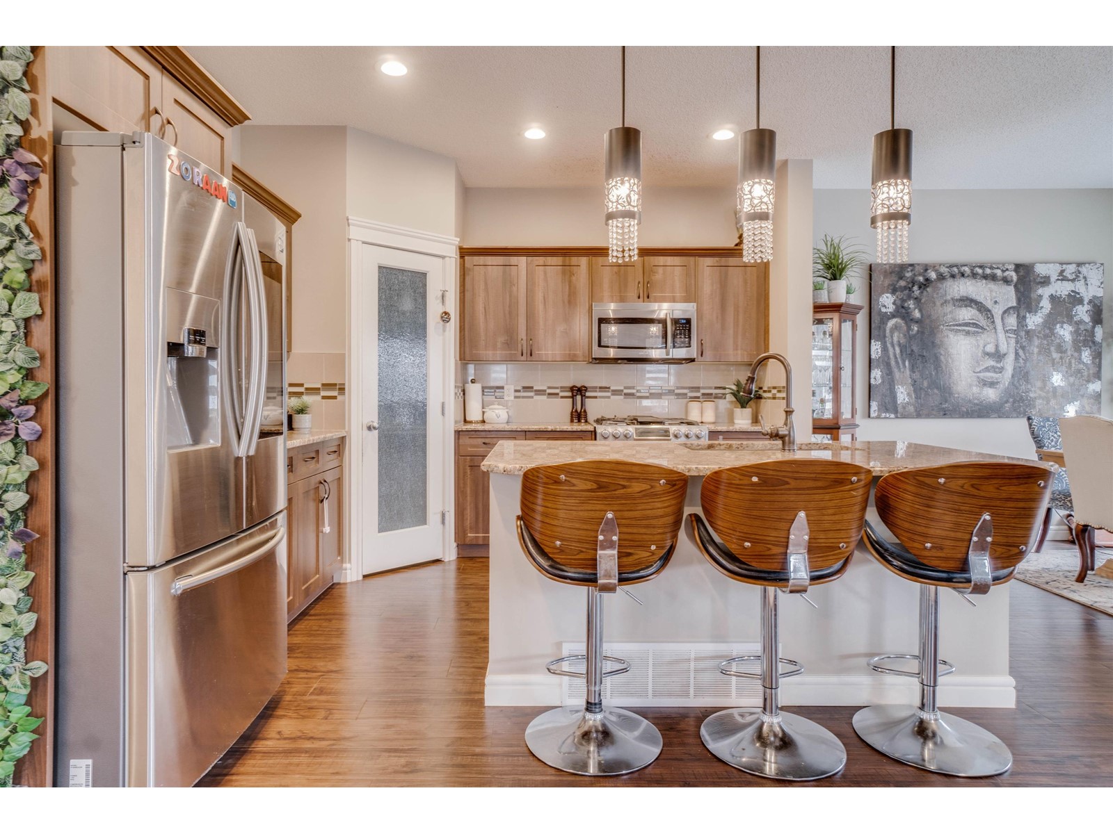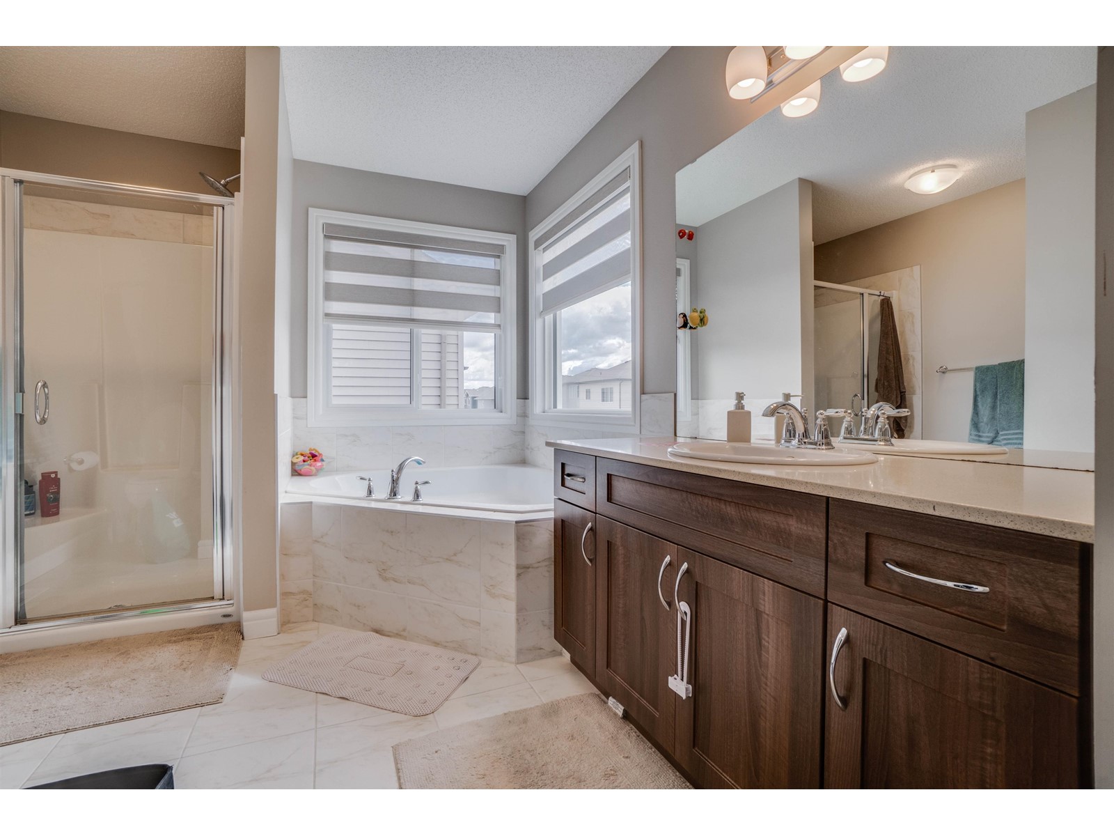 Welcome to TAMARACK! This immaculate 2-storey home boasts approx. 1900 sqft of living space with double attached garage, holds 3 large BEDROOMS, 2.5 baths, and a Large Bonus room! You are welcomed in to a spacious foyer leading to open floor concept with spacious living room featuring 9ft ceilings & large windows. The modern kitchen offers ample two tier cabinetry, stainless steel appliances, granite counter tops with a grand island and corner pantry. Landscaped yard and large deck accessible through the dining area. 2 -pce bath & large mud room with laundry completes this level. Upstairs holds the HUGE bonus room with vaulted ceilings and large windows bringing in a lot of natural light. The spacious master bedroom holds beautiful 4-pce ensuite & walk in closet. 2 additional bedrooms with additional 4 pce bath complete the upper level. Partially finished Basement with SEPARATE ENTRANCE is unspoiled and awaiting your personal touch. North facing Corner lot with ample parking, Close to all major amenities! (id:22211)