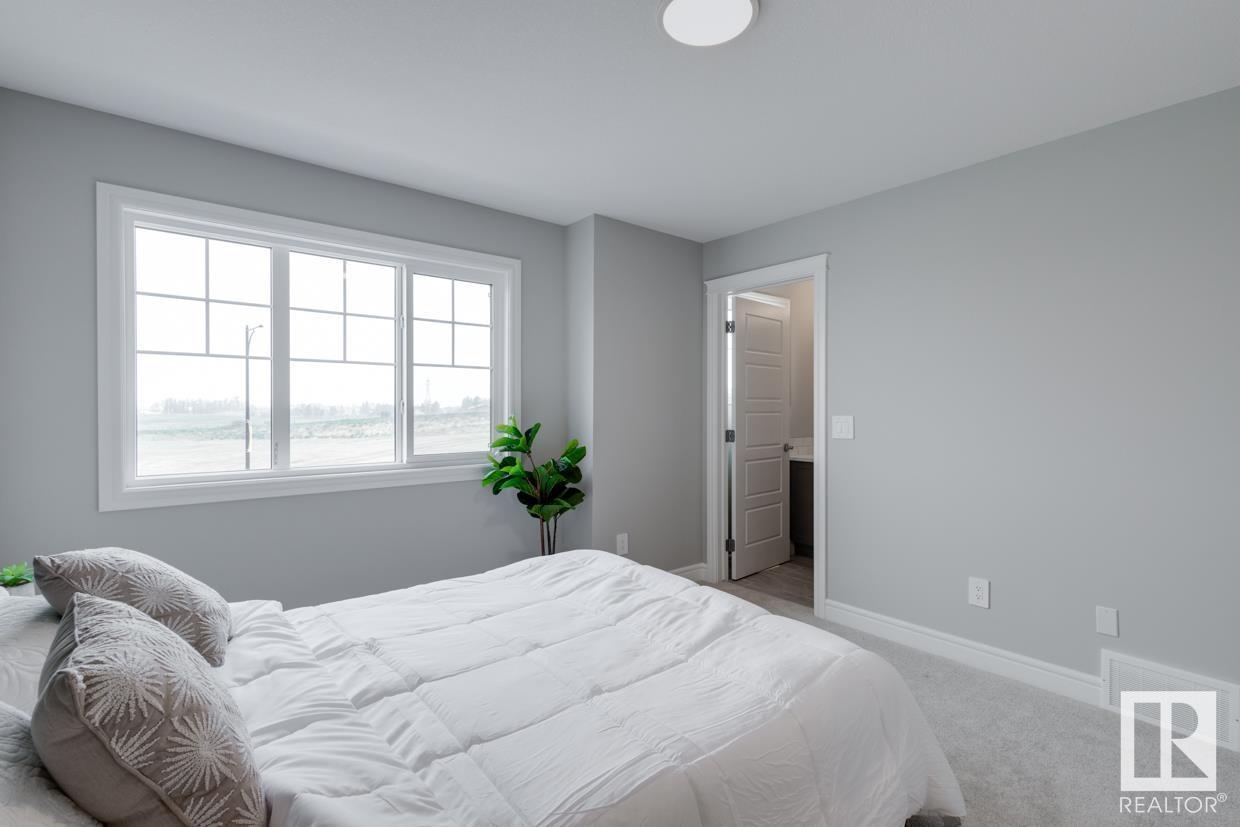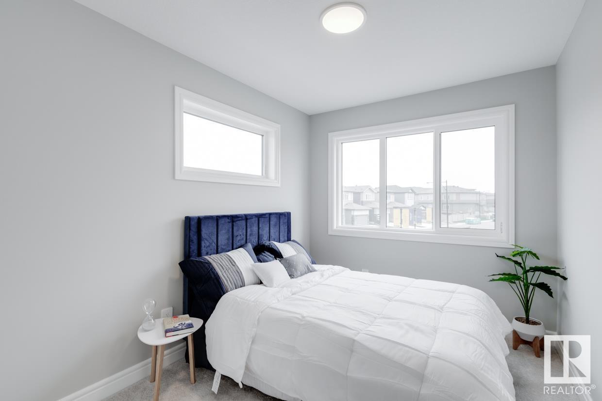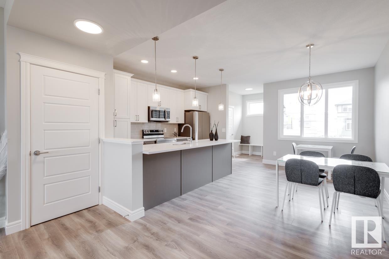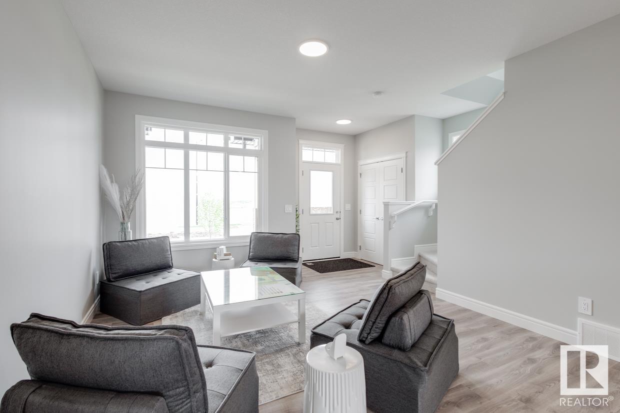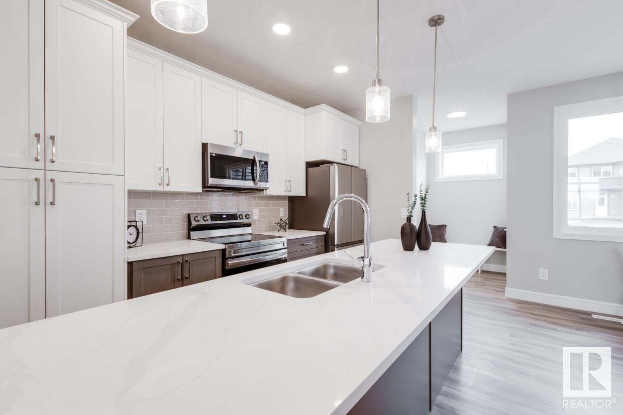 END UNIT! SIDE ENTRY. NO CONDO FEES! Experience stylish living in Keswick. This beautiful 2 story townhouse offers modern finishes. The main floor features 9' ceilings and a convenient half bath, perfect for guests. The heart of the home is the beautifully designed kitchen, featuring upgraded 42 cabinets and quartz countertops. Upstairs, you'll find a laundry room, full 4-piece bathroom, 2 large bedrooms, and a master with a walk-in closet and luxurious ensuite. Enjoy the comfort and efficiency of this home with its double detached garage, $3,000 appliance allowance, unfinished basement with painted floor, high-efficiency furnace, and triple-pane windows. This townhouse has NO CONDO FEES & is FULLY LANDSCAPED. Plus, the separate side entrance and legal suite rough ins offer the potential for added income or the perfect space for extended family. Don't miss this incredible opportunity to own a piece of Keswick. Photos are of the showhome. Appliances NOT included. HOA TBD. (id:22211)