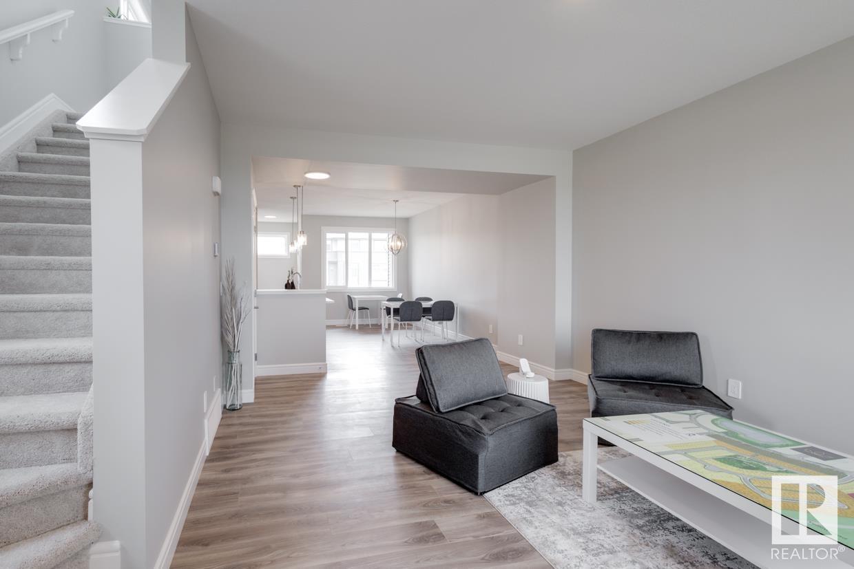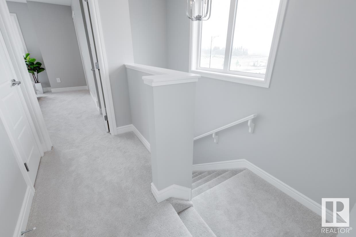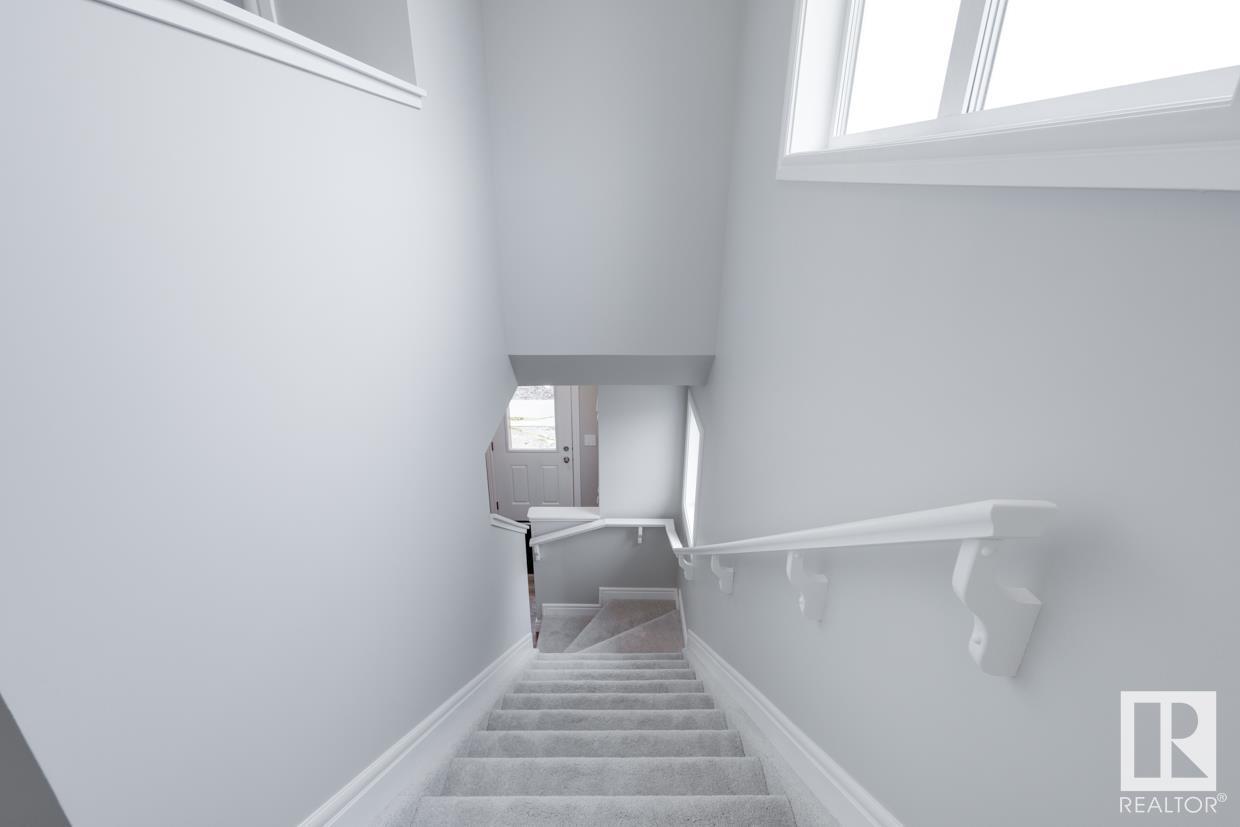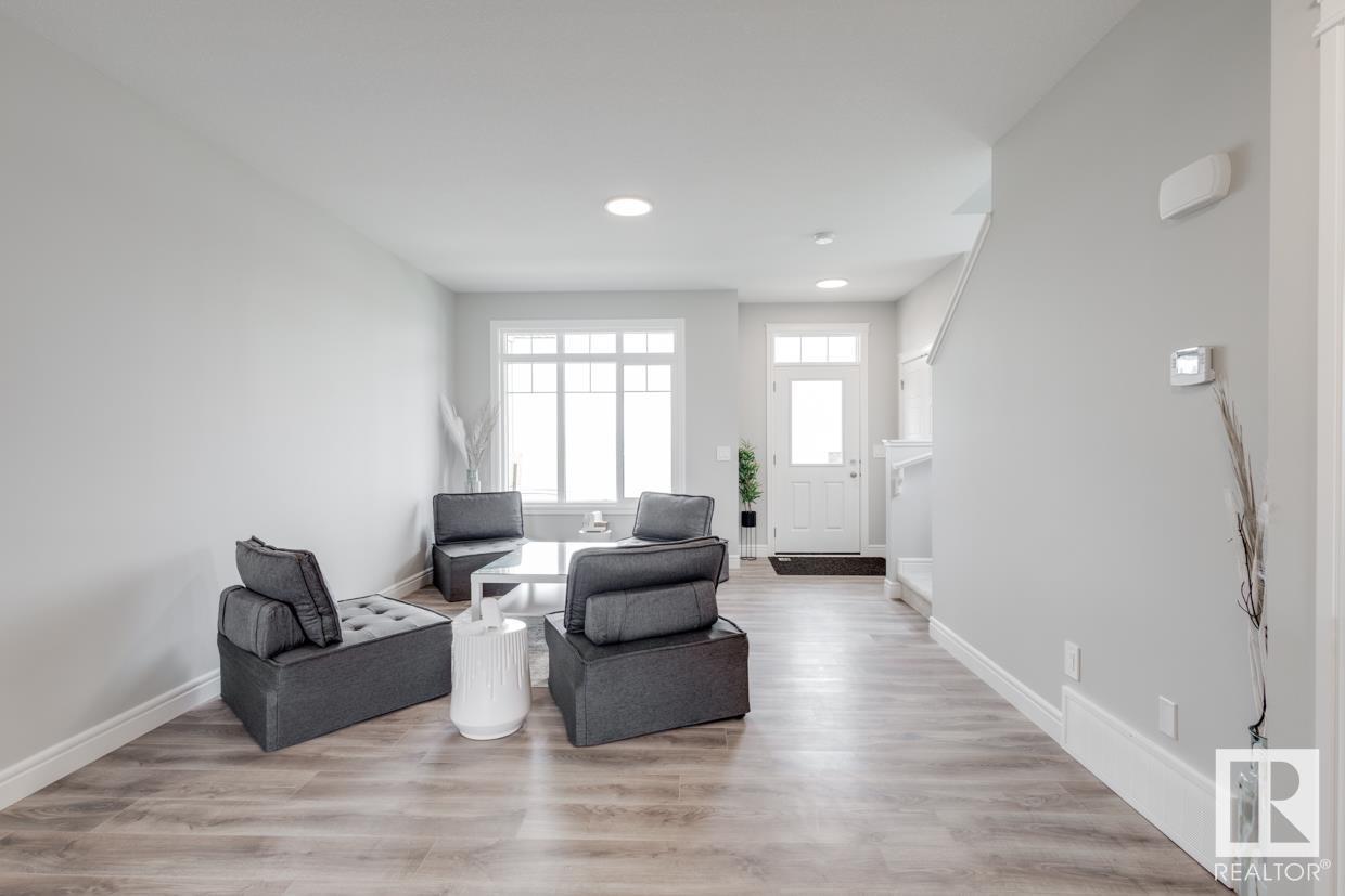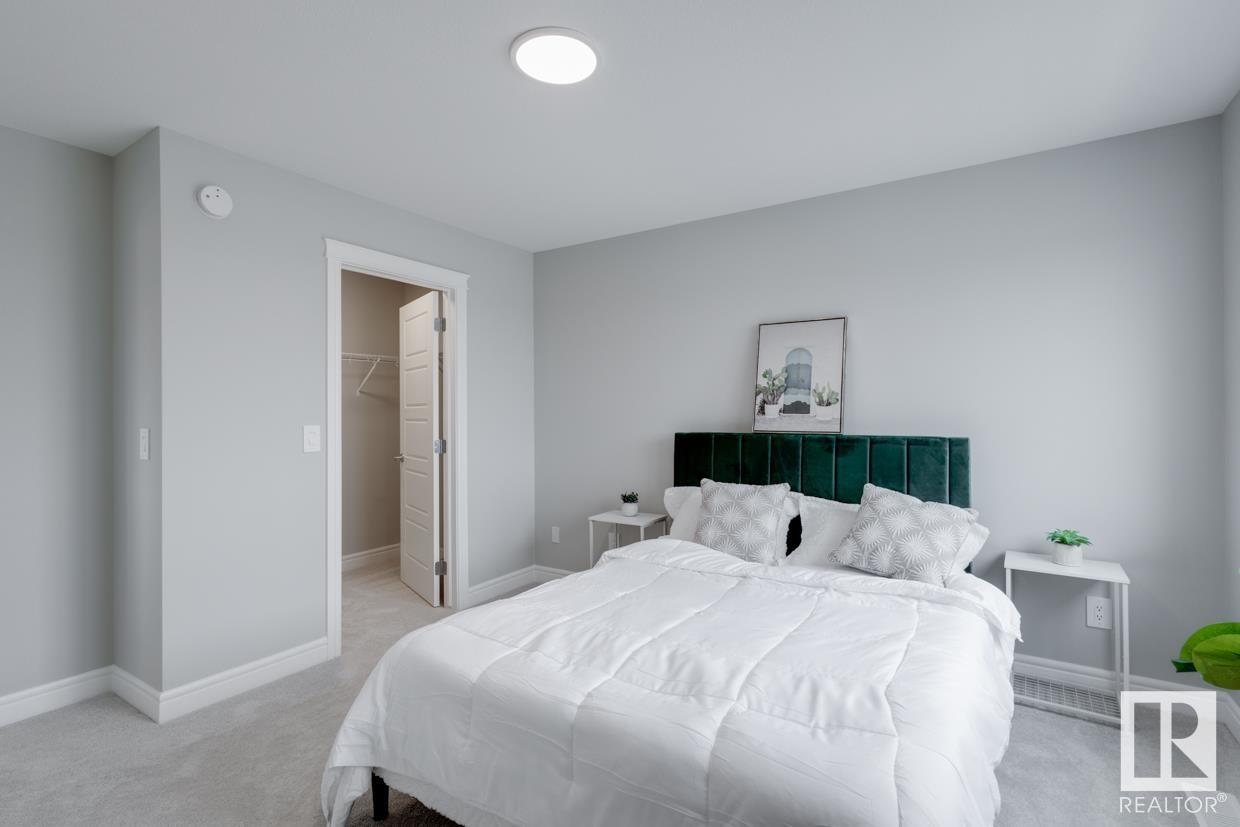 END UNIT! SIDE ENTRY. NO CONDO FEES! Experience stylish living in Keswick. This beautiful 2 story townhouse offers modern finishes. The main floor features 9' ceilings and a convenient half bath, perfect for guests. The heart of the home is the beautifully designed kitchen, featuring upgraded 42 cabinets and quartz countertops. Upstairs, you'll find a laundry room, full 4-piece bathroom, 2 large bedrooms, and a master with a walk-in closet and luxurious ensuite. Enjoy the comfort and efficiency of this home with its double detached garage, $3,000 appliance allowance, unfinished basement with painted floor, high-efficiency furnace, and triple-pane windows. This townhouse has NO CONDO FEES & is FULLY LANDSCAPED. Plus, the separate side entrance and legal suite rough ins offer the potential for added income or the perfect space for extended family. Don't miss this incredible opportunity to own a piece of Keswick. Photos are of the showhome. Appliances NOT included. HOA TBD. (id:22211)