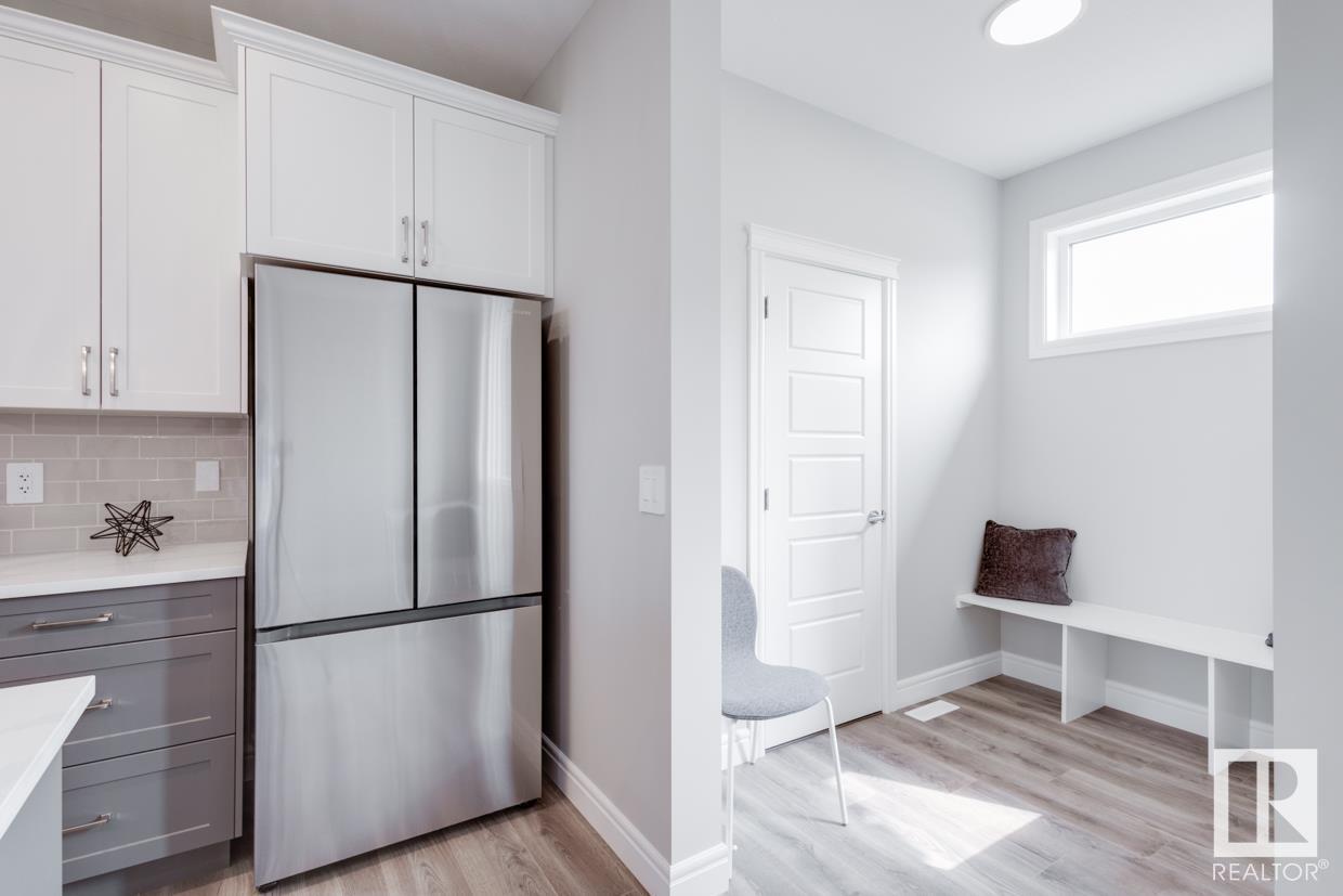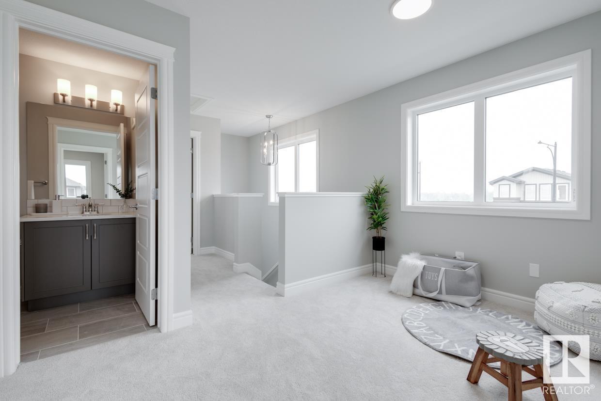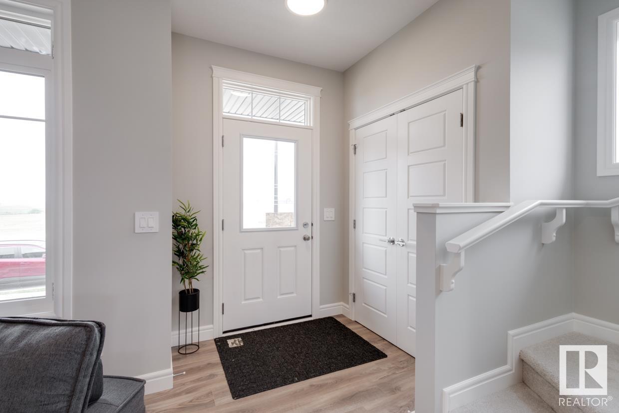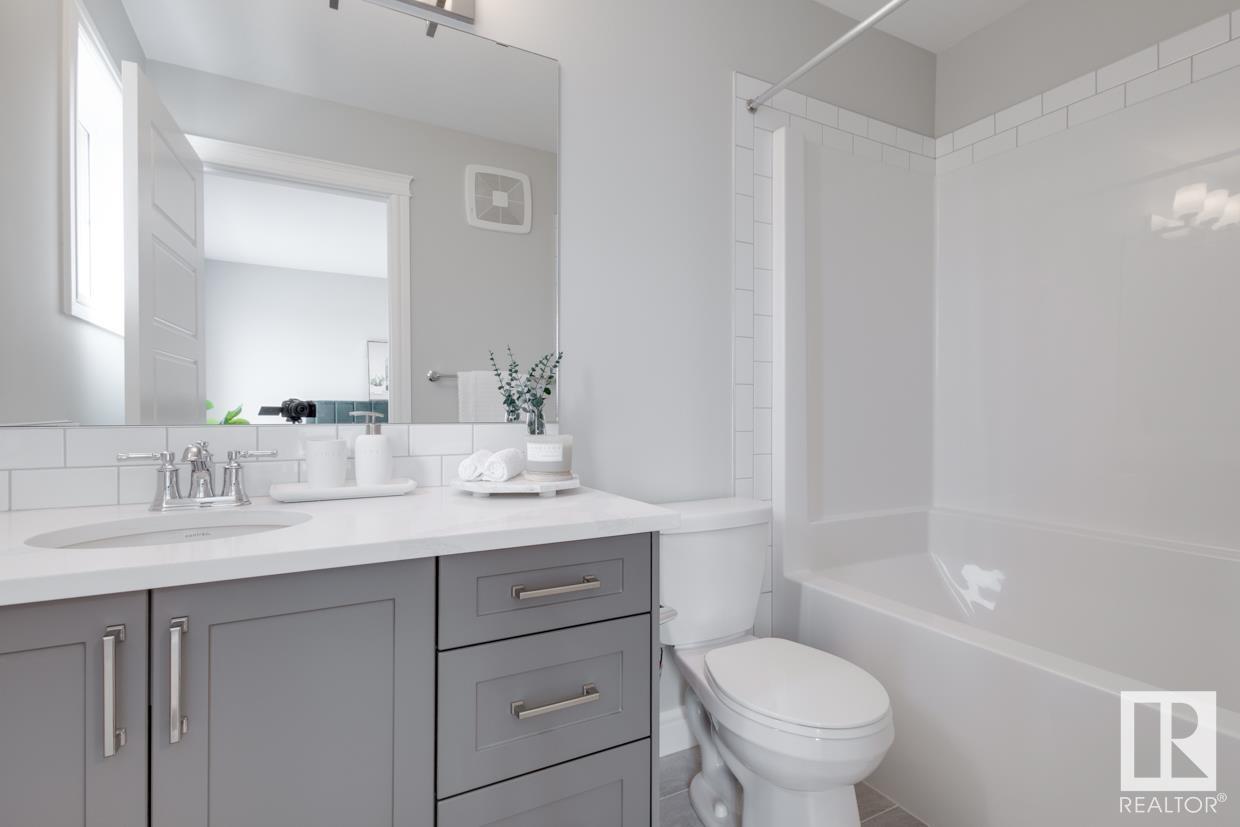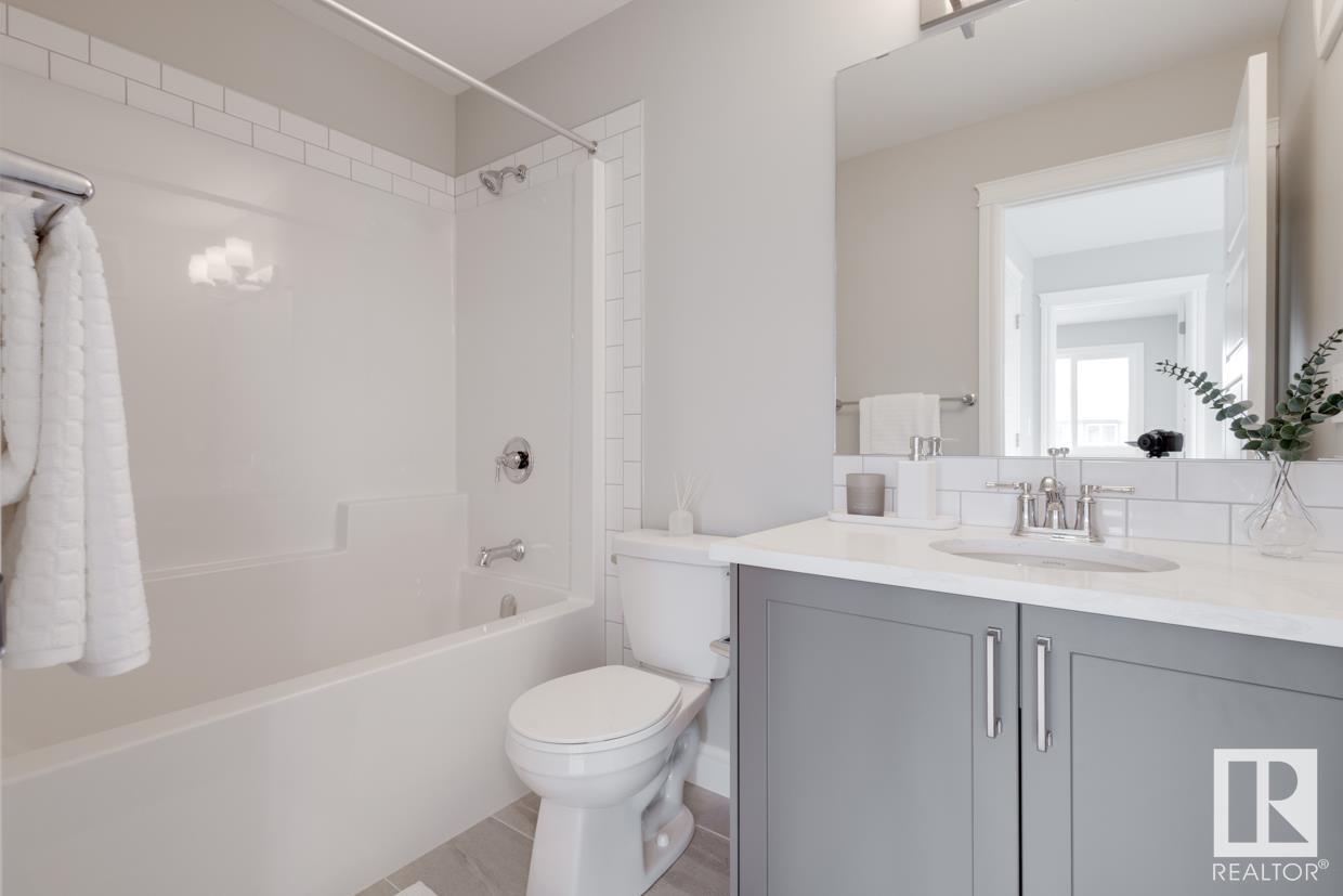 END UNIT! SIDE ENTRY. NO CONDO FEES! Experience stylish living in Keswick. This beautiful 2 story townhouse offers modern finishes. The main floor features 9' ceilings and a convenient half bath, perfect for guests. The heart of the home is the beautifully designed kitchen, featuring upgraded 42 cabinets and quartz countertops. Upstairs, you'll find a laundry room, full 4-piece bathroom, 2 large bedrooms, and a master with a walk-in closet and luxurious ensuite. Enjoy the comfort and efficiency of this home with its double detached garage, $3,000 appliance allowance, unfinished basement with painted floor, high-efficiency furnace, and triple-pane windows. This townhouse has NO CONDO FEES & is FULLY LANDSCAPED. Plus, the separate side entrance and legal suite rough ins offer the potential for added income or the perfect space for extended family. Don't miss this incredible opportunity to own a piece of Keswick. Photos are of the showhome. Appliances NOT included. HOA TBD. (id:22211)
