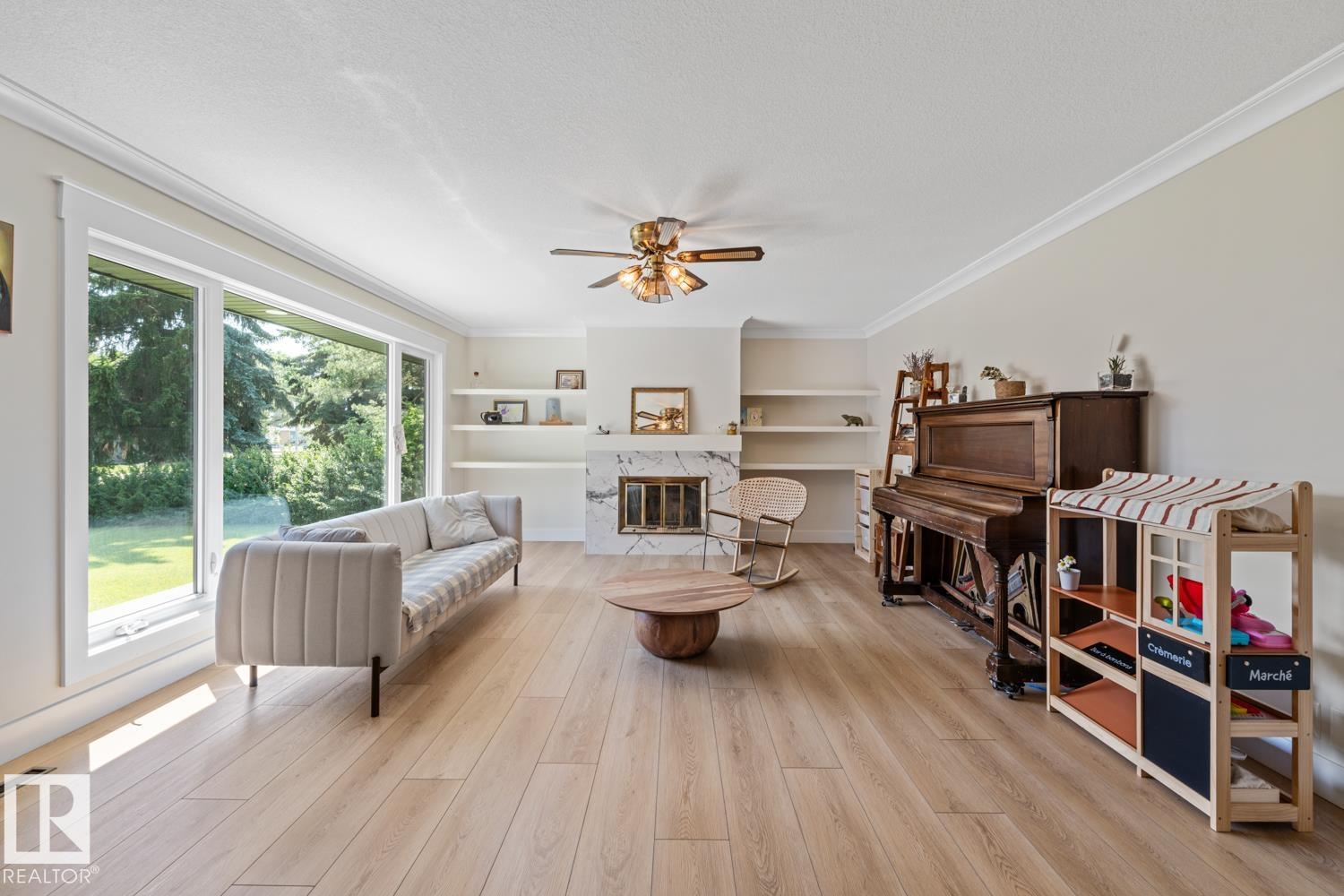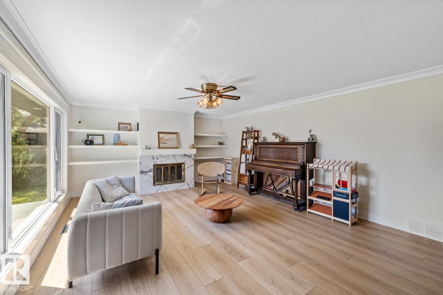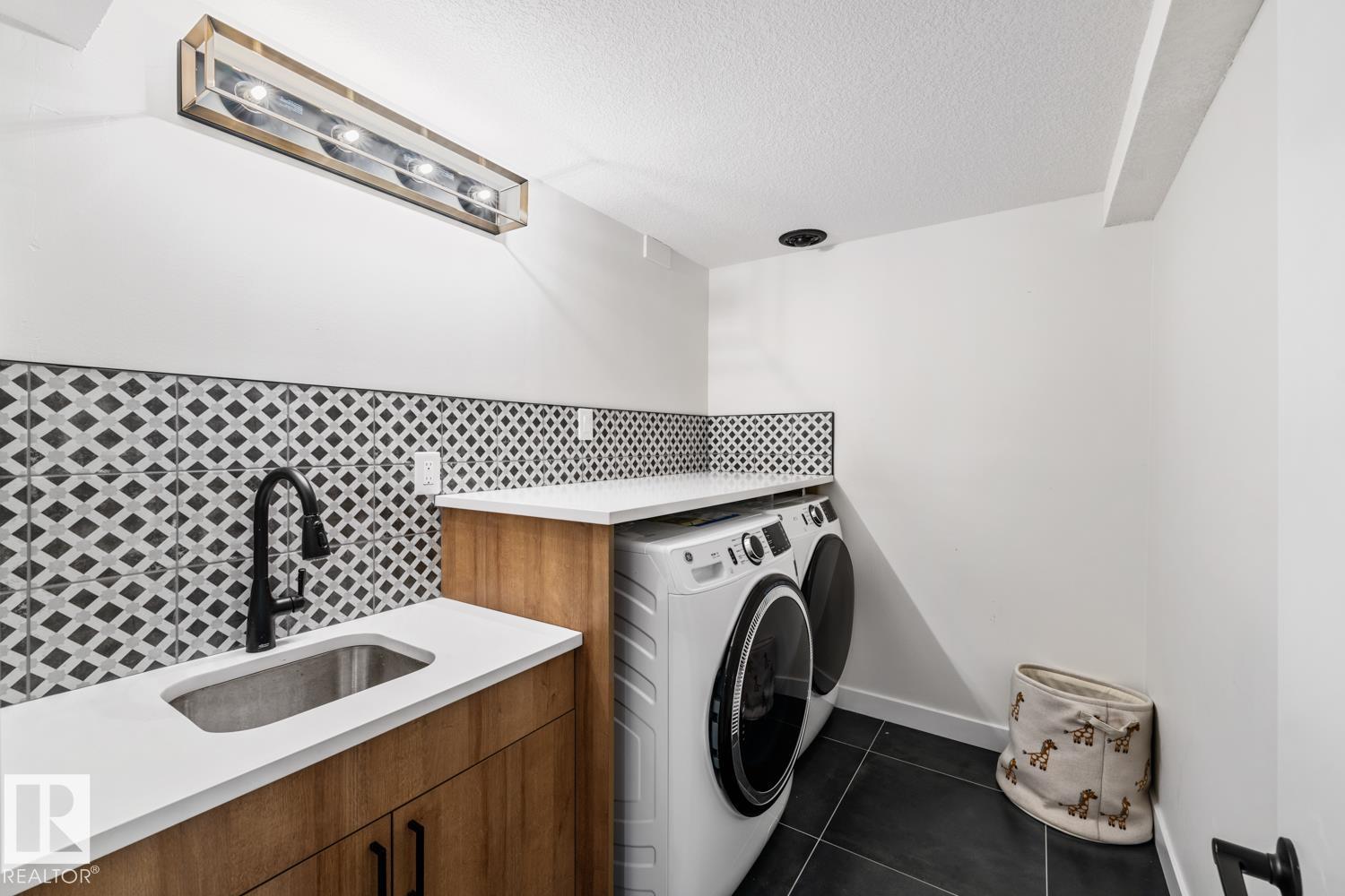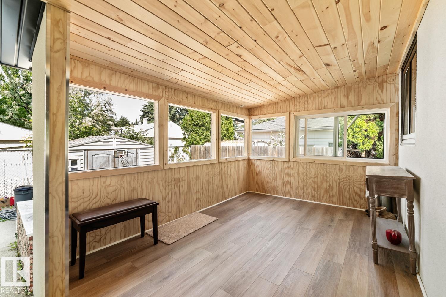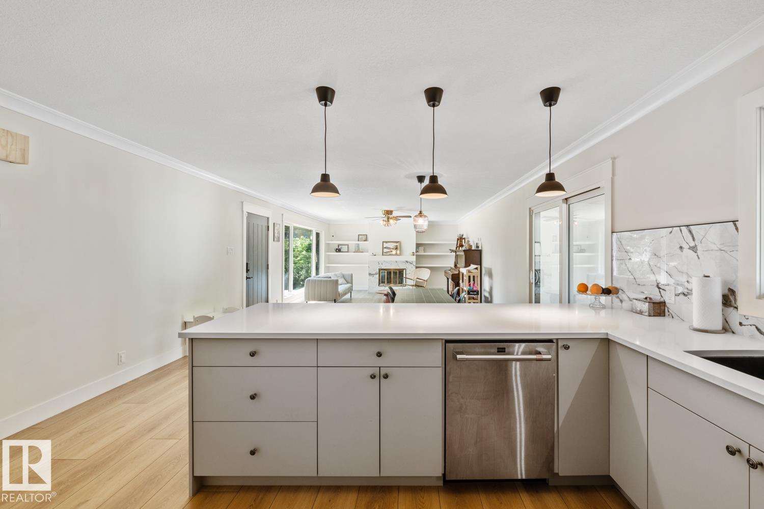 This charming, fully renovated bungalow in the heart of Laurier Heights offers over 2300 sqft of developed living space. Upstairs has a bright open concept with a modern kitchen perfect for family get-togethers, featuring stainless steel appliances and large peninsula. There are two spacious bedrooms and 5 piece bathroom. The fully finished basement has a large rec room, 2 additional bedrooms, laundry and second full bathroom. The extensive renovations include: new flooring, new windows, new roof, newer hot water tank and new exterior stucco. Lastly there is a double attached garage w/ new electrical and drywall, A/C and bright sunroom off the kitchen overlooking the backyard. Located in one of Edmonton's best neighborhoods, close to great schools and a walk away from Laurier Heights playground. This home is ready to welcome its new owners!
