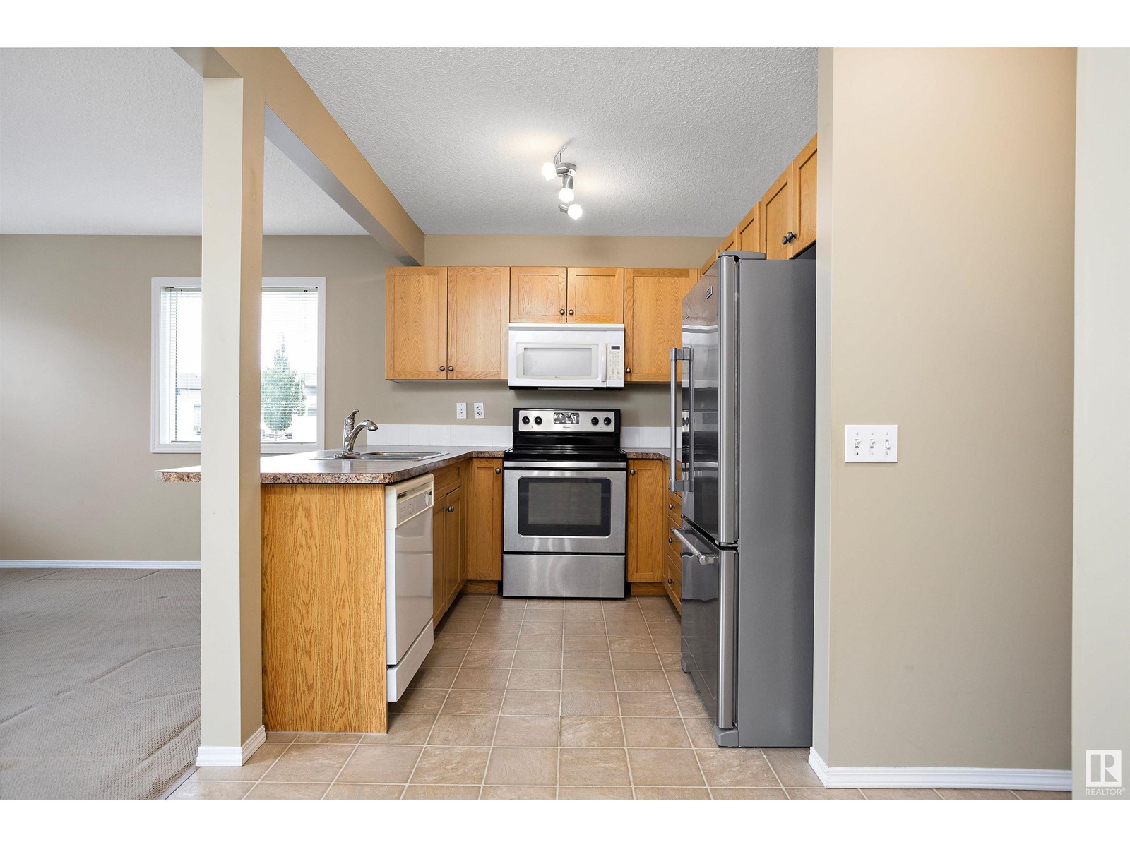 This property is pre-appraised and inspected; both available for you. This home is guaranteed vacant and clean for your move in date - visit REALTOR site for details. Located in family-friendly Ellerslie, this clean, well-maintained 2 bed, 2-1/2 bath end-unit offers 1096 sq.ft. of living space with an excellent layout. Open-concept main level features 2 pc bath, sunny living room, dining area with patio access and modern kitchen w/upgraded appliances and plenty of countertop and storage space. 2 bedrooms upstairs incl. primary suite with walk-in closet and huge 4-pc ensuite, plus shared 4-pc bath. Unfinished basement has newer laundry and room to design rec room or home entertainment getaway. Single attached garage plus full driveway and adjacent visitor parking. Well located near Ellerslie playground and splash park, w/ quick access to schools, groceries, shopping and South Edmonton Common. Low-maintenance living with low condo fees in a pet friendly complex, this is an affordable place to call home! (id:22211)