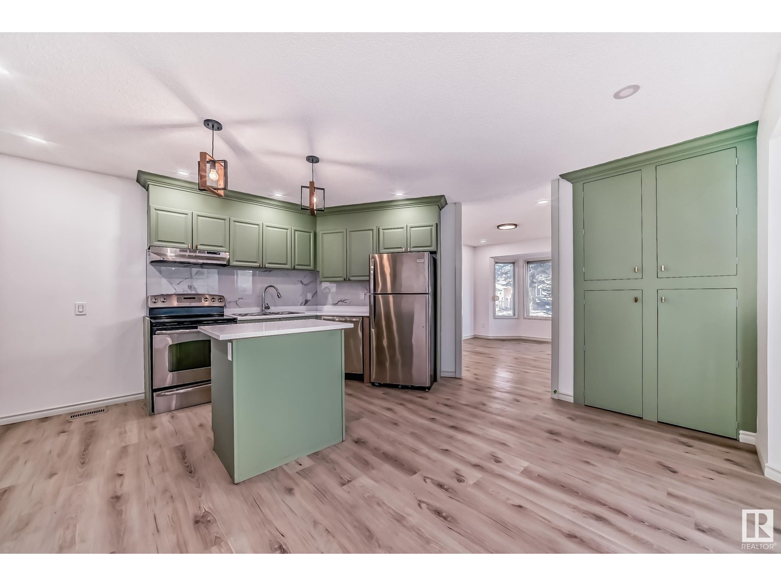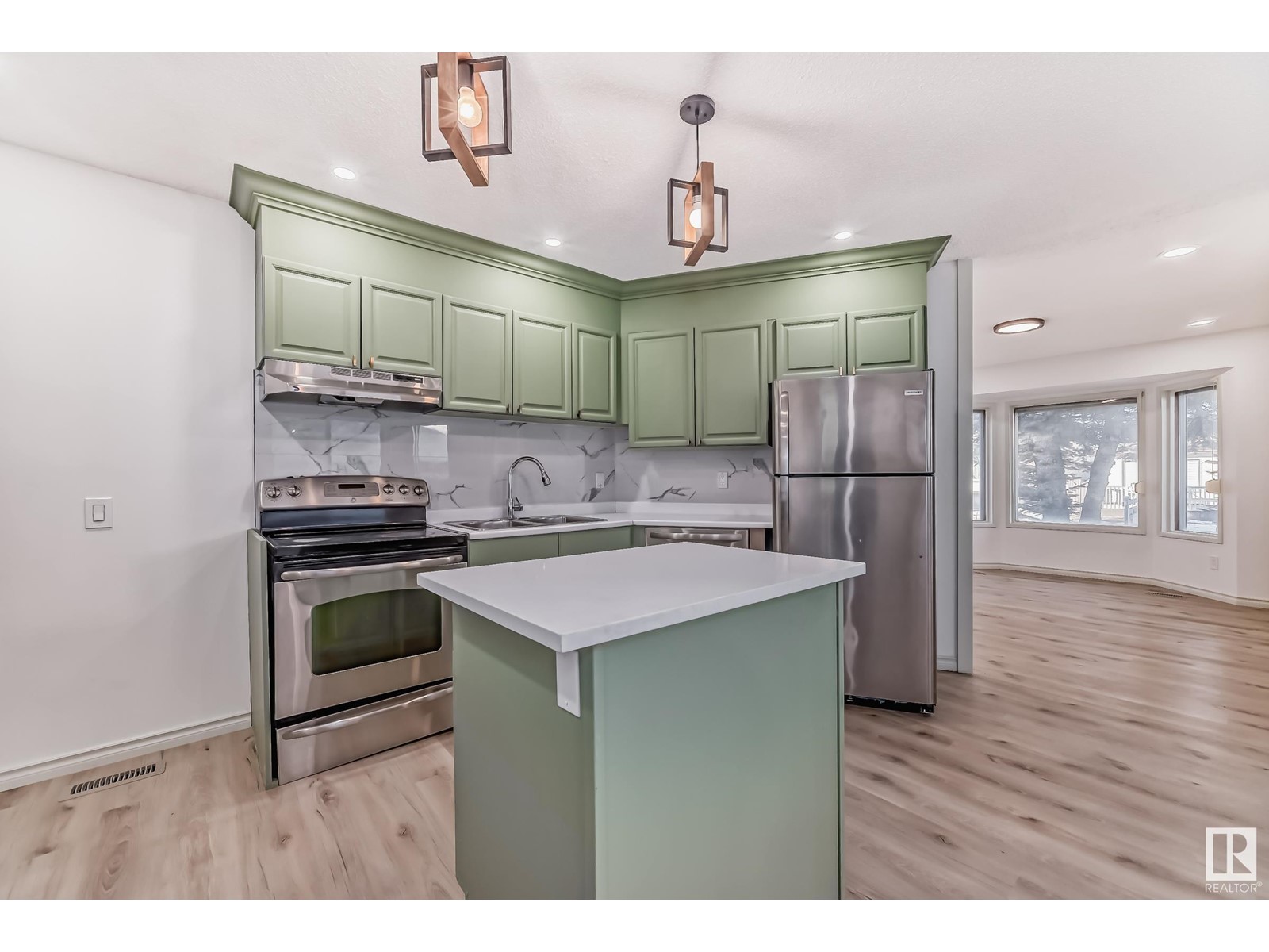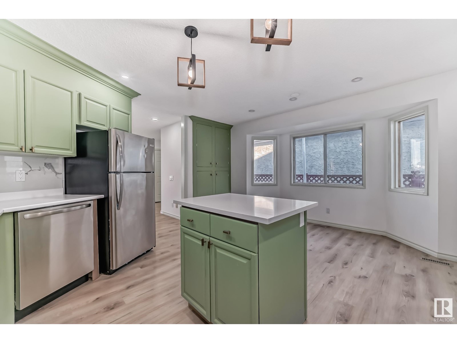 STYLISH & AFFORDABLE! This 4 level split has been beautifully renovated and features 4 bedrooms, 3 baths, gorgeous vinyl plank flooring, designer lighting and a modern open floor plan. The spacious living room has a large bay window flooding the home with natural light and flows through to the kitchen which has contemporary cabinetry, plenty of counterspace with tiled backsplash, quality stainless steel appliances, island and sunny family dining area. Upstairs has 2 generous bedrooms with lots of closet space and a full family bathroom. The lower level offers another bedroom, bath and family room with a cozy brick fireplace. The developed basement has a bedroom, bathroom, laundry and an abundance of storage space. The exterior has a heated double garage and a fully fenced mature yard. Belle Rive is a wonderful community close to parks, great schools and major shopping this lovely family home is perfect for the first-time buyer. Take a look (id:22211)