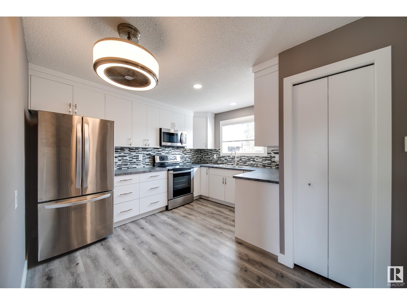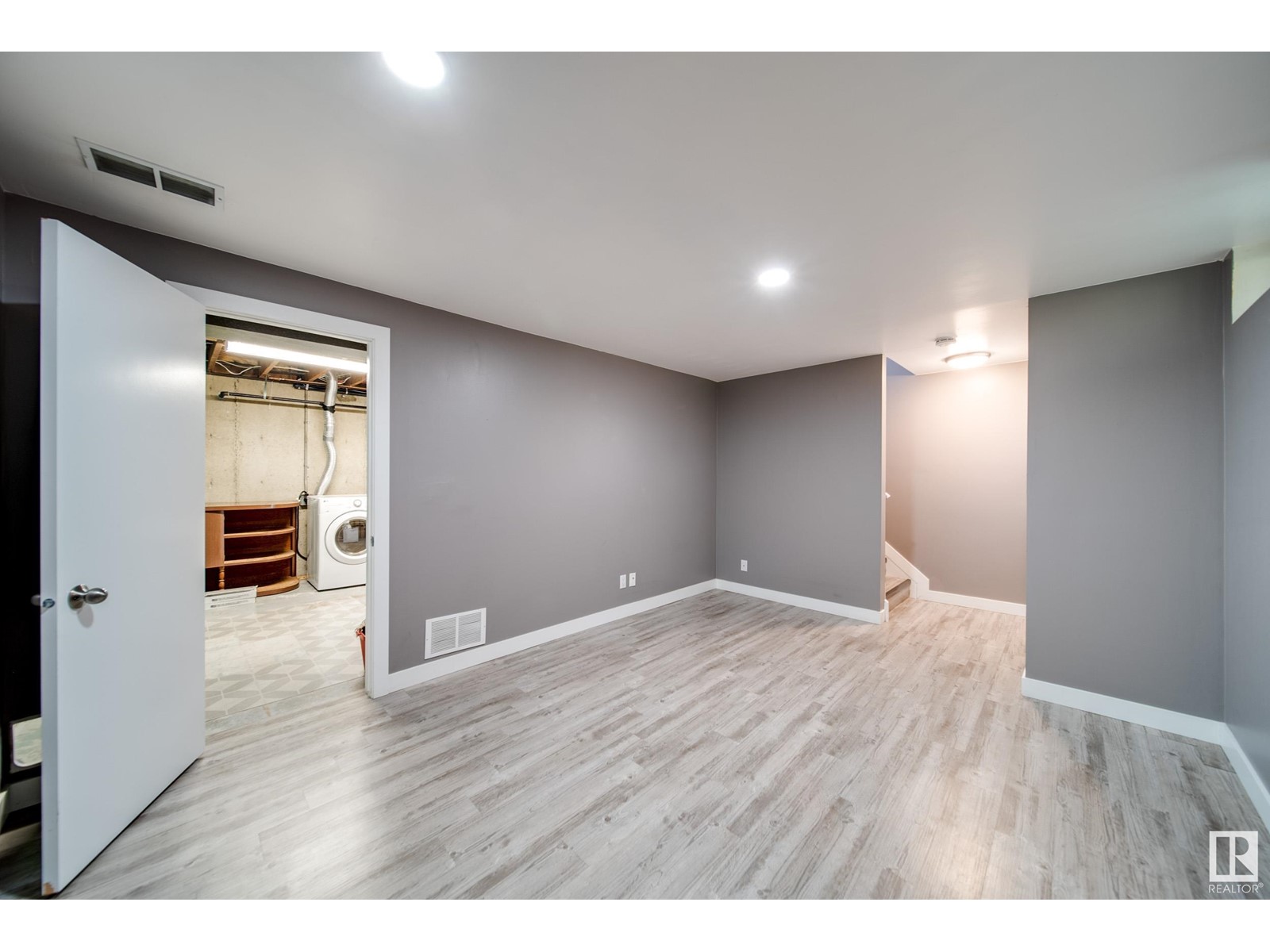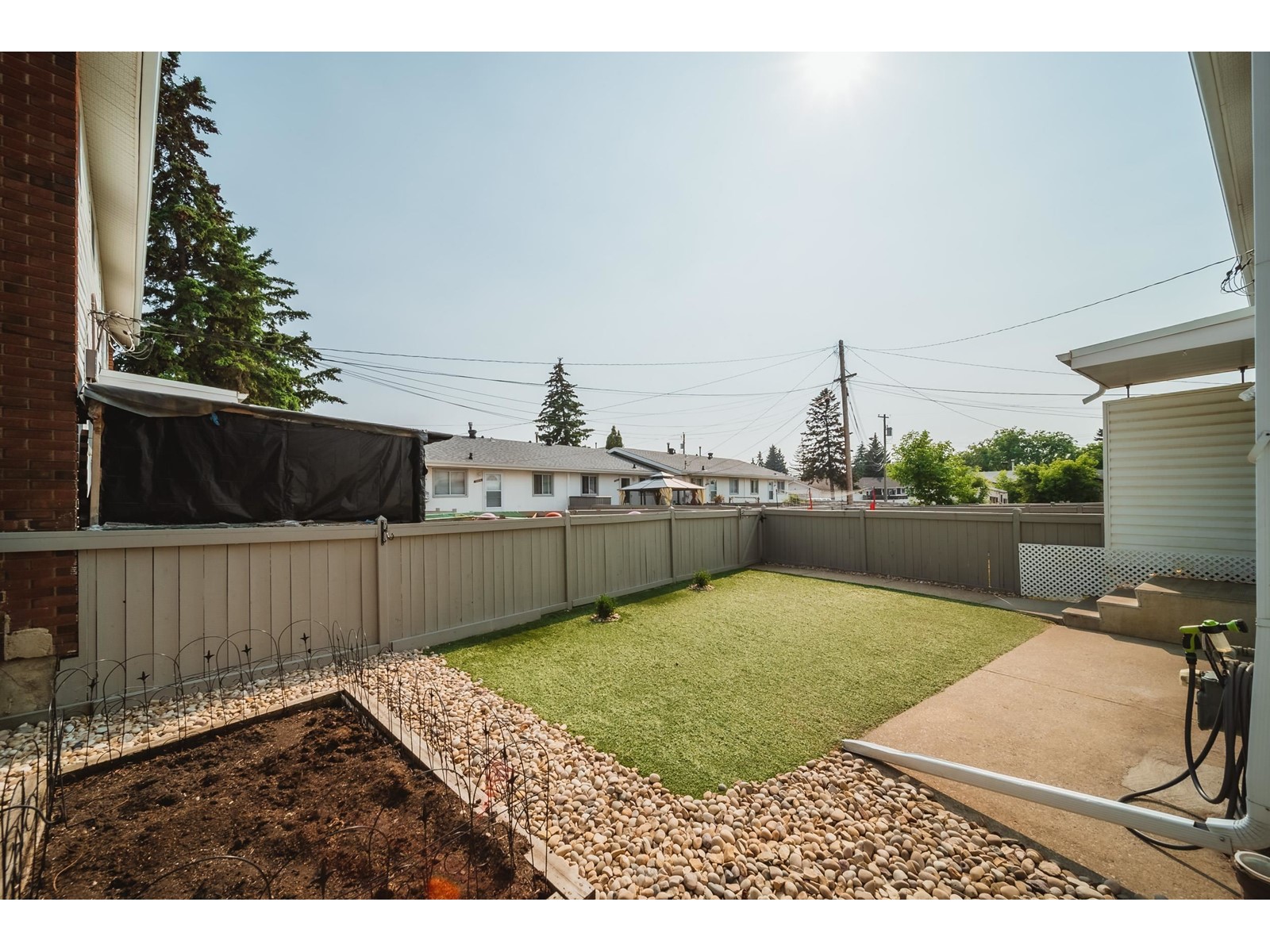 Welcome to Mayfield and this full upgraded 3 bedroom 1.5 bath END UNIT townhouse with fully finished basement and fenced backyard! Main floor features vinyl plank floor, new baseboards, trim and paint, spacious living room with big bright window, fully upgraded kitchen with stainless steal appliances and tiled backsplash. Half bathroom near back door leading you to your fenced and landscaped backyard with artificial turf! Upstairs features 3 bedrooms, linen closets, fully upgraded 4 piece bathroom. Basement features living room with vinyl plank floors, storage area, utility room and laundry room! Perfect for first time home buyers or investors! Close to schools and shopping! (id:22211)