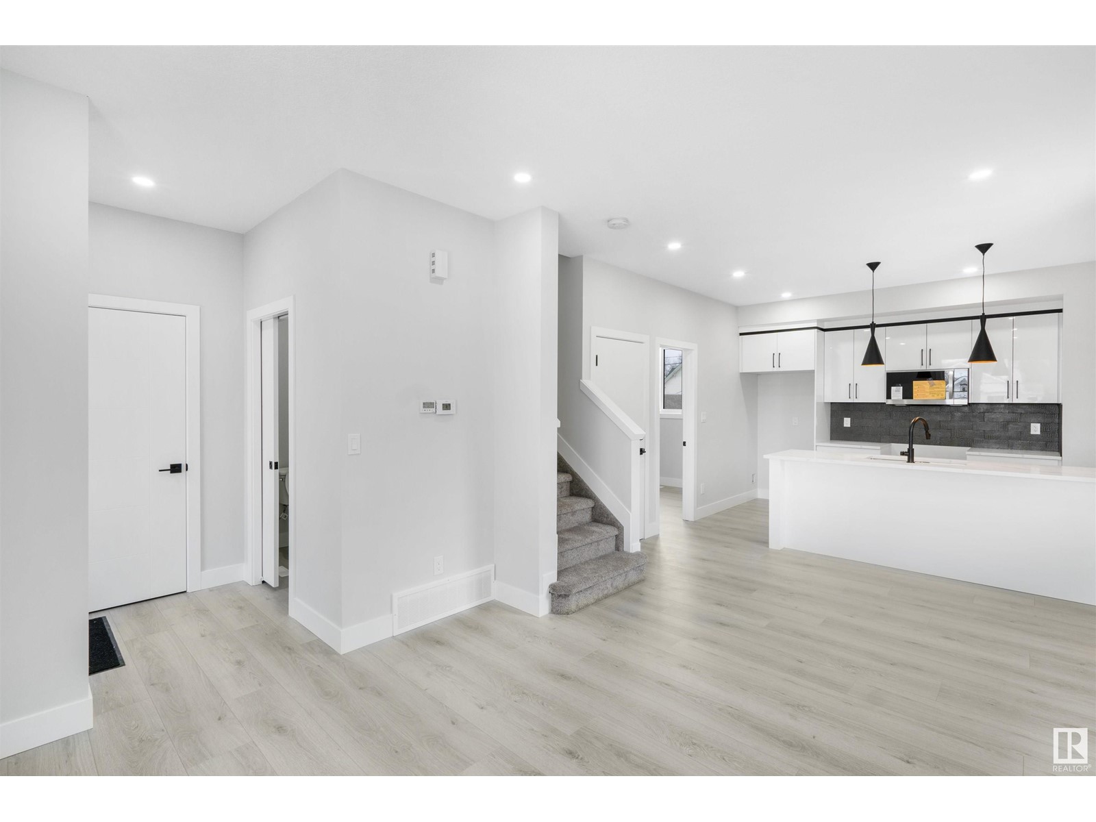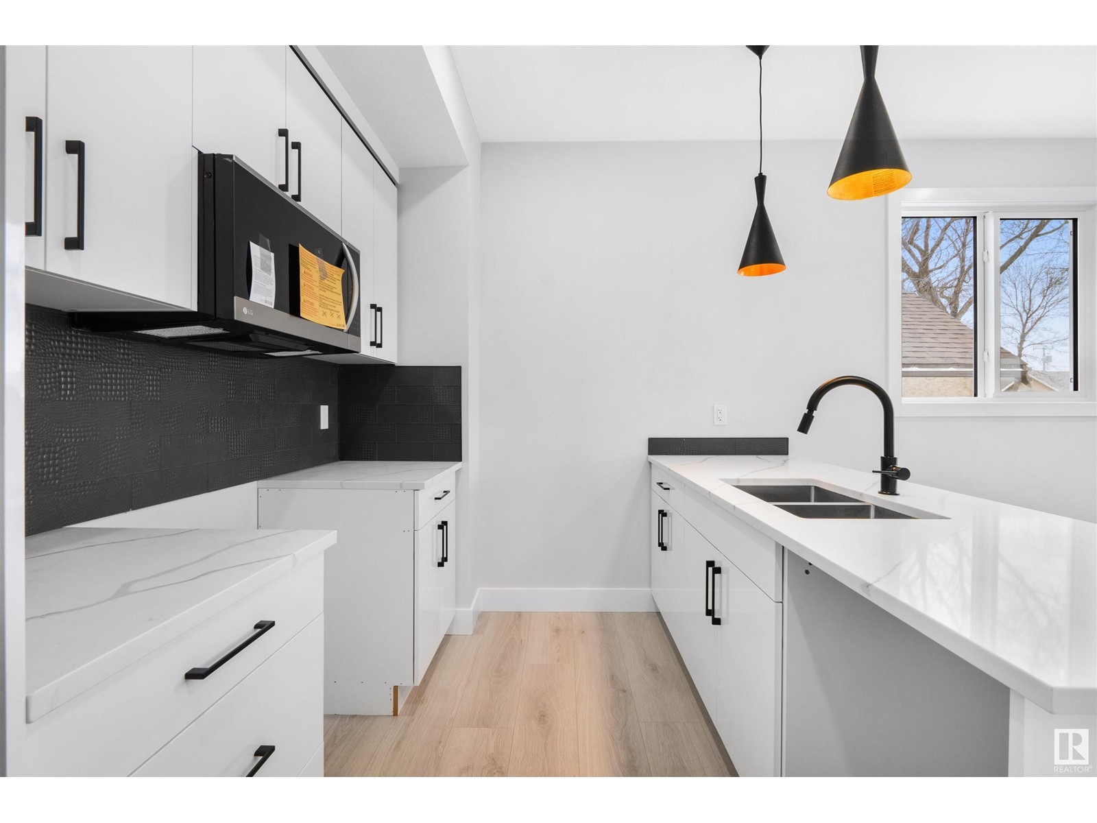 NO CONDO FEE! This modern and stylish duplex front and back build by Edmonton's premier infill builder. This unit comes with 3 bedrooms upstairs and Den on main. Also have SEPRATE ENTRANCE with the opportunity to build FUTURE LEGAL one bedroom BASEMENT SUITE!. The main floor is bright, spacious and highlighted by oversized windows and gleaming hardwood floors. The kitchen features quartz counters and modern custom cabinets . (id:22211)