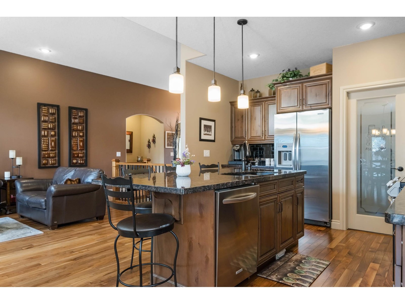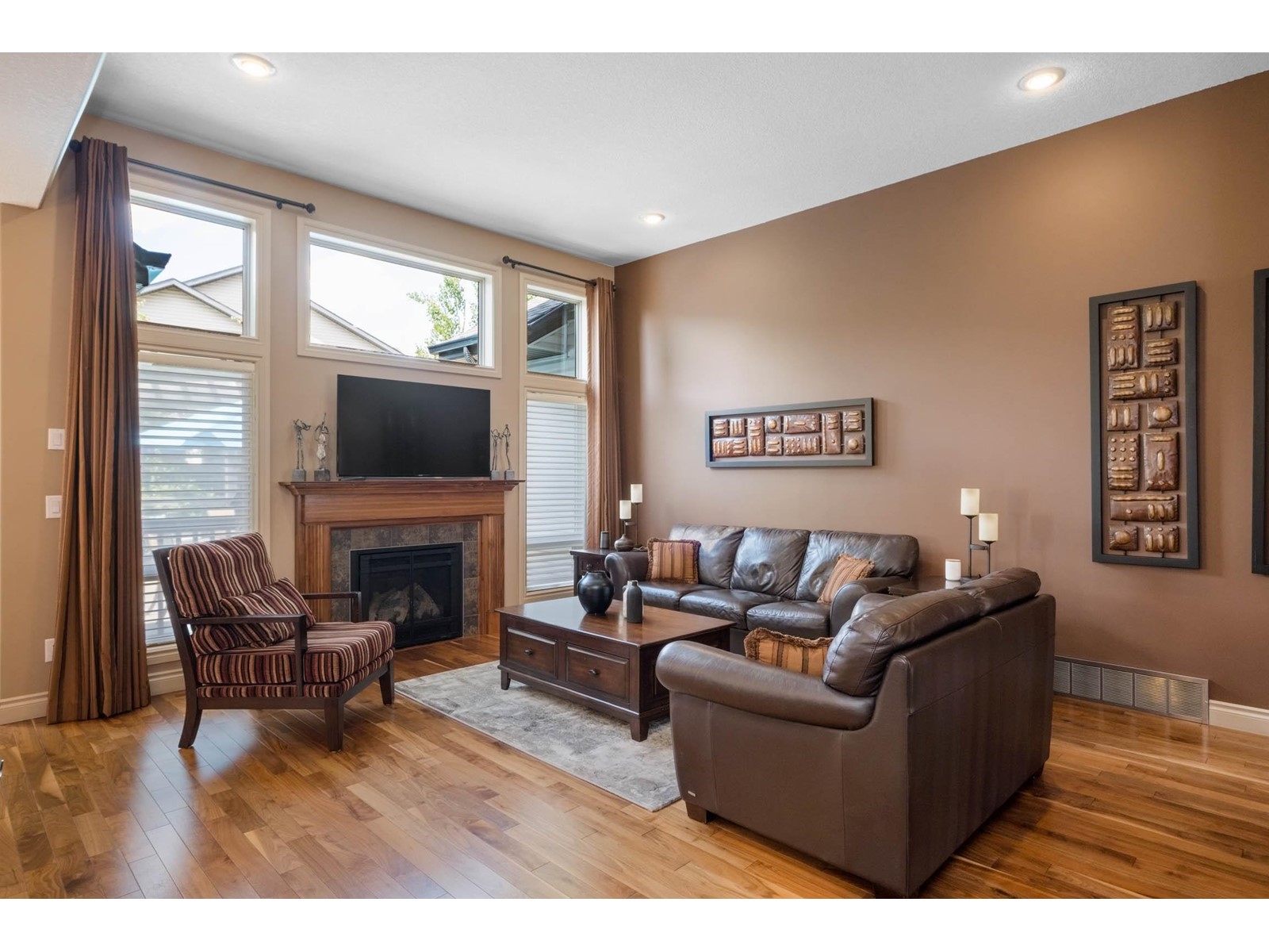 SHOWSTOPPER in Webber Greens! Curb appeal on this custom-built bungalow by Canyon Springs is OUTSTANDING! Professionally landscaped, fully fenced, A/C, welcoming back yard w/deck & BBQ gas line, pergola, wired in-ground lighting, surrounded by perennialsBREATHTAKING! Home boasts 3 bedrooms + main-level office & lower-level gym, 3 FULL baths & fully finished basement w/wet bar & rec room featuring 3-sided gas F/P. Inviting foyer leads to open concept living/dining room w/grand ceilings, oversized windows & mantled gas F/P. Spectacular kitchen w/center island, upgraded faucets, granite countertops, abundance of rich dark cabinetry w/built-in wine rack, undermount lighting, mosaic tile backsplash, high end appliances & convenient walk through pantry/laundry to attached dbl garage. Private owners suite is complete w/luxurious 5 pc ensuite w/soaker tub, tiled shower & WIC. 2 addl junior suites located in basement w/4 pc bath & plenty of storage. Sought after community w/walking trails & steps to the school. (id:22211)