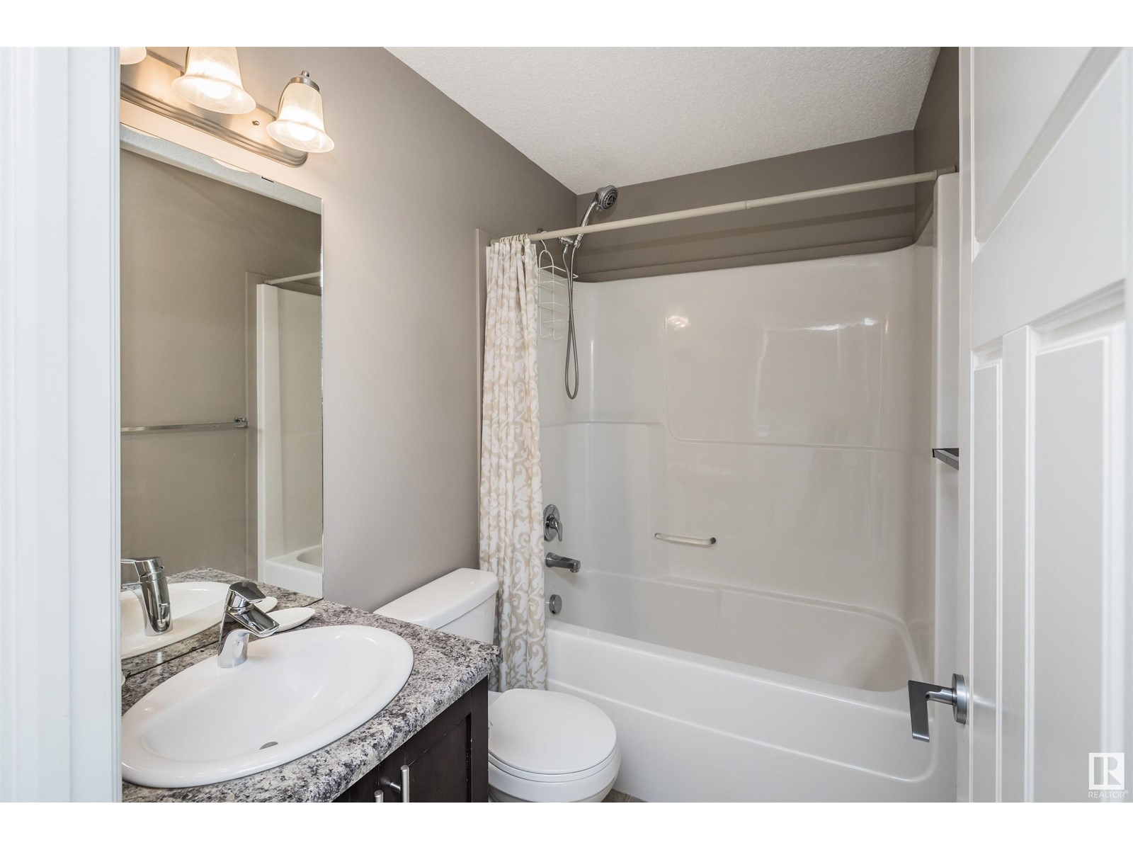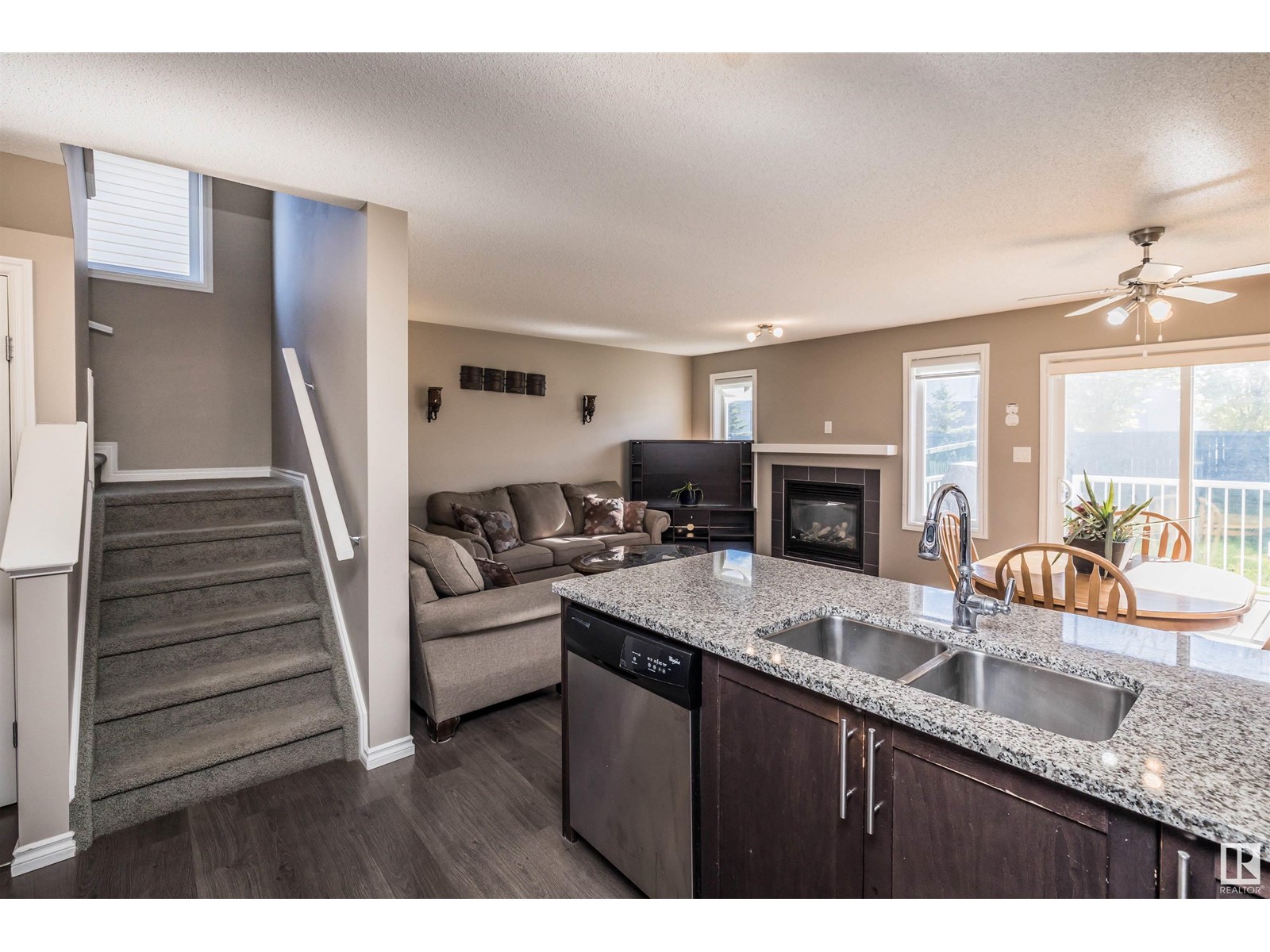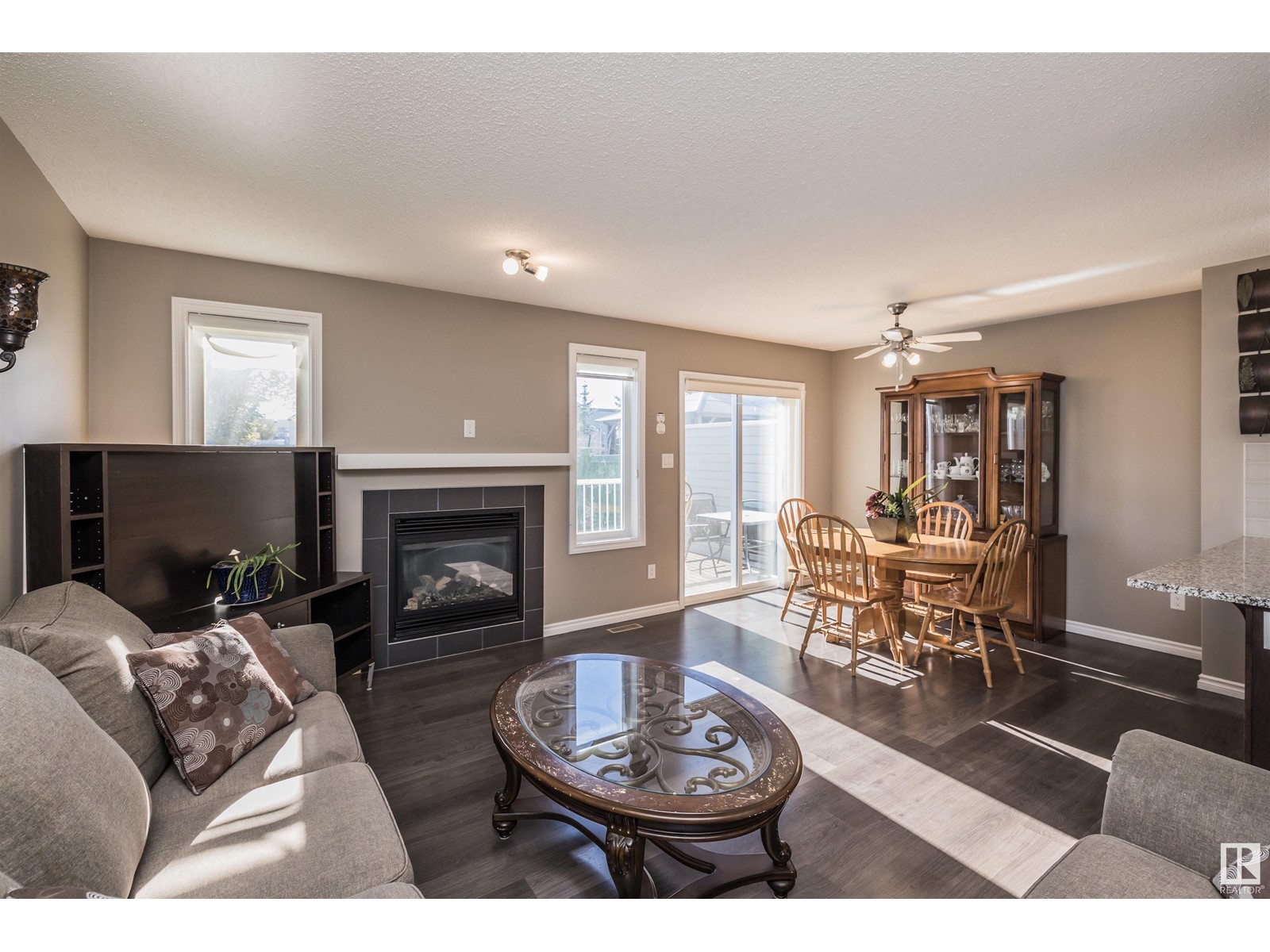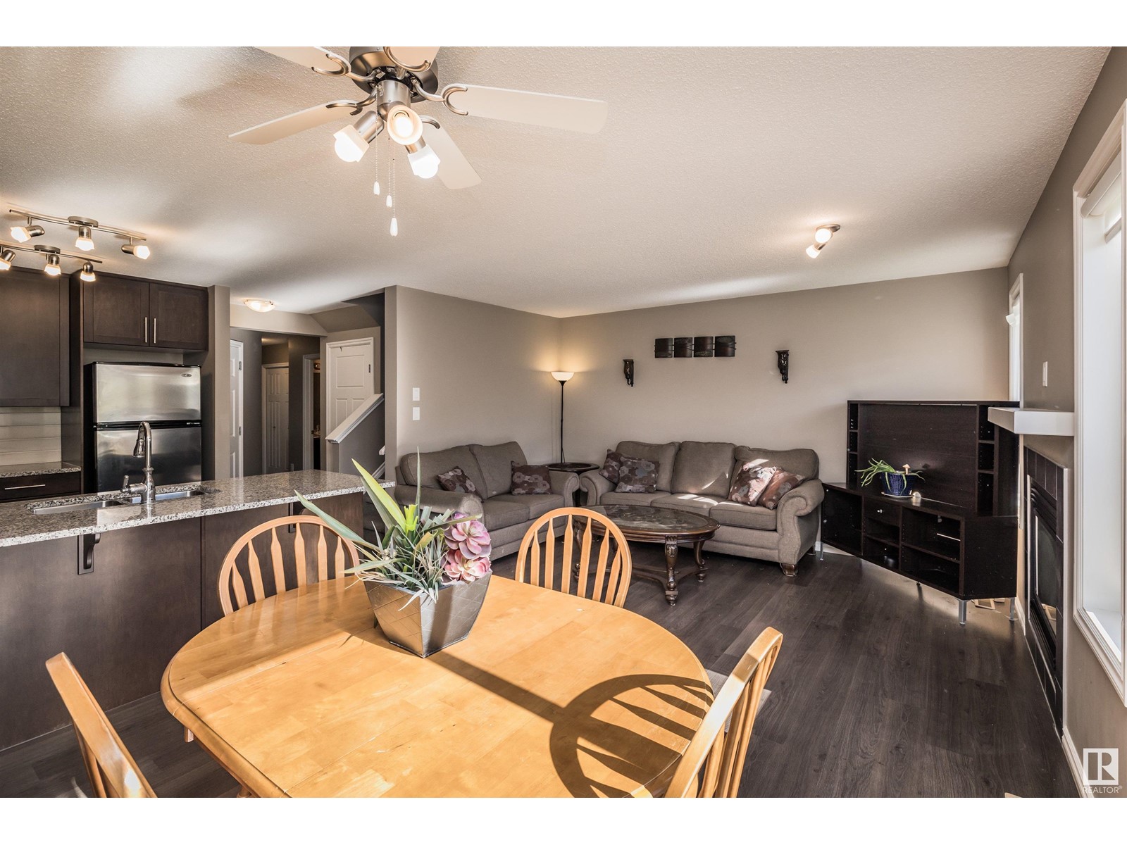 FINISHED BASEMENT!!!! Welcome to this immaculately finished half duplex nestled in the serene Webber Greens neighborhood! The main level is bathed in natural light and boasts an expansive open floor plan. The kitchen is generously proportioned, adorned with rich dark cabinets, granite countertops, and a convenient eating bar island. The living room is warmed by a cozy gas fireplace and offers ample space for gatherings. The dining area overlooks the vast backyard, and access to the single attached garage and a 2PC bath complete this level. Ascending to the upper floor reveals three generously sized bedrooms. The primary bedroom includes a well-appointed 4PC ensuite bathroom and a spacious walk-in closet. The basement is tastefully finished, featuring a family room, a laundry area, and a 3PC bathroom. Within walking distance, you'll find not one, but two schools, and the convenience of shopping right at your doorstep. (id:22211)
