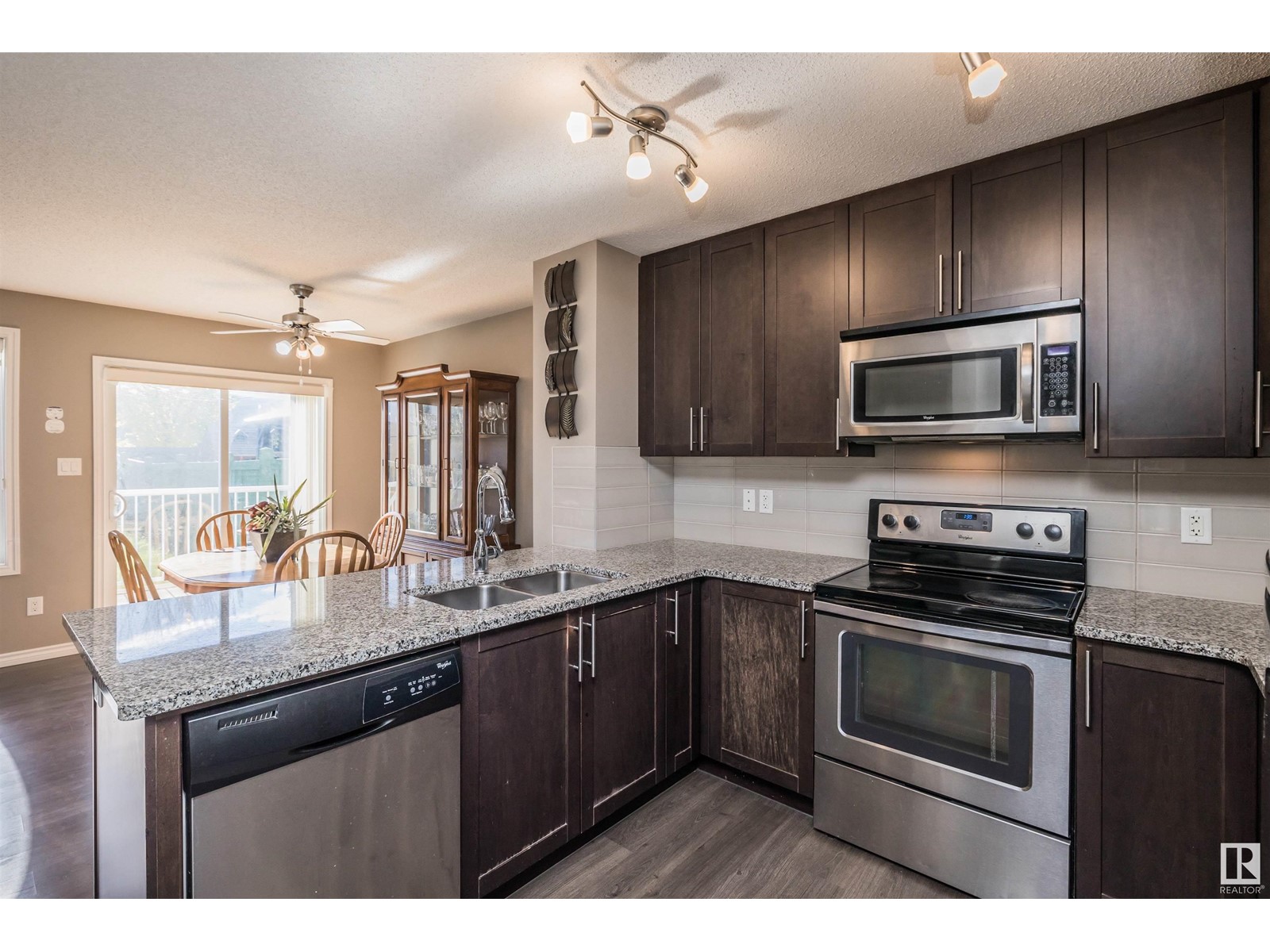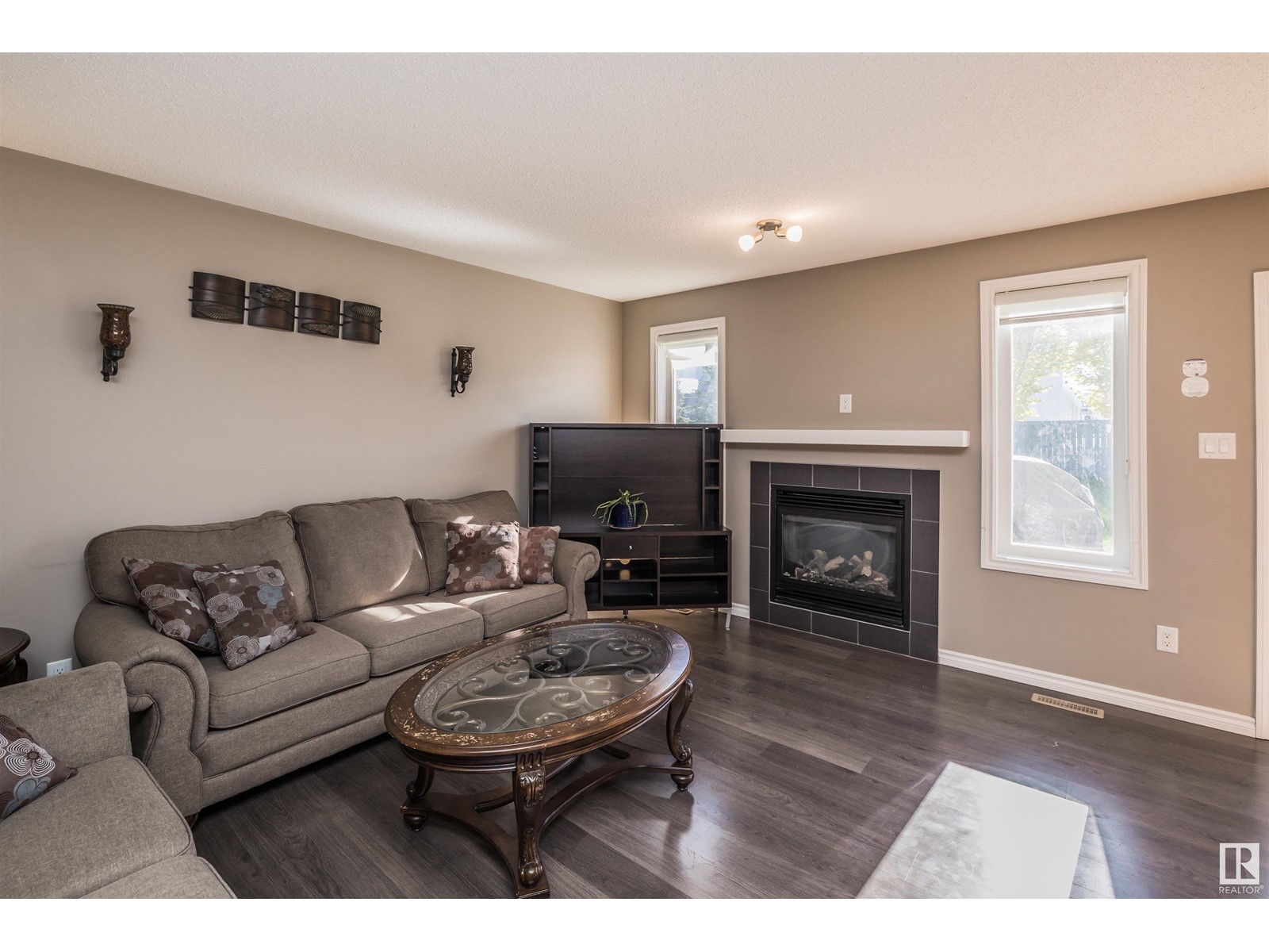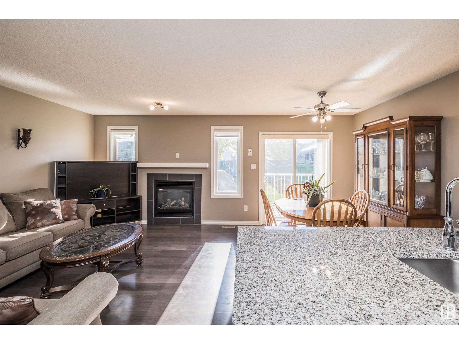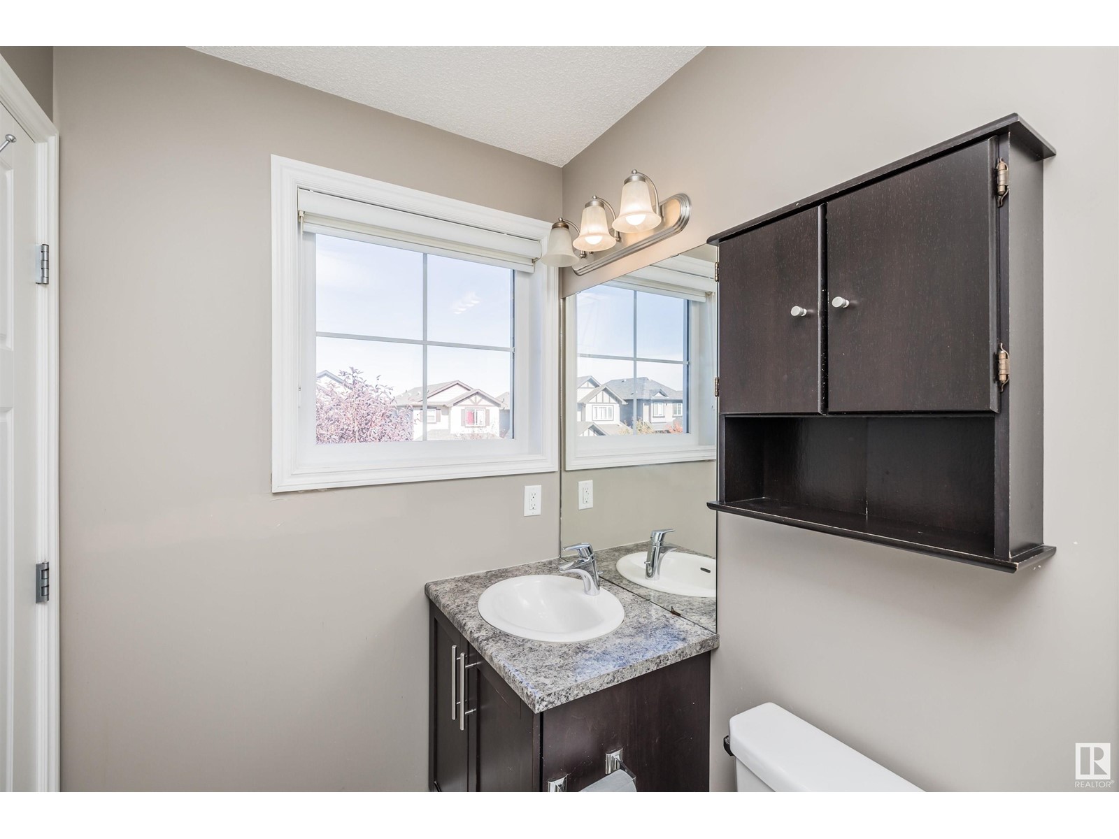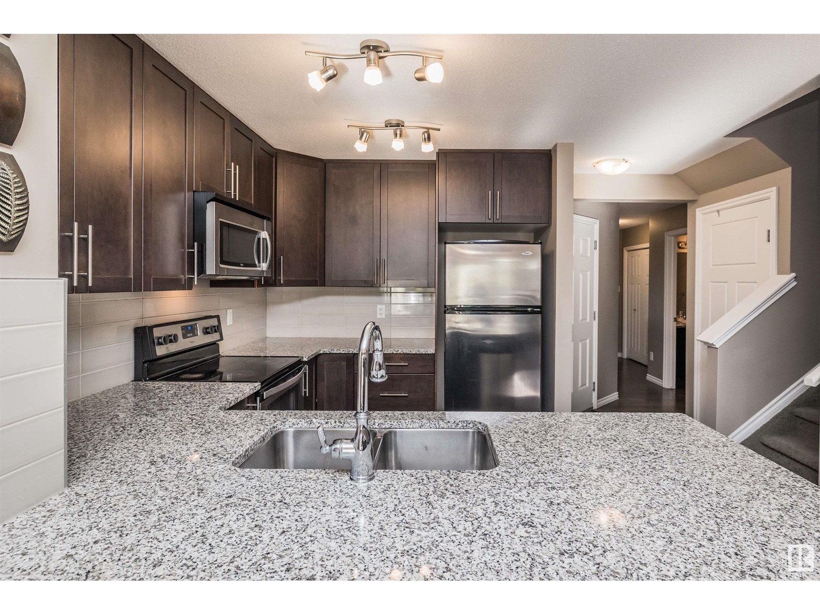 FINISHED BASEMENT!!!! Welcome to this immaculately finished half duplex nestled in the serene Webber Greens neighborhood! The main level is bathed in natural light and boasts an expansive open floor plan. The kitchen is generously proportioned, adorned with rich dark cabinets, granite countertops, and a convenient eating bar island. The living room is warmed by a cozy gas fireplace and offers ample space for gatherings. The dining area overlooks the vast backyard, and access to the single attached garage and a 2PC bath complete this level. Ascending to the upper floor reveals three generously sized bedrooms. The primary bedroom includes a well-appointed 4PC ensuite bathroom and a spacious walk-in closet. The basement is tastefully finished, featuring a family room, a laundry area, and a 3PC bathroom. Within walking distance, you'll find not one, but two schools, and the convenience of shopping right at your doorstep. (id:22211)