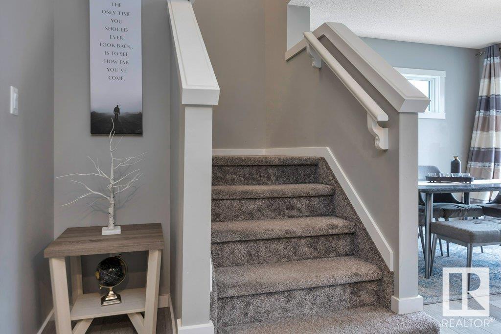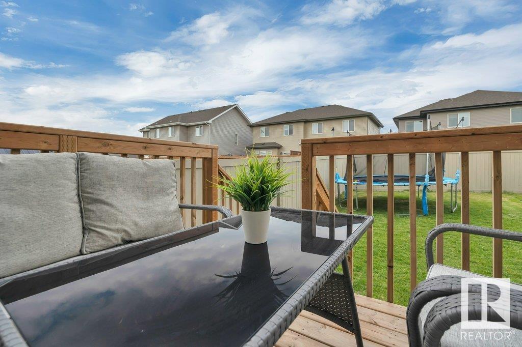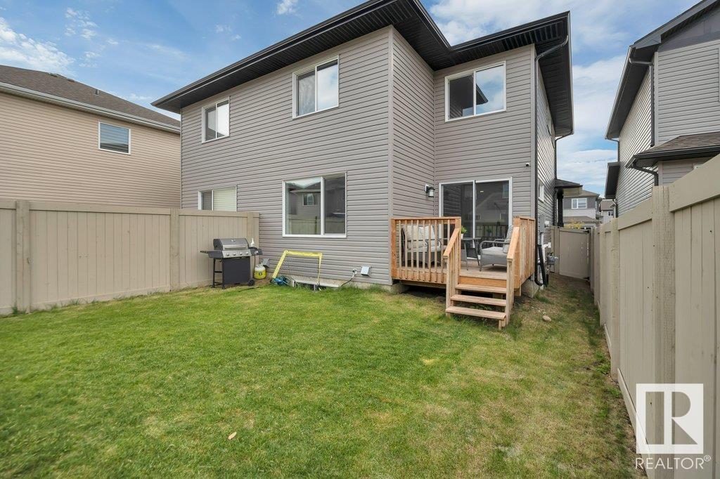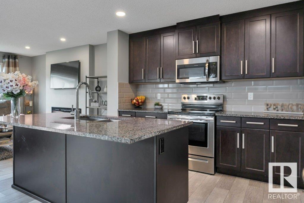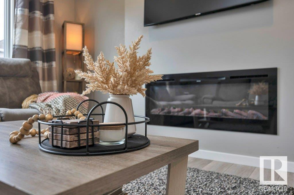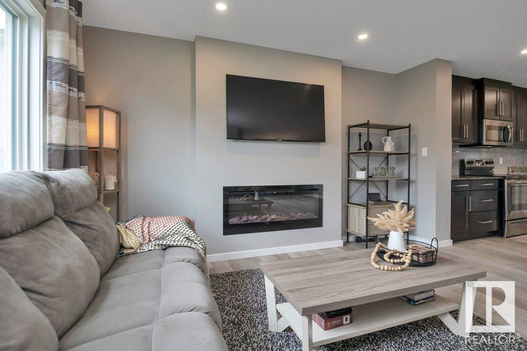 MODERN 1641sqft home with NO CONDO fees!. Situated at the end of a cul-de-sac in popular Maple close to everything! Extra Long driveway is a great feature with backyard. As soon as you enter the home you will notice the SPACIOUS ENTRANCE with OPEN-TO-ABOVE extra high ceiling and mudroom for coats, shoes and more. The Livingrm with FIREPLACE is open to the kitchen with everything you've been looking for like the large ISLAND, WALK -IN PANTRY, an abundance of ESPRESSO CABINETRY. PLus: QUARTZ COUNTER TOPS, VINYL PLANK main floor, OPEN DESIGN with WARM Neutral DECOR, STAINLESS STEEL appliances including a massive FRENCH DOOR FRIDGE! Upstairs in the Primary Suite with HUGE Walk-IN Closet, ENSUITE with 4' SHOWER, UPSTAIRS LAUNDRY for quick & easy access. A total of 3 SPACIOUS bedrooms and 2 1/2 Bathrooms. The OVERSIZED garage is 23.5' ft LONG! You can have a Truck and now have a place to park it. Maple is full of parks, PONDS, & PLAYGROUNDS, walking trails and stores with easy access to the Whitemud and Henday. (id:22211)