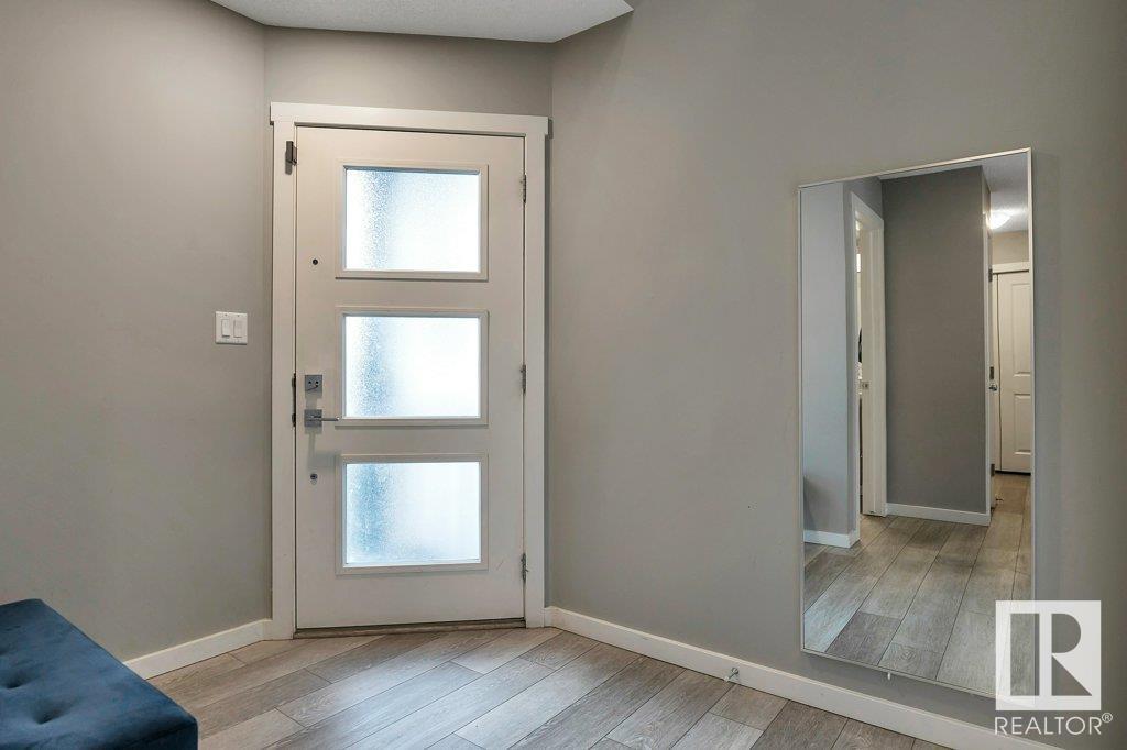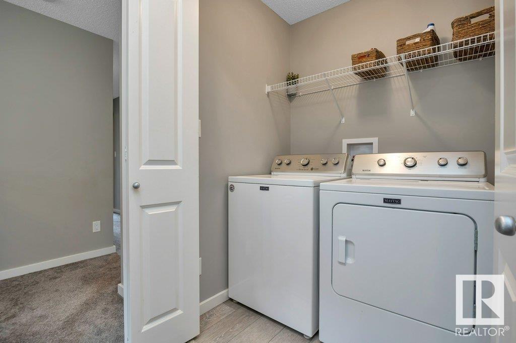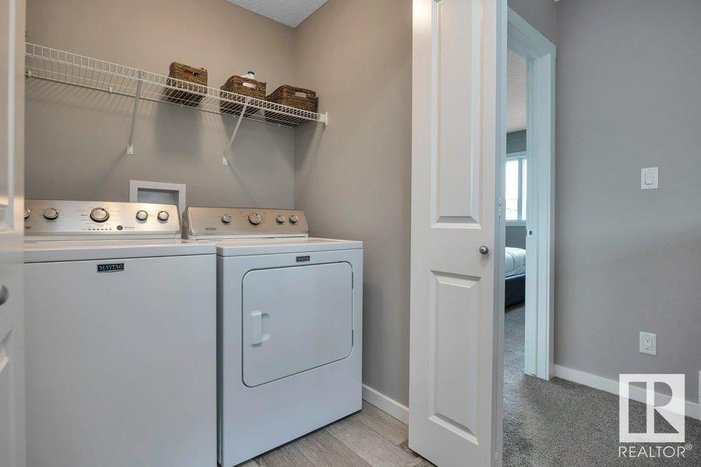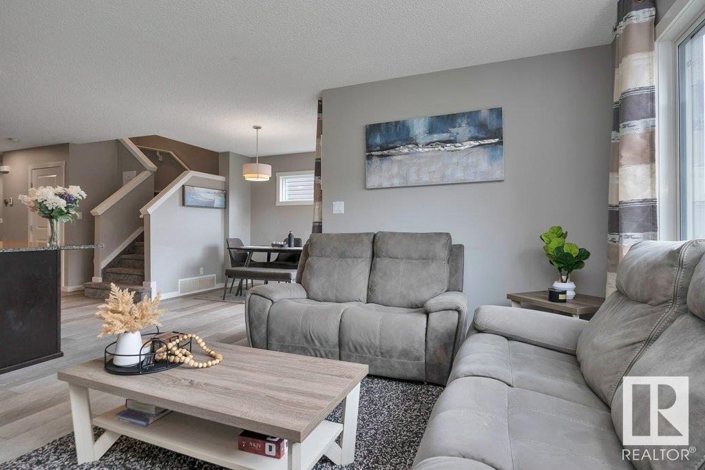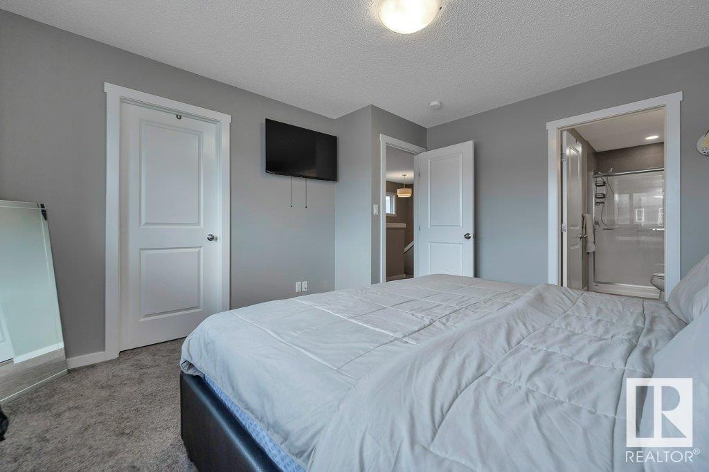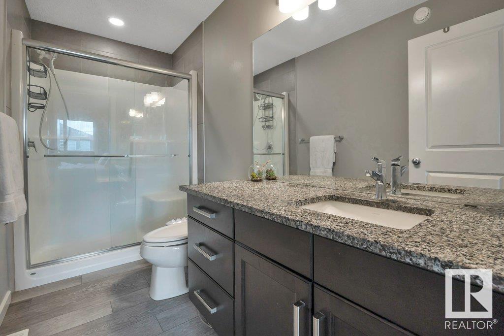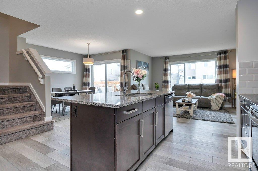 MODERN 1641sqft home with NO CONDO fees!. Situated at the end of a cul-de-sac in popular Maple close to everything! Extra Long driveway is a great feature with backyard. As soon as you enter the home you will notice the SPACIOUS ENTRANCE with OPEN-TO-ABOVE extra high ceiling and mudroom for coats, shoes and more. The Livingrm with FIREPLACE is open to the kitchen with everything you've been looking for like the large ISLAND, WALK -IN PANTRY, an abundance of ESPRESSO CABINETRY. PLus: QUARTZ COUNTER TOPS, VINYL PLANK main floor, OPEN DESIGN with WARM Neutral DECOR, STAINLESS STEEL appliances including a massive FRENCH DOOR FRIDGE! Upstairs in the Primary Suite with HUGE Walk-IN Closet, ENSUITE with 4' SHOWER, UPSTAIRS LAUNDRY for quick & easy access. A total of 3 SPACIOUS bedrooms and 2 1/2 Bathrooms. The OVERSIZED garage is 23.5' ft LONG! You can have a Truck and now have a place to park it. Maple is full of parks, PONDS, & PLAYGROUNDS, walking trails and stores with easy access to the Whitemud and Henday. (id:22211)