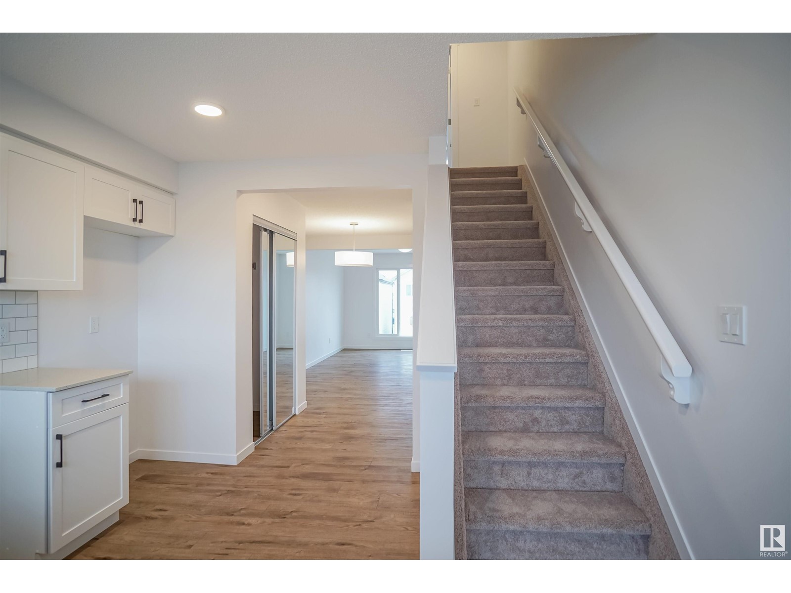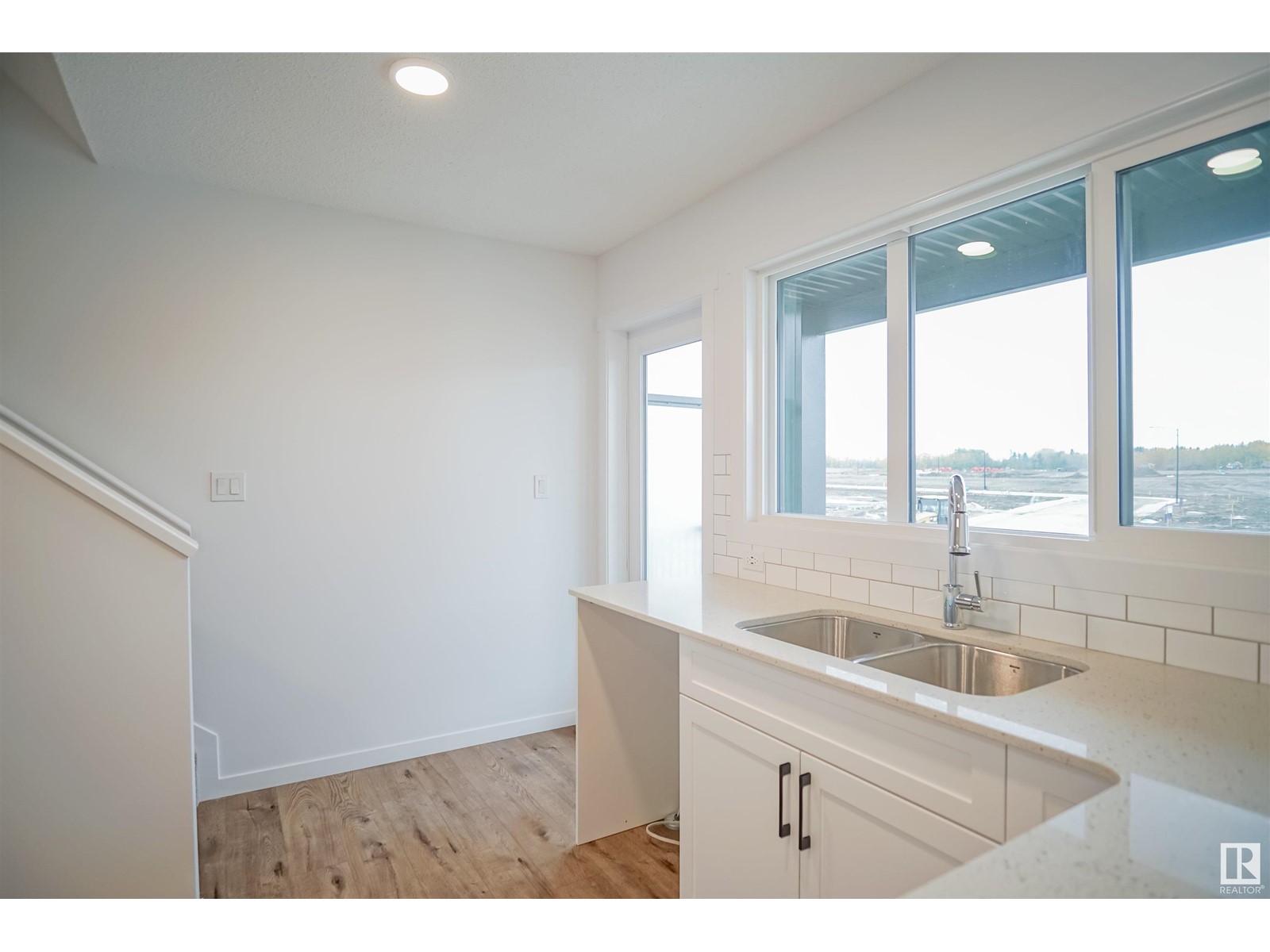 NO CONDO FEES and AMAZING VALUE! You read that right welcome to this brand new townhouse unit the Demi Built by StreetSide Developments and is located in one of Edmonton's newest premier West End communities of Rosnethal. With almost 900 square Feet, it comes with front yard landscaping and a single over sized attached garage, this opportunity is perfect for a young family or young couple. Your main floor is complete with upgrade luxury Vinyl Plank flooring throughout the great room and the kitchen. The main entrance/ main floor has a large sized foyer with a 2 piece bathroom. Highlighted in your new kitchen are upgraded cabinets, upgraded counter tops and a tile back splash. The upper level has 2 bedrooms and 2 full bathrooms. *** Photos are from a previous built home and colors/Finishing's may vary*** (id:22211)