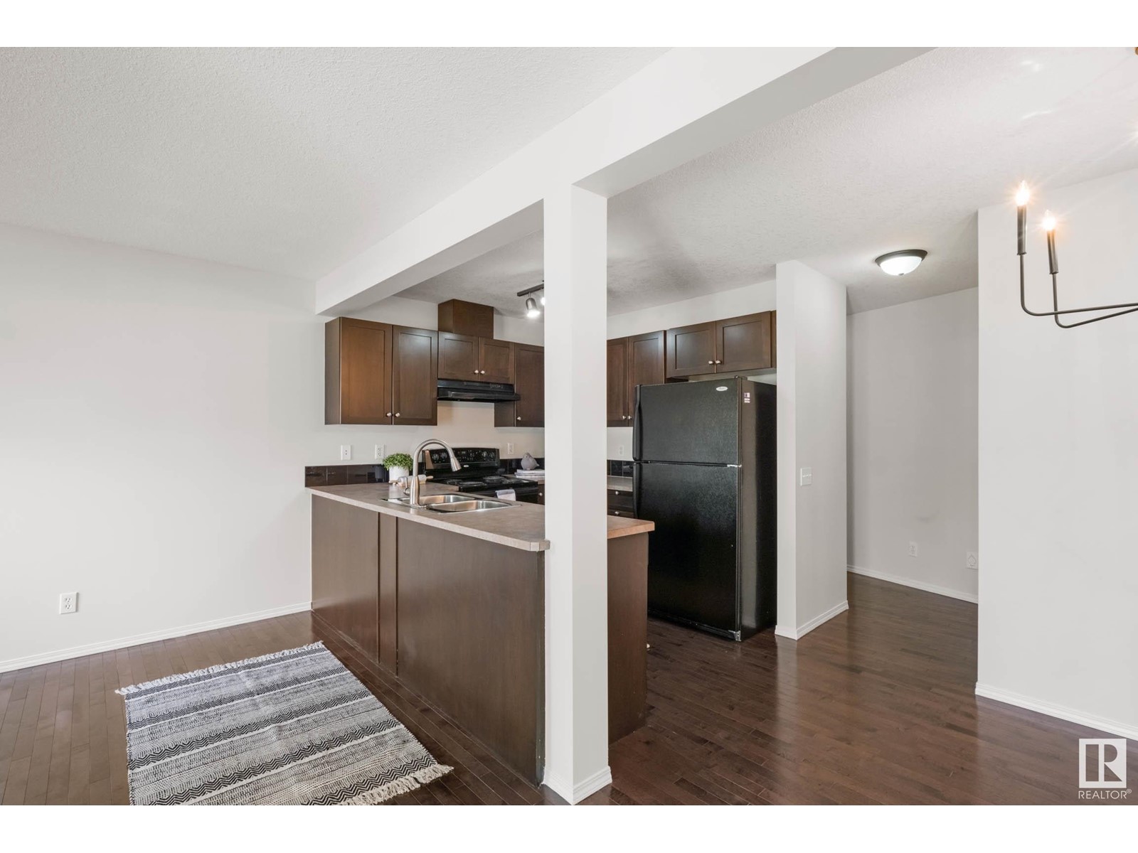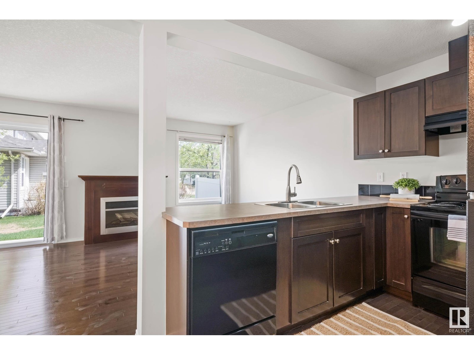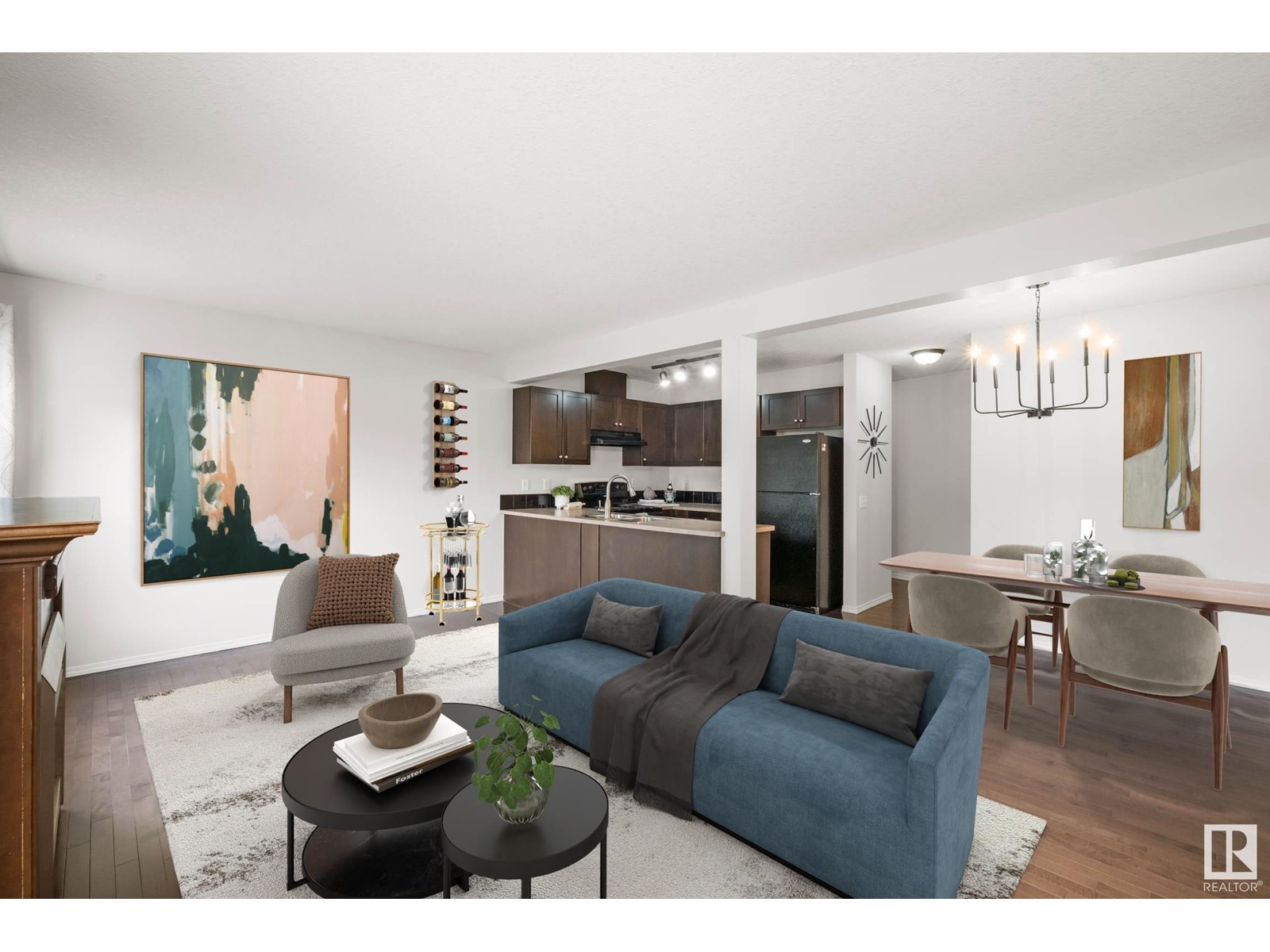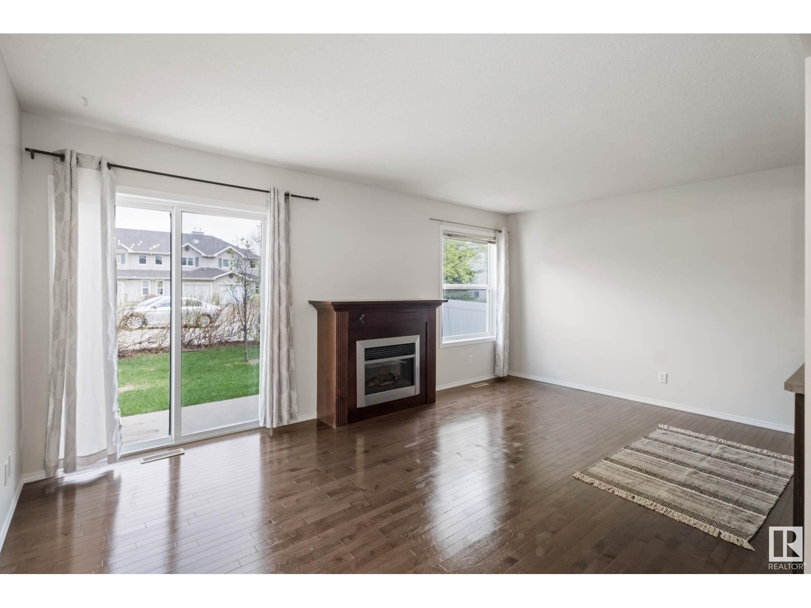 Immaculate in desirable Ellerslie! This beautiful, bright town home has been FRESHLY PAINTED and features gleaming HARDWOODflooring, updated fixtures and a fantastic open concept layout. The espresso kitchen cabinetry offers plenty of storage, and the livingroom features a cozy fireplace and sliding glass doors which lead to the patio and green space- perfect for picnics and kids play area!Upstairs features a spacious primary bedroom with a large walk in closet, 2 more ample size bedrooms and a 4 pc bath. This lovelyhome also has a front attached garage, driveway and visitor parking. Ellerslie offers many walkable amenities, paved walking paths,playgrounds, nearby schools, and convenient bus transportation! Move in and enjoy all this home and community has to offer! *Somephotos have been virtually staged. (id:22211)
