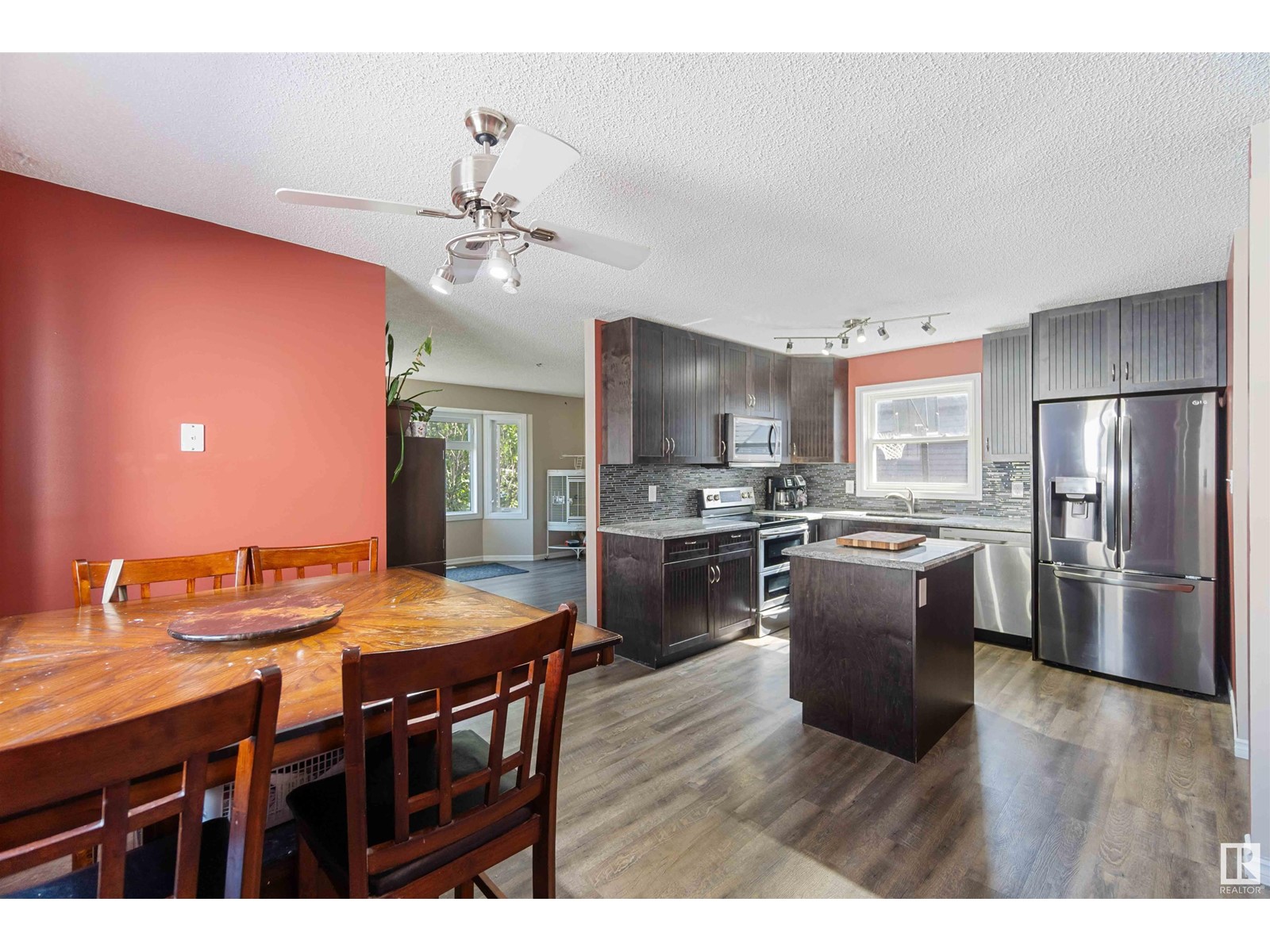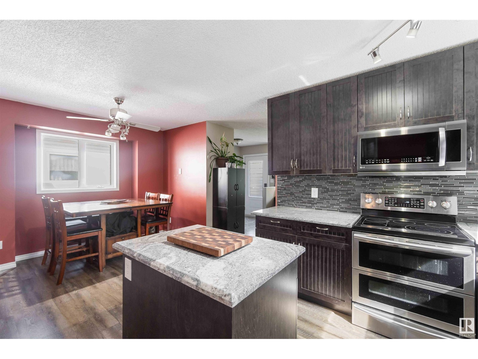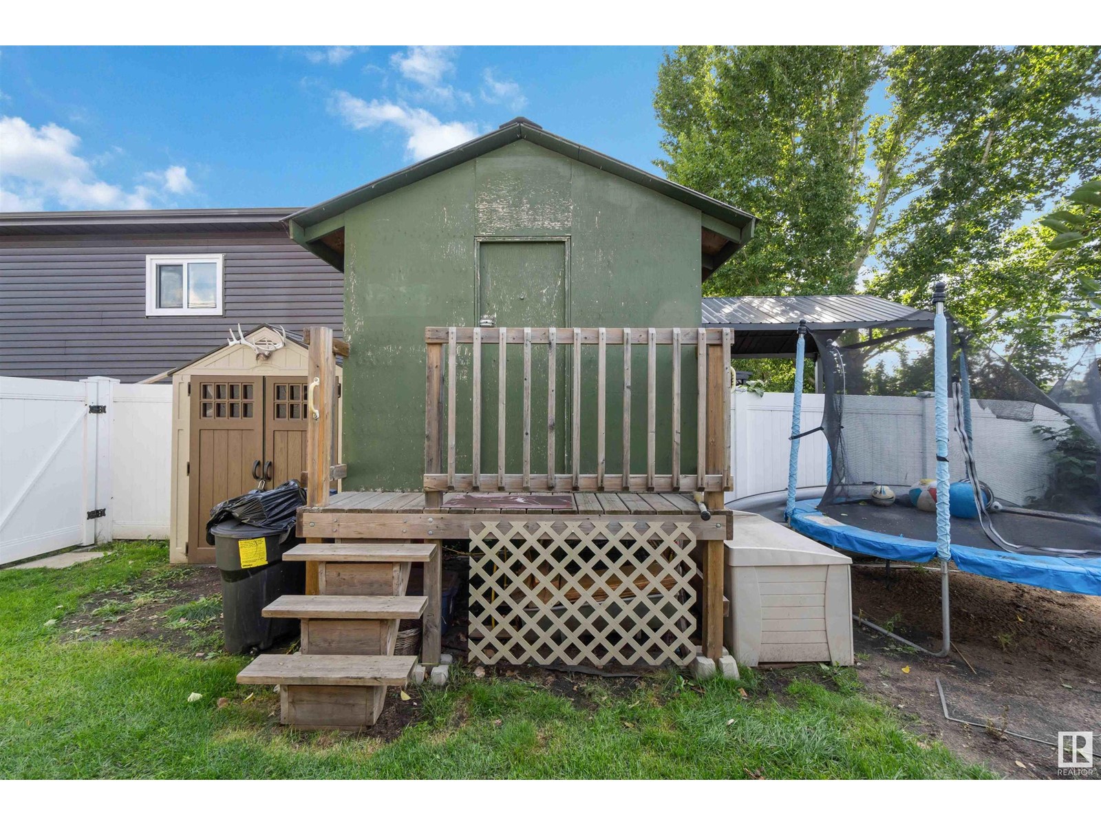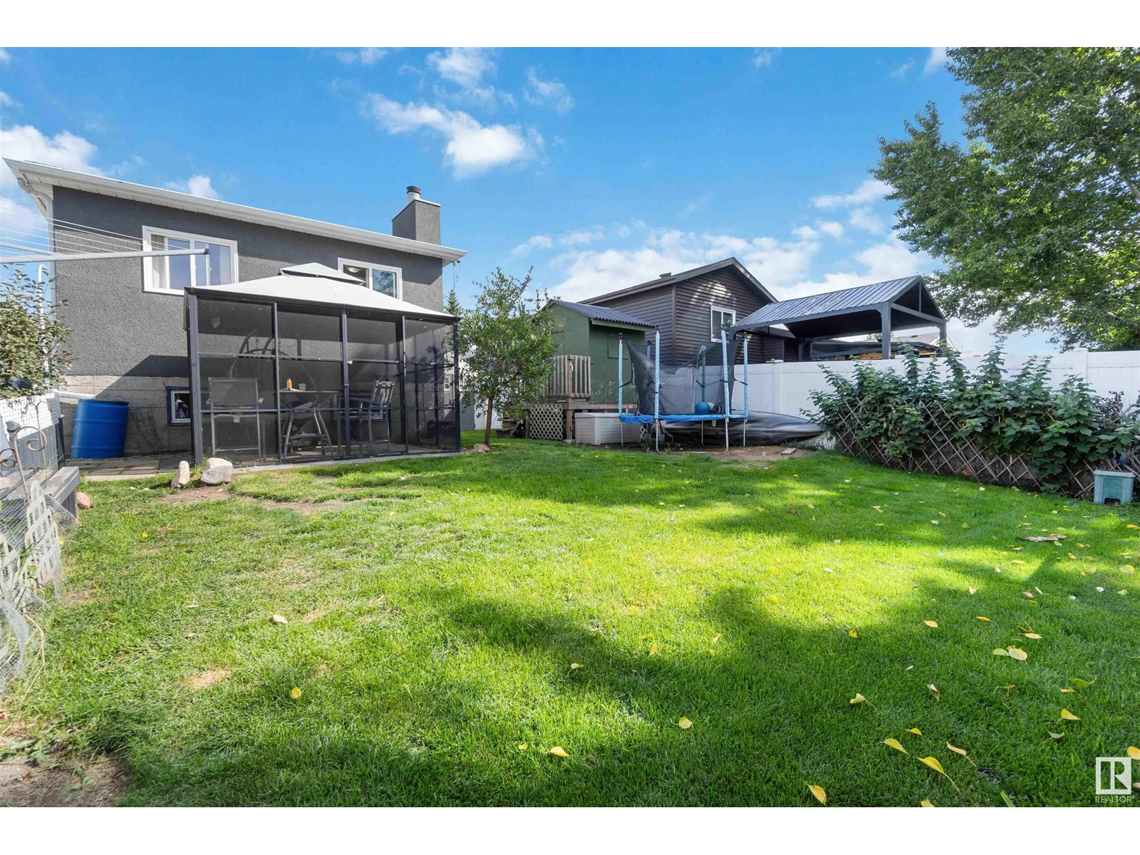 Upgraded 4 level split home awaits you in the Southside neighbourhood of Weinlos. Property boasts over 2,067 Sq.Ft Living Space. This Home offers great curb appeal w/ its hardyboard & stucco siding. The front yard is totally landscaped & has a eco rubber finished driveway. The interior flows well w/ its 4 level split open layout. The kitchen is totally redesigned 2018 & upgraded w/newer cabinetry, granite countertops, Island, & SS appliances. The dining room has extra space for a large table. Upstairs has two fair sized bedrooms & 4 piece bathroom. The mid level living area has a wood burning fireplace w/ stone accent mantel, & lots of room for entertaining, plus a 3 piece bathroom. The basement Includes one bedroom plus den. The utilities room has a washer dryer combo, 2023 hot water tank, & a 2012 well maintained furnace. The backyard is all vinyl fenced w/ a gazebo, shed, AC, & chicken coop. The home sits across from a green space & is nestled on a quiet street. Your new living adventure awaits you. (id:22211)
