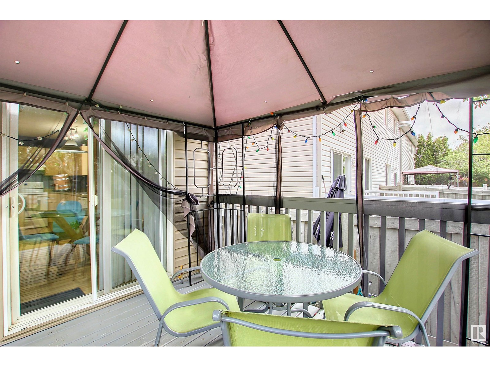 Welcome Home to MacEwan Green located in the South West. Fully finished bare land duplex with single attached garage which is insulated & has convenient storage! This home brightened with natural sunlight, offers two owners suite bedrooms with its own ensuite & the other with a walk-in closet. To complete the second floor is an additional 4 piece bath. Main level offers great size family living area to relax or host, 2 piece bath, kitchen is complete with upgraded stainless steel appliances, an island & also a breakfast nook overlooking the absolutely private yard with mature trees through the glass sliding doors manicured nicely with stone work, flower bedding and deck for great outdoor bbq's. The fully finished basement is soundproof with additional living space which could be utilized to your imagination as gym, additional living area, flex space, there is endless options. Easily accessible to Henday, shopping, golf, schools, public transportation. All this & more with a bonus of low condo fees! (id:22211)