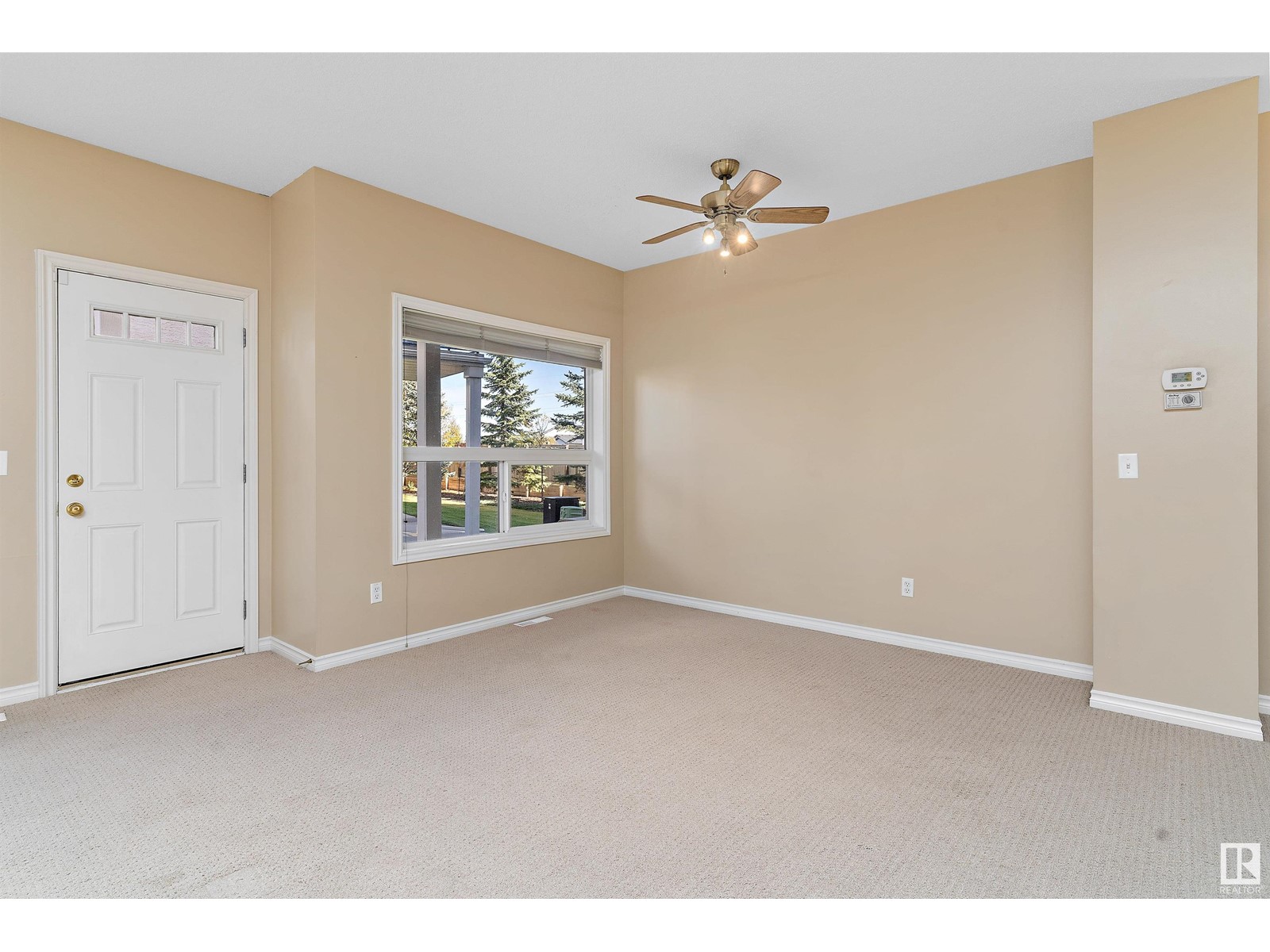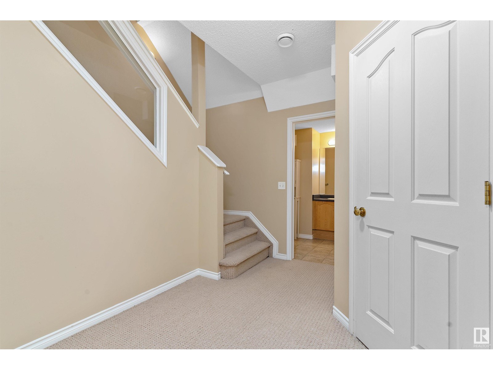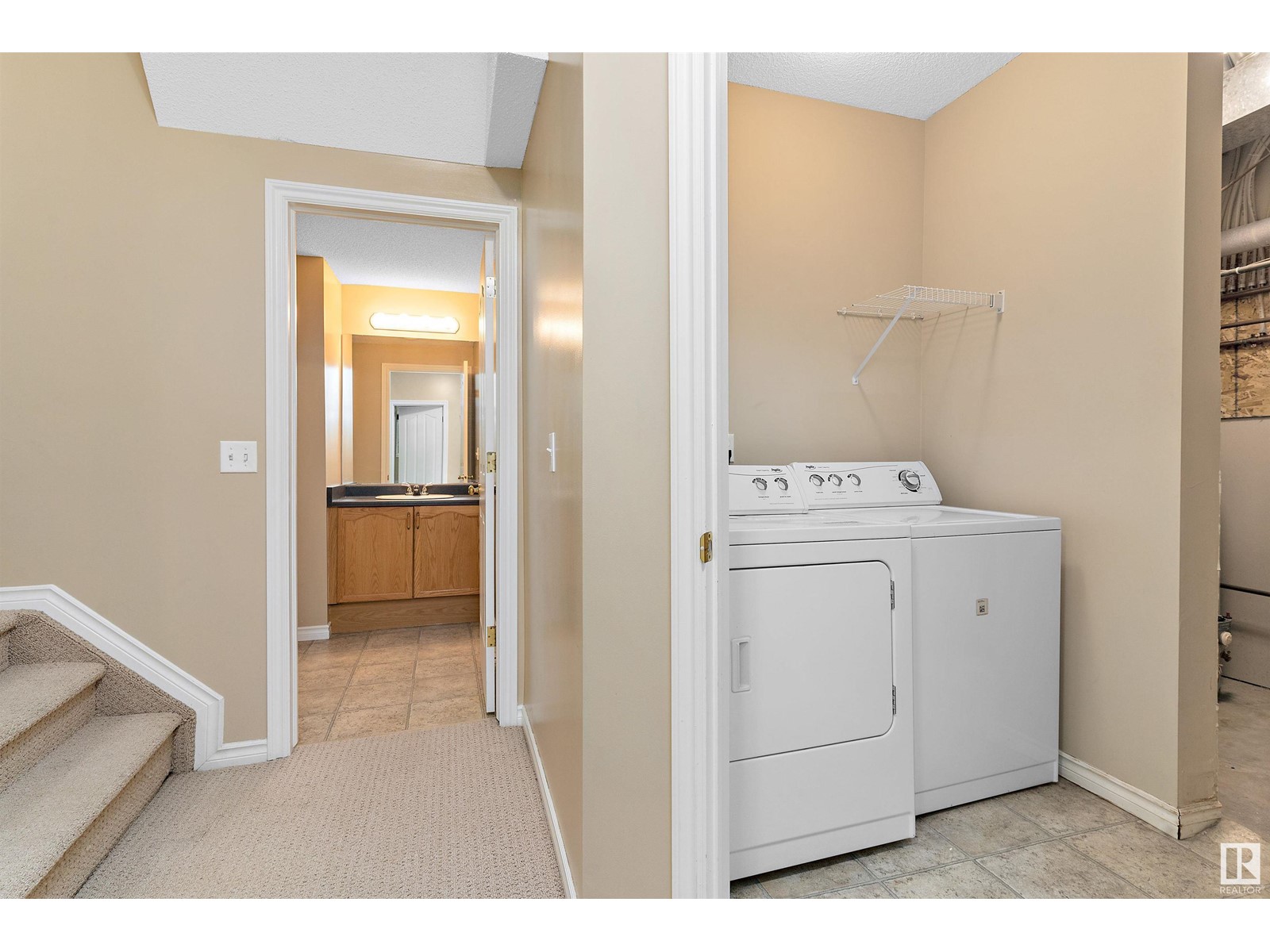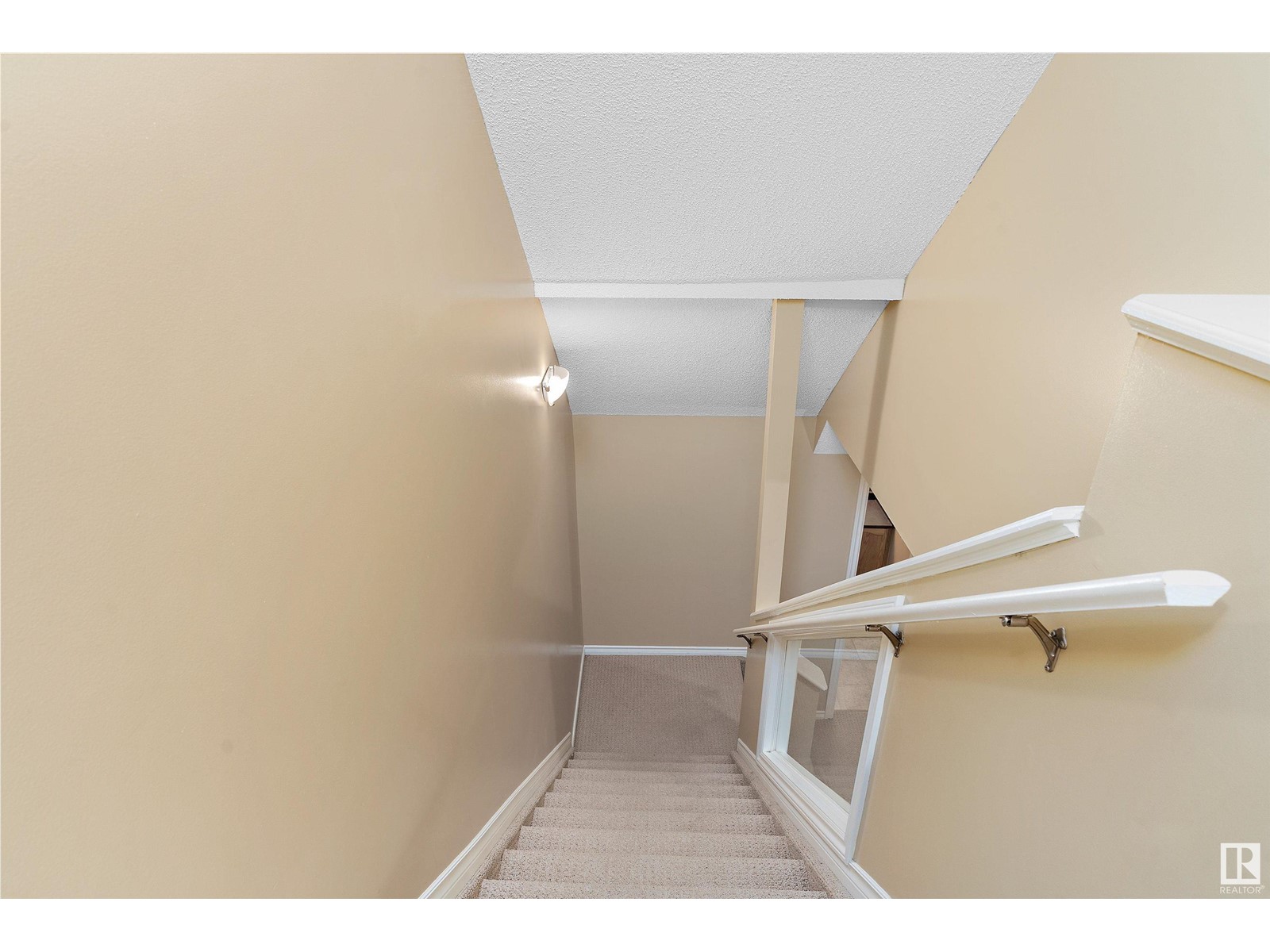 Uniquely designed town home close to the ravine and walking trails. With over 1275 sqft of finished living space this home is immaculately maintained and move in-ready. The main floor is an open concept featuring a spacious living room with a gas fireplace, an optional dining area, powder room and the kitchen, complete with an island. The lower level features 2 spacious bedrooms, each with their own walk in closet & large window. A 4pc ensuite of the primary bedroom and additional 4pc main bath. This unit includes an extra deep single attached garage and parking pad so 2 cars can be easily accommodated. Great walking & biking trails nearby! Close to all amenities with easy access to Public Transportation, Anthony Henday & Whitemud Freeways. Unique home to maintain an easy lifestyle. Love where you live! (id:22211)