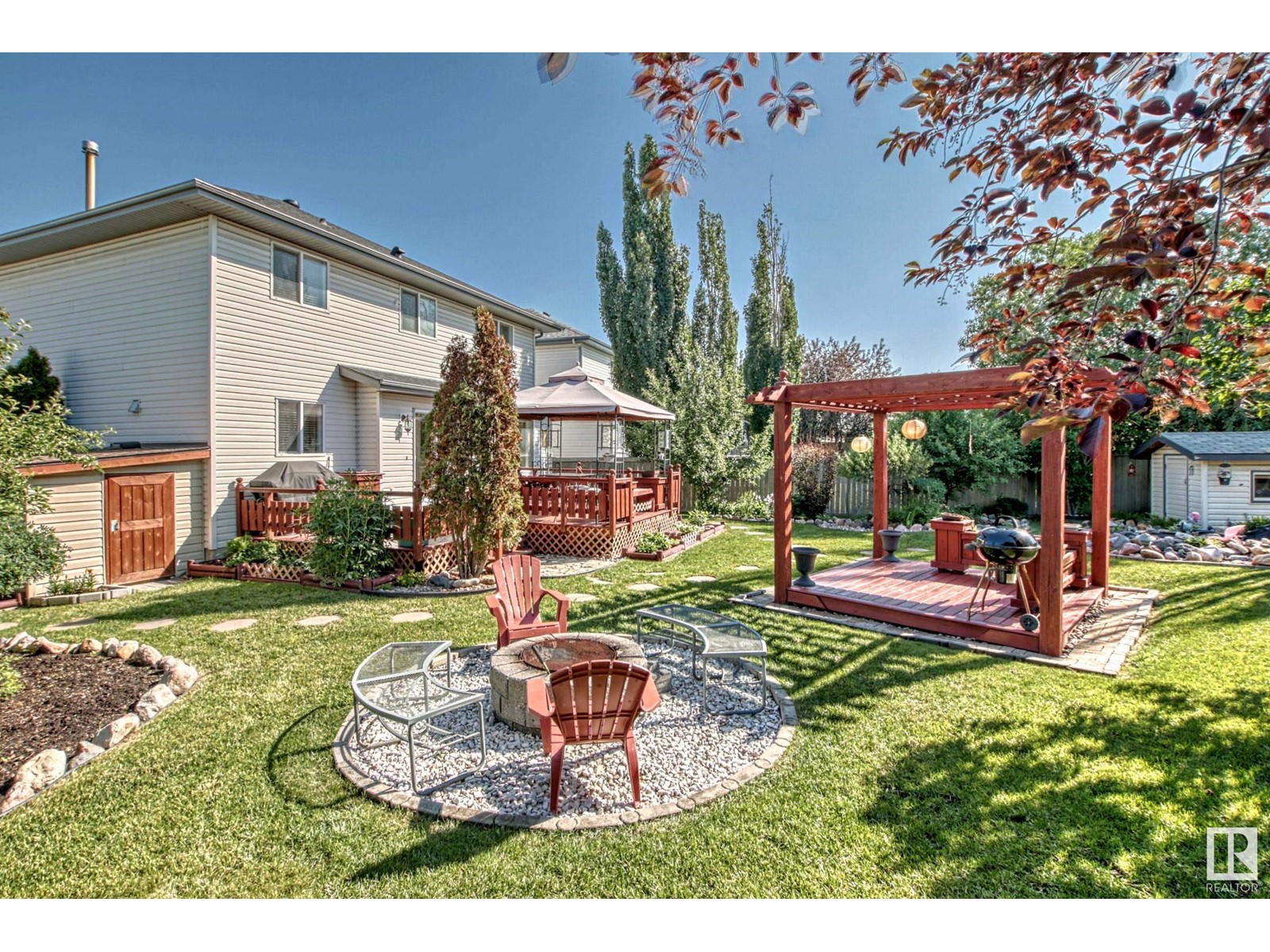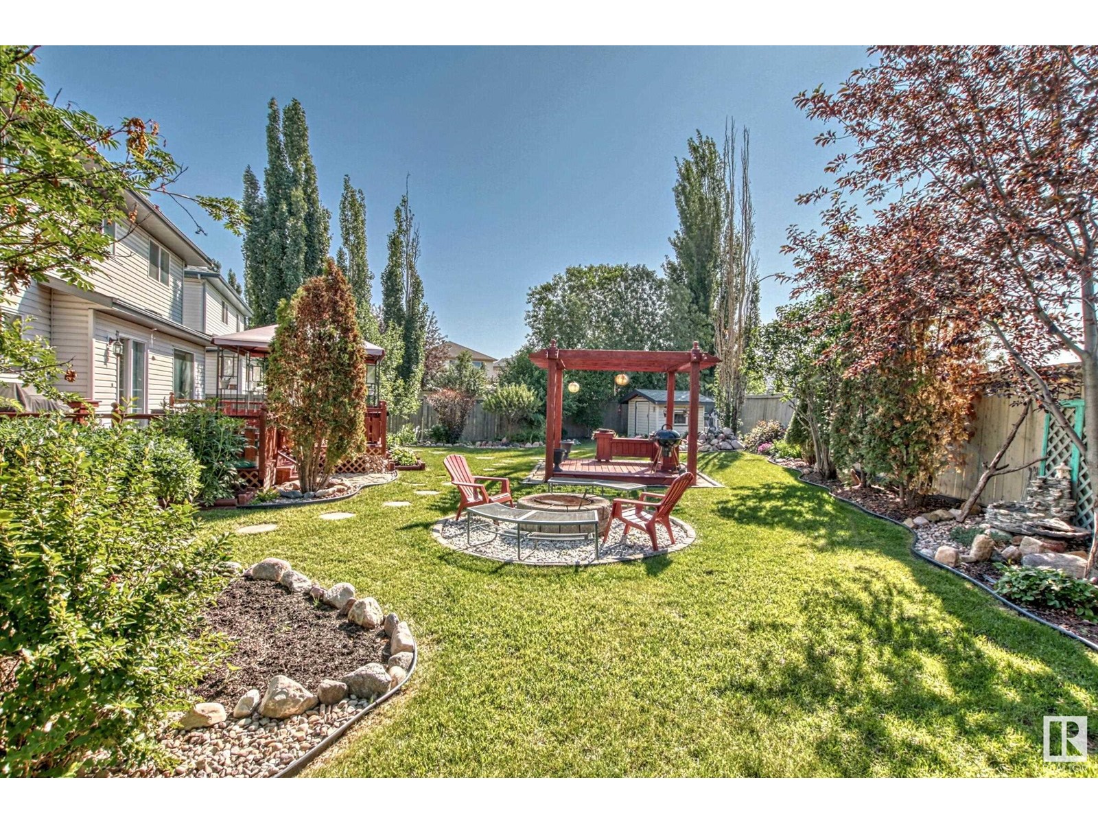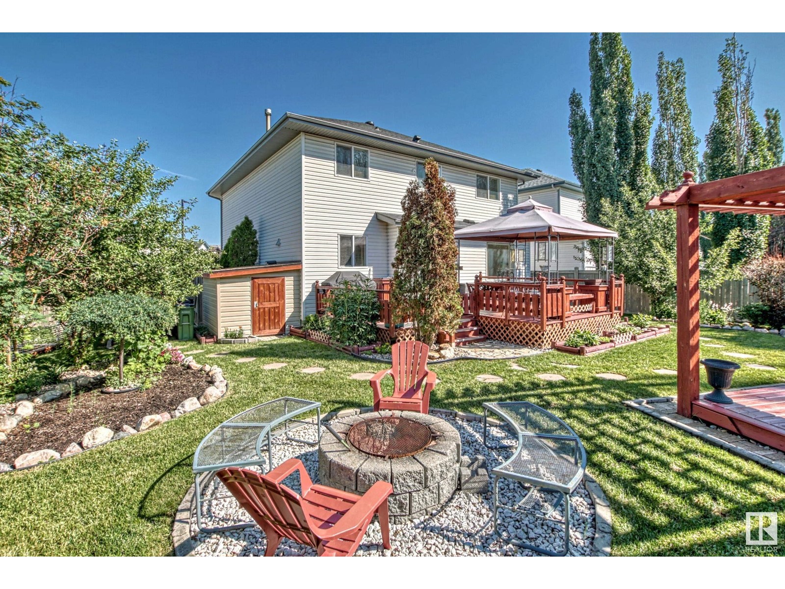 Welcome to this .21 acres of paradise right in Millcreek Meadows. This immaculate 2132 Sqft 2 storey home features 5 bedrooms, 3 1/2 baths, flex room, formal dining room, family room, kitchen with stainless steel appliances and oversized double attached garage with ample cabinets/storage leading to the mud room. Upon entering, youll be greeted by high ceiling and a gleaming staircase. The fully finished basement offers a dry bar and a huge great room - perfect for entertaining. Lastly, this gem offers a 5-car space for parking on site, 3 outdoor sheds and a huge south-facing backyard showcasing a pergola, fire pit, a fountain, mature trees and meticulous wow factor landscape design. (id:22211)